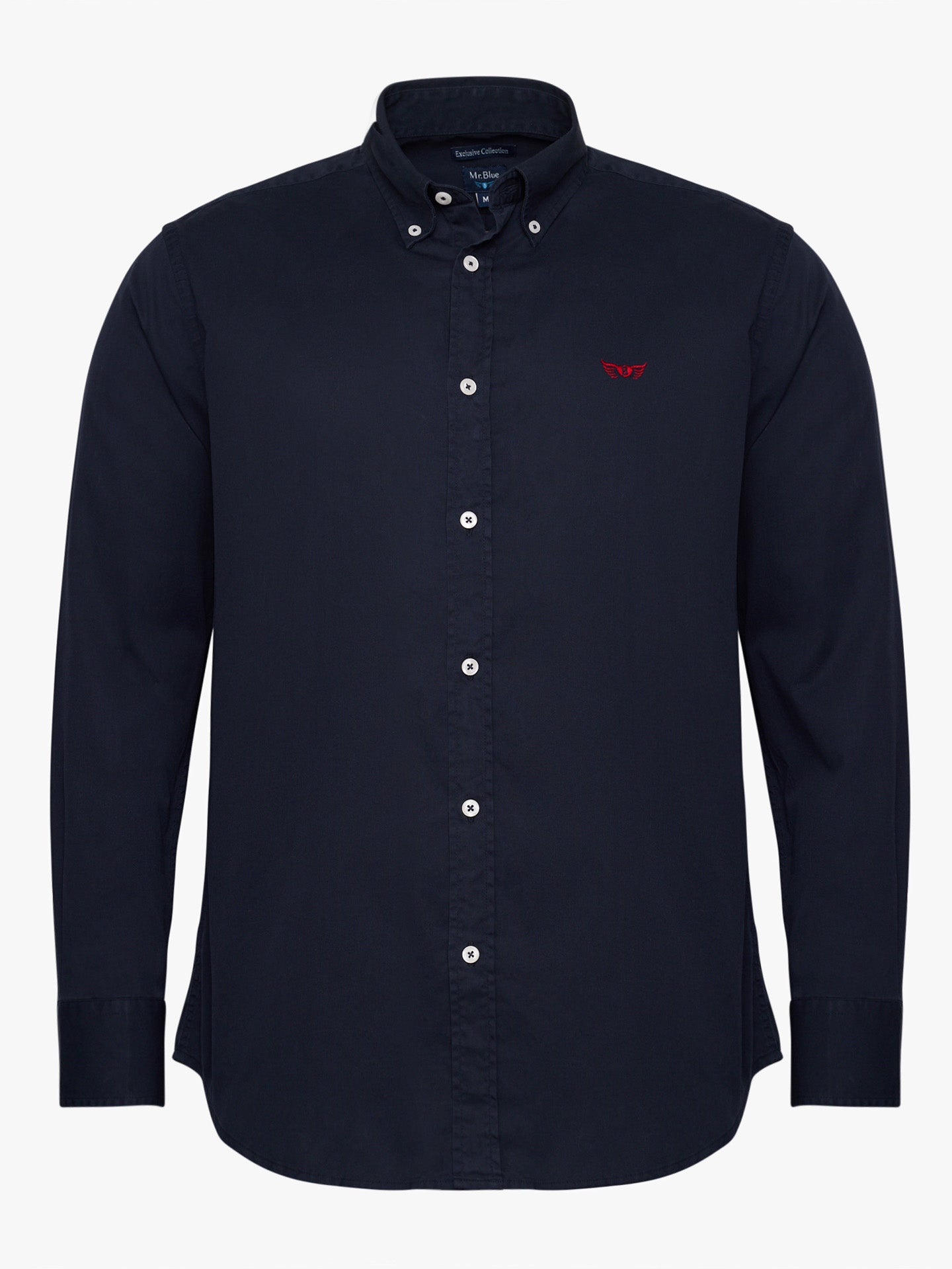Camisa Regular Fit Twill Azul Algodão Liso Com logo