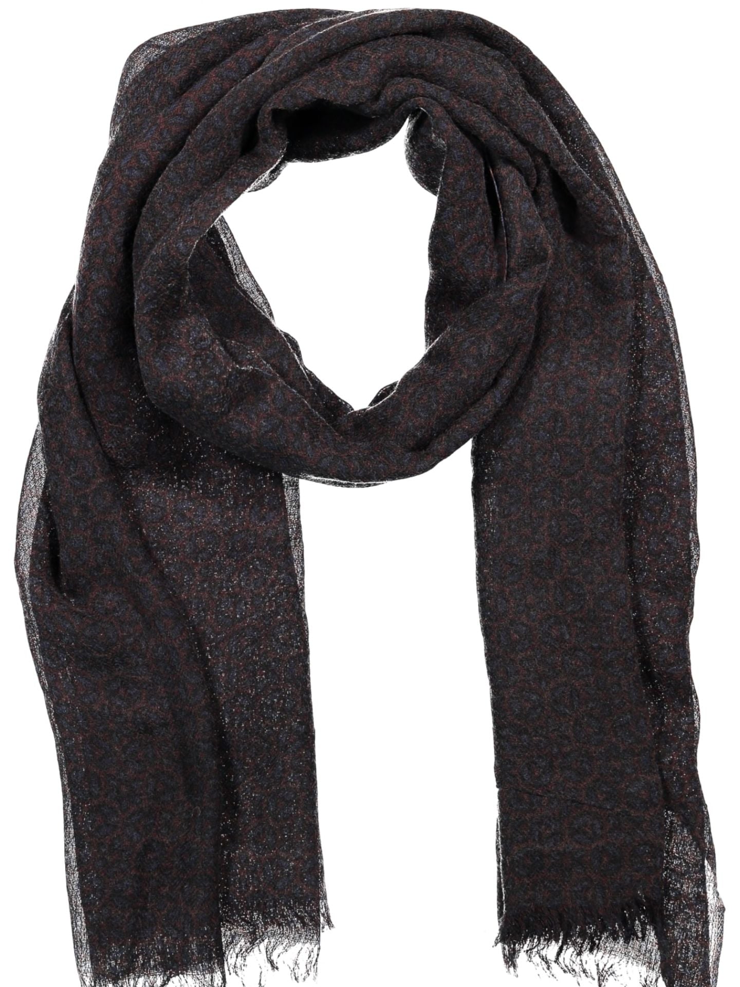 Echarpe castanha estampada. Confortável e aconchegante, ideal para os dias mais frios de inverno.