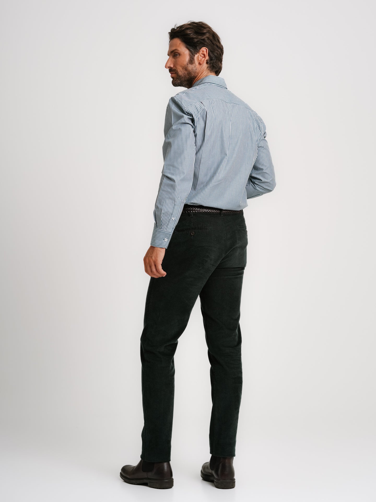 Calças em bombazina riscas finas verde escuro