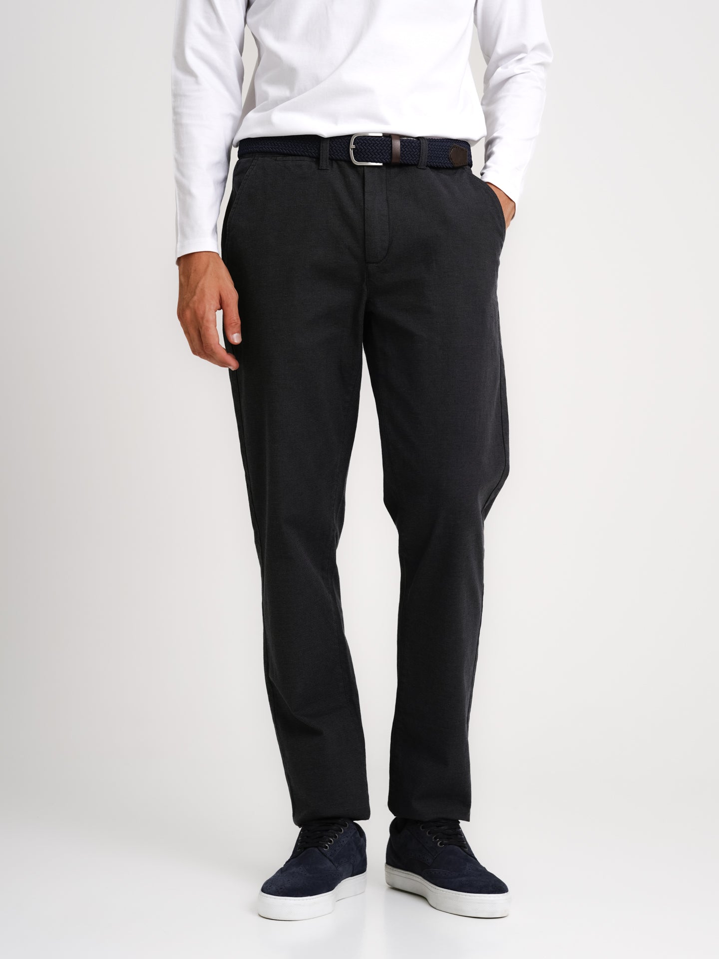 Calças Chino Canvas lisas Tailored Fit com detalhe