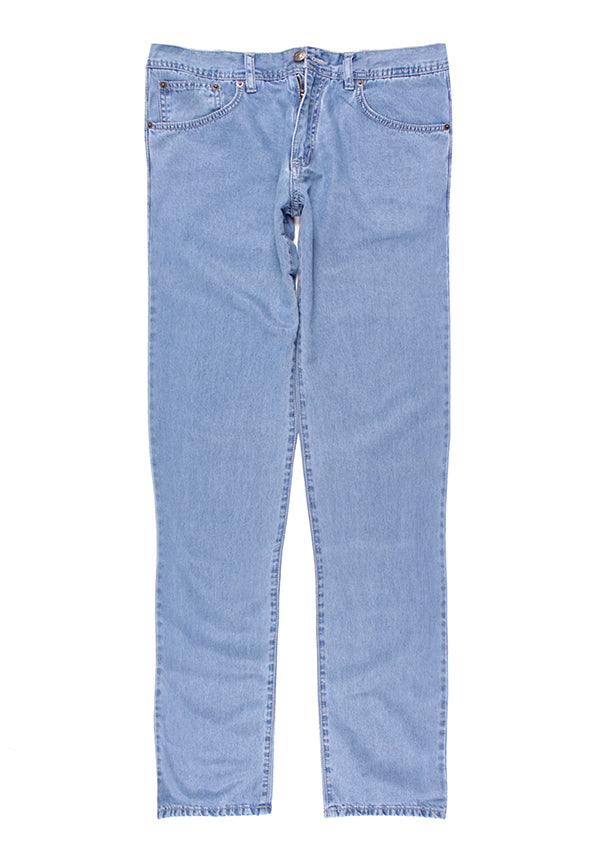 Calças de ganga stone wash azul escuro cintura subida