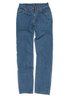 Calças de ganga com cintura subida, fecho de correr oculto por carcela e botão a contrastar, design de cinco bolsos e presilhas para o cinto. Fabricada com fibras naturais de alta qualidade, é a escolha de eleição para o fim-de-semana ou para um look mais