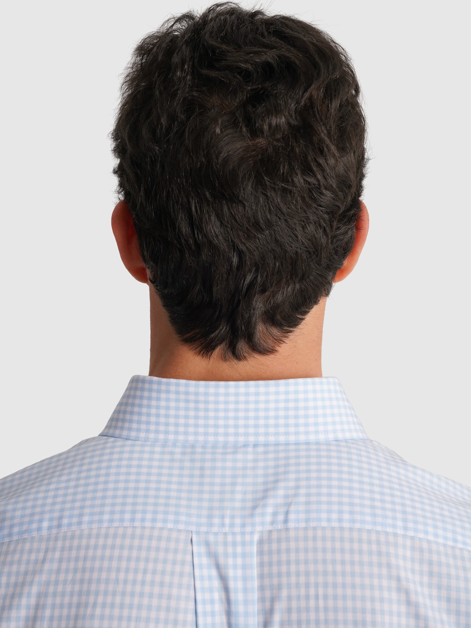 Camisa Algodão Azul Manga Comprida Regular Fit Com Logo Quadrada