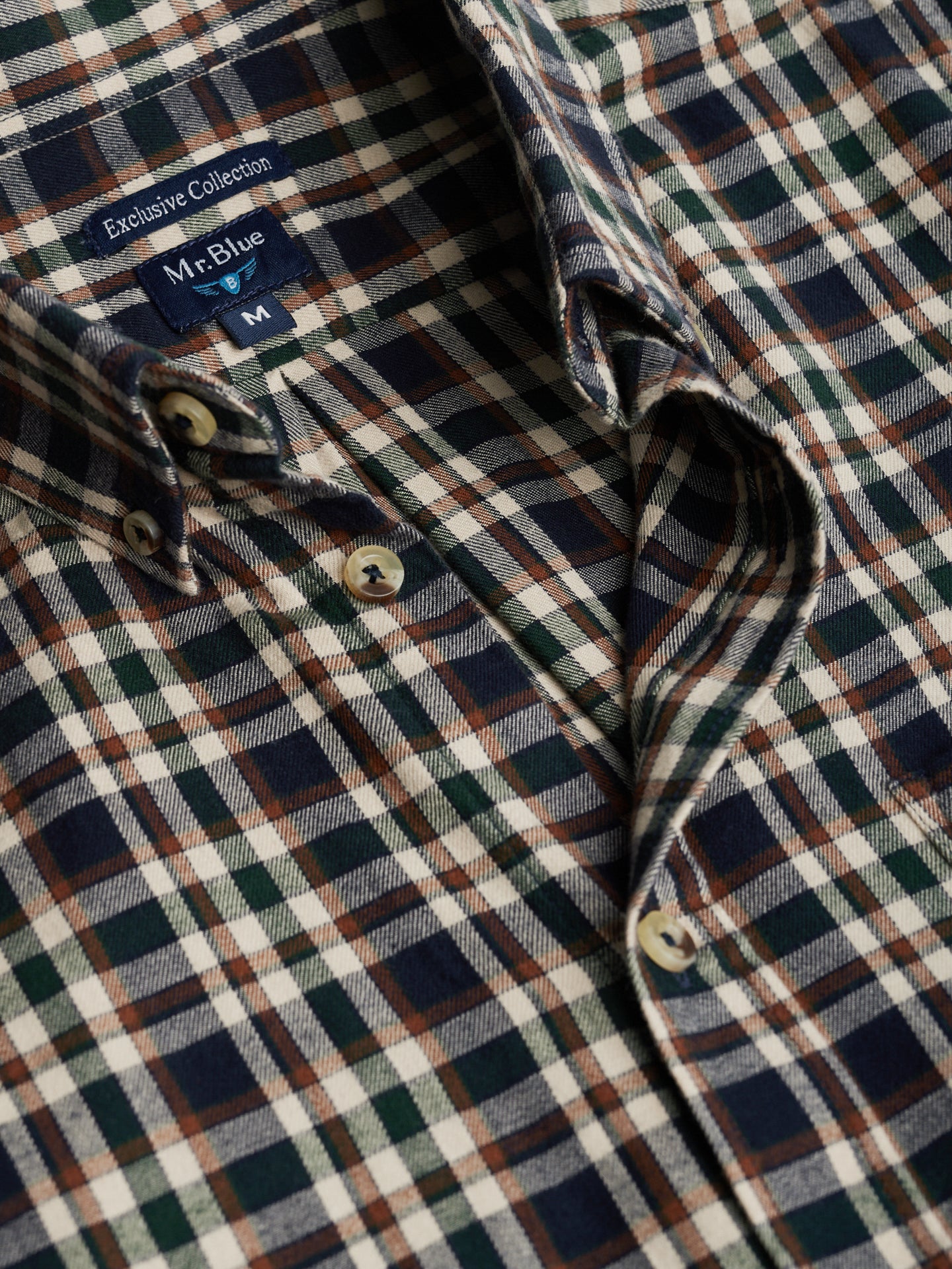 Camisa Regular Fit Flanela Azul Algodão Quadrados