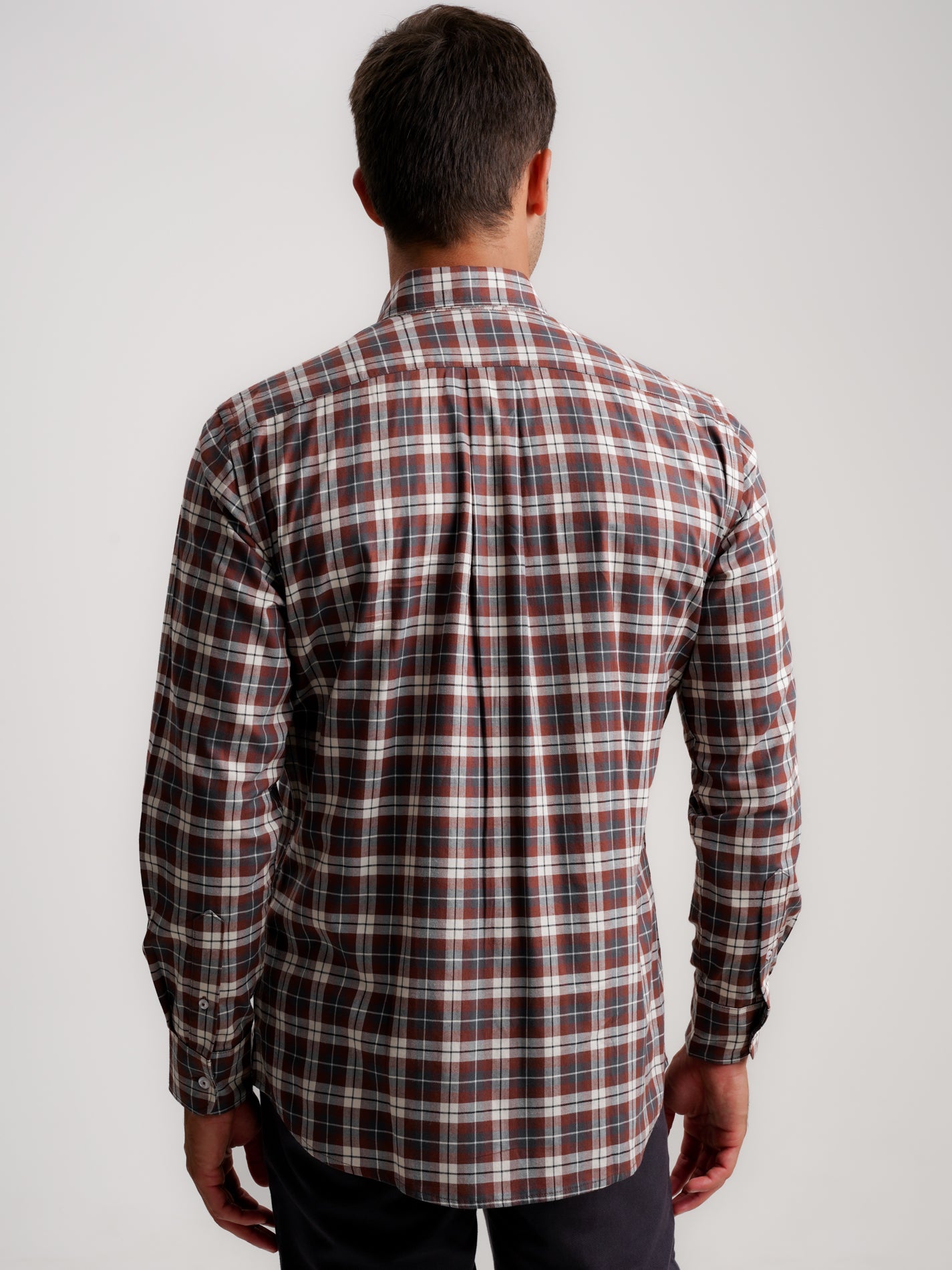 Camisa Regular Fit Flanela Castanha Manga Comprida Com Bolso Com Quadrados
