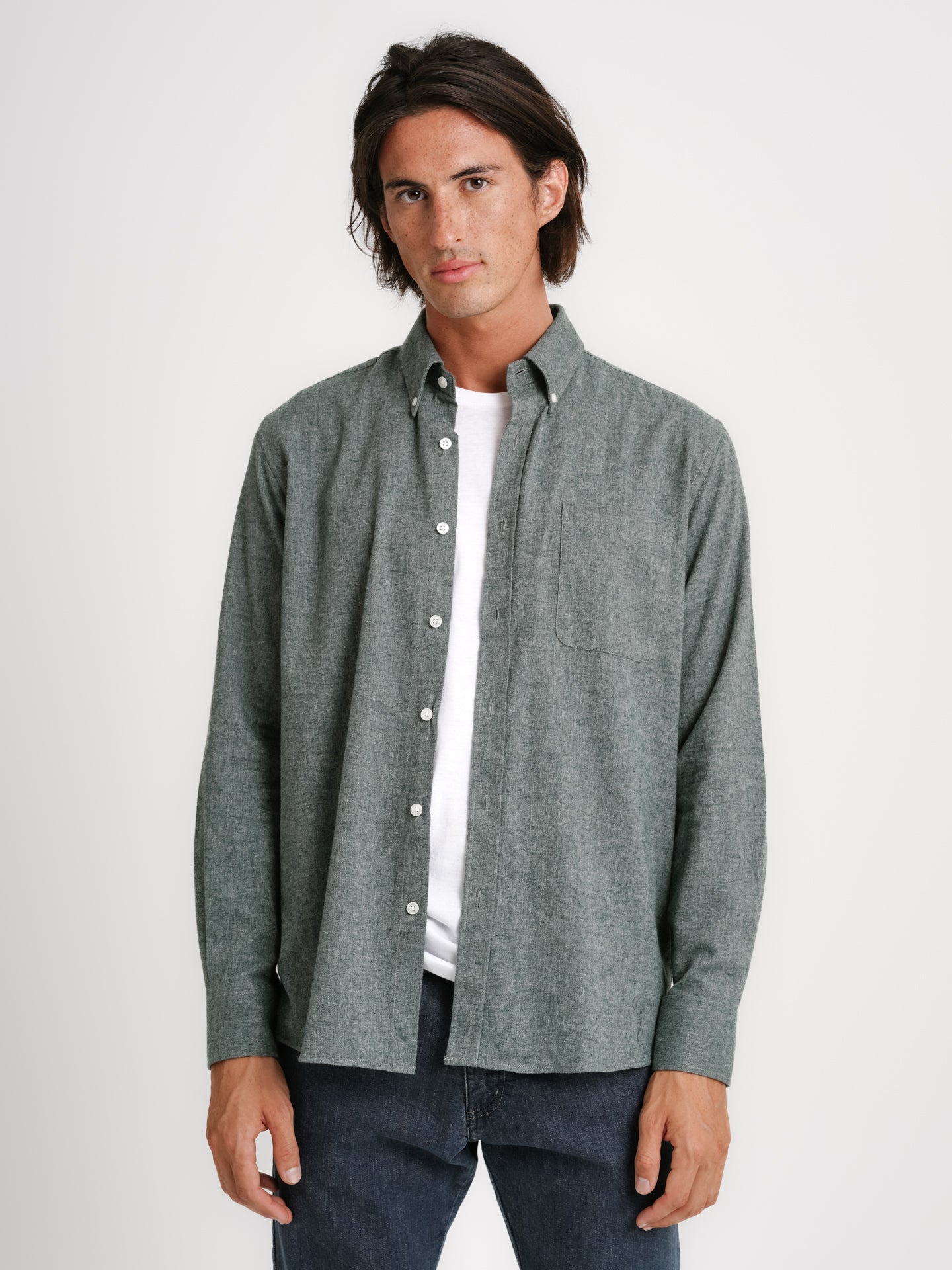 Camisa Regular Fit Twill Verde Algodão Liso Com bolso