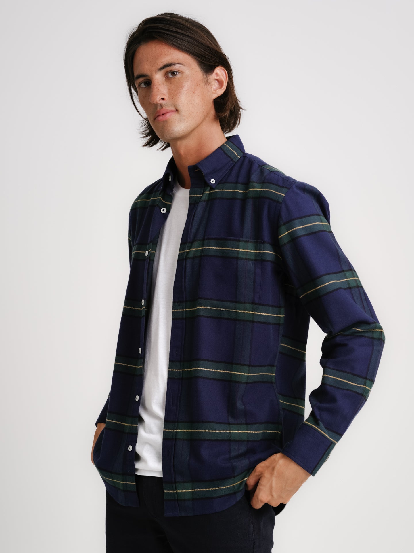 Camisa Regular Fit Flanela Verde Algodão Quadrados