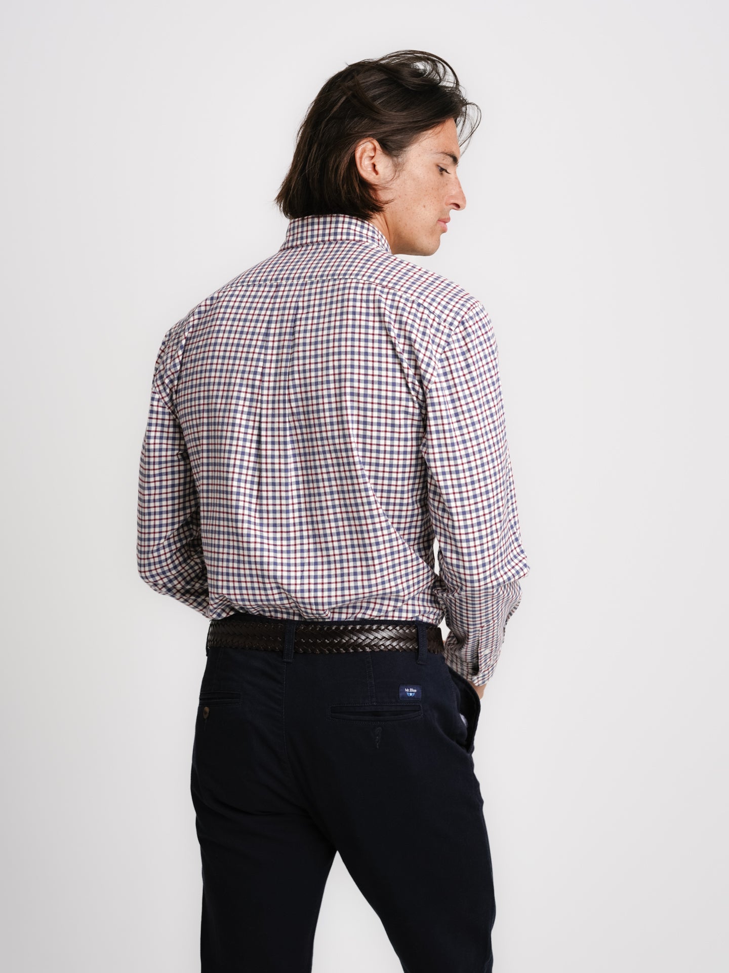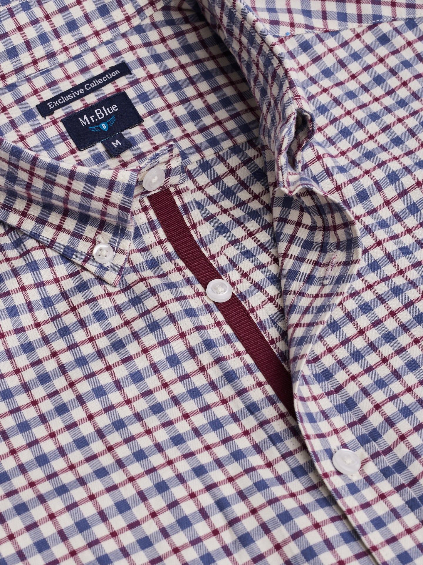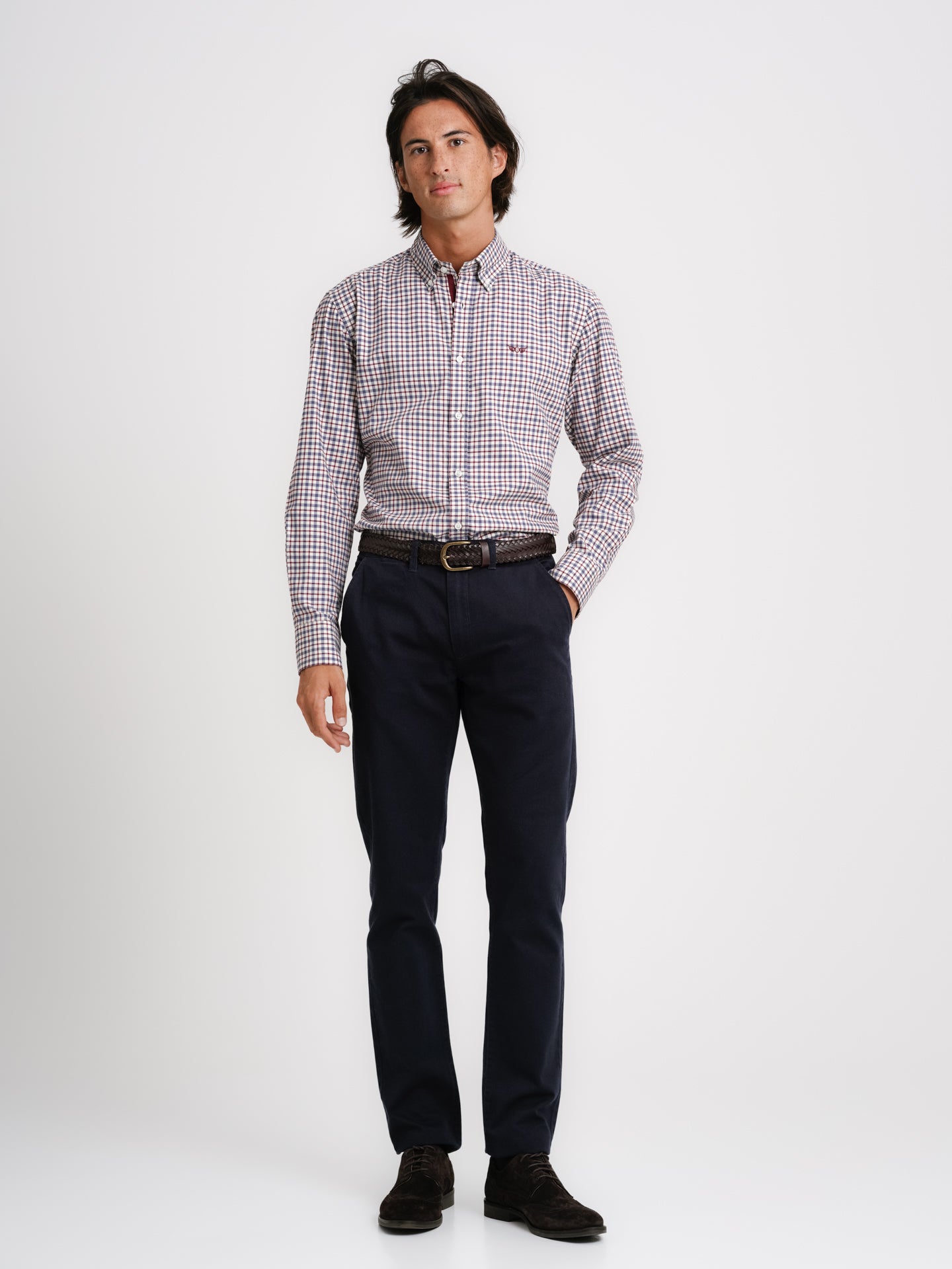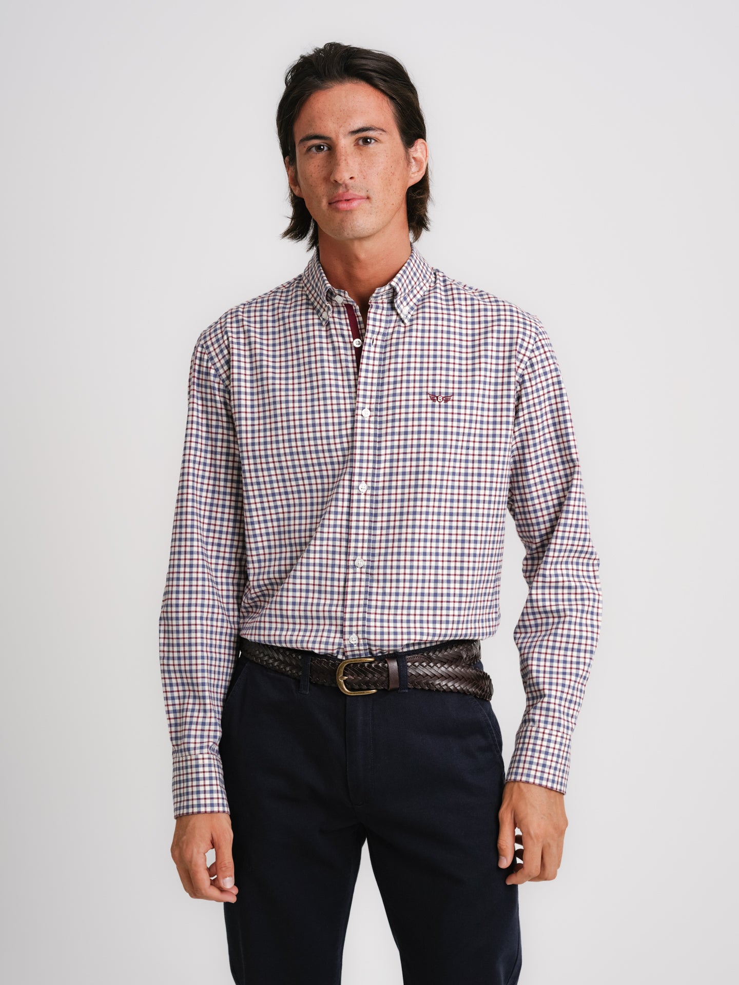 Camisa Regular Fit Vaiela Azul Algodão Quadrados Com logo