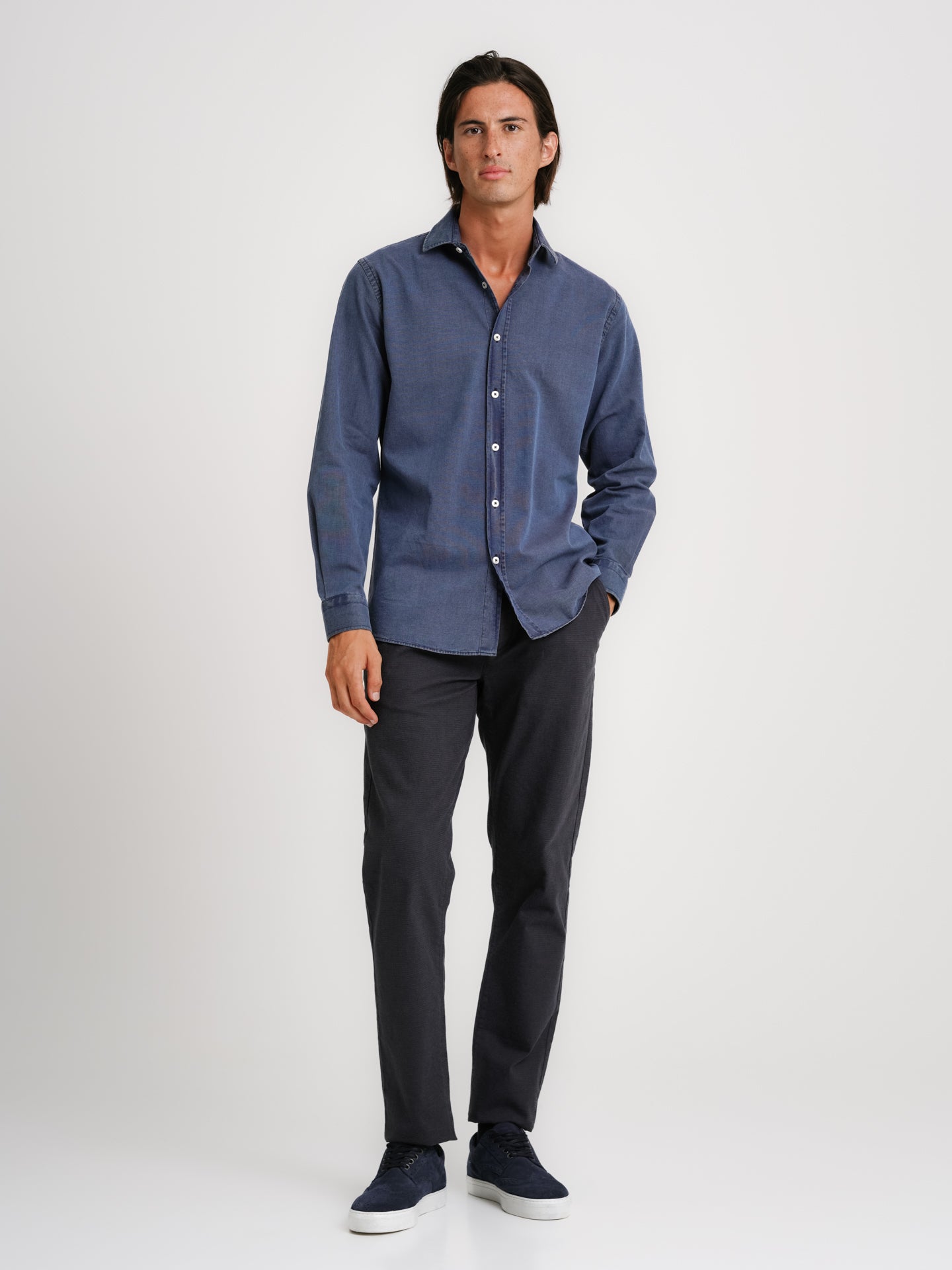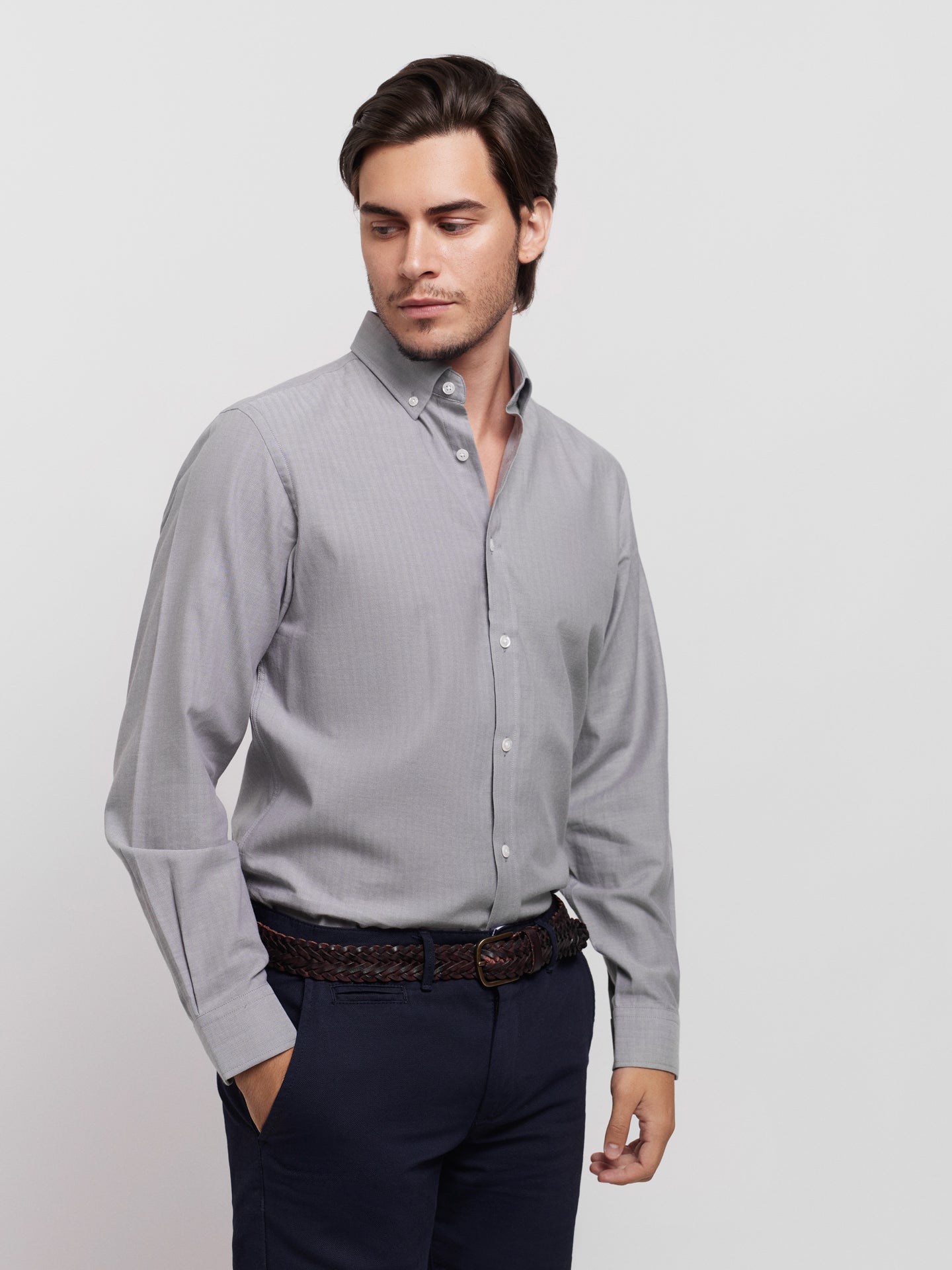 Camisa Tailored Fit Cinzenta Manga Comprida