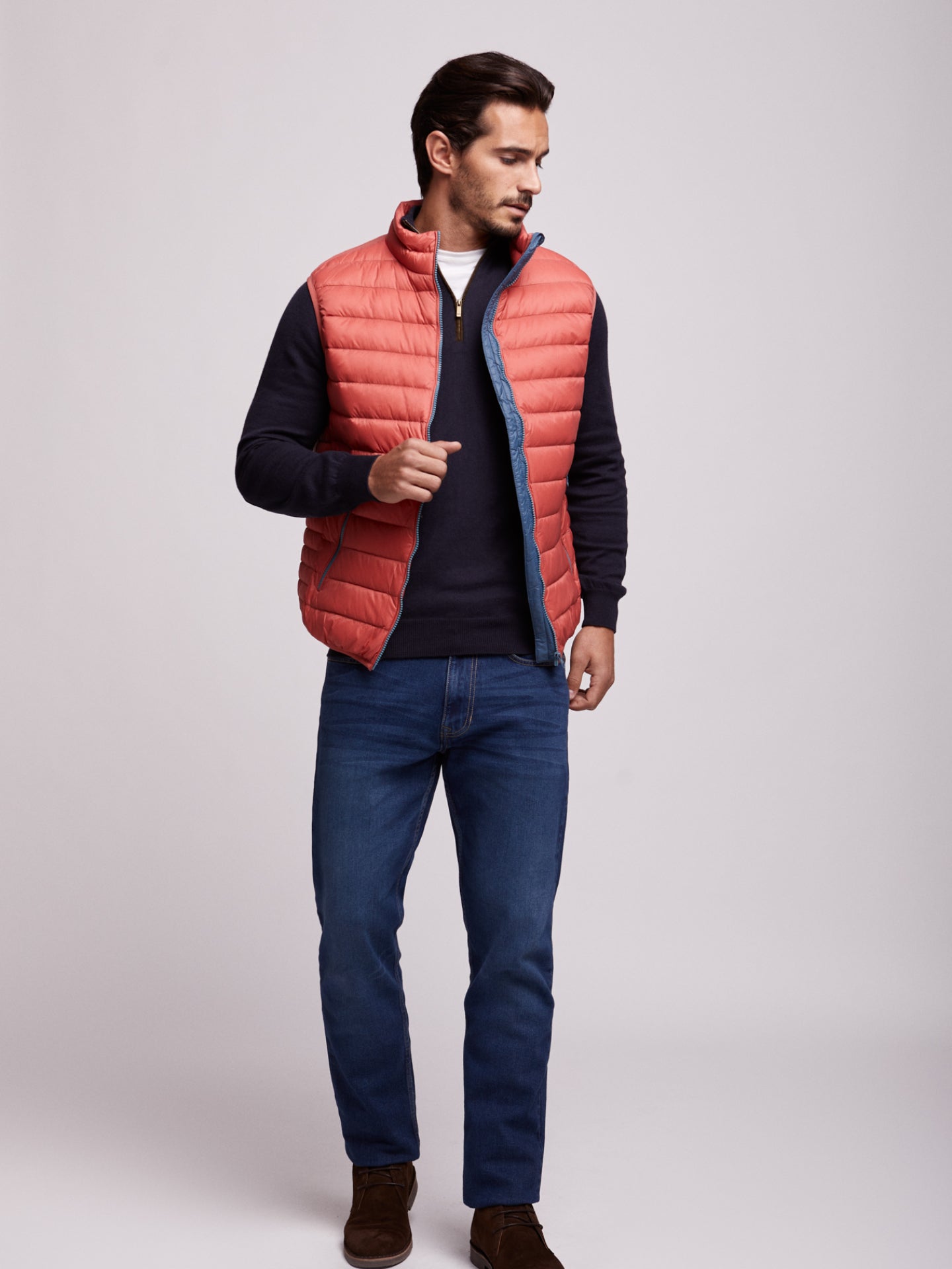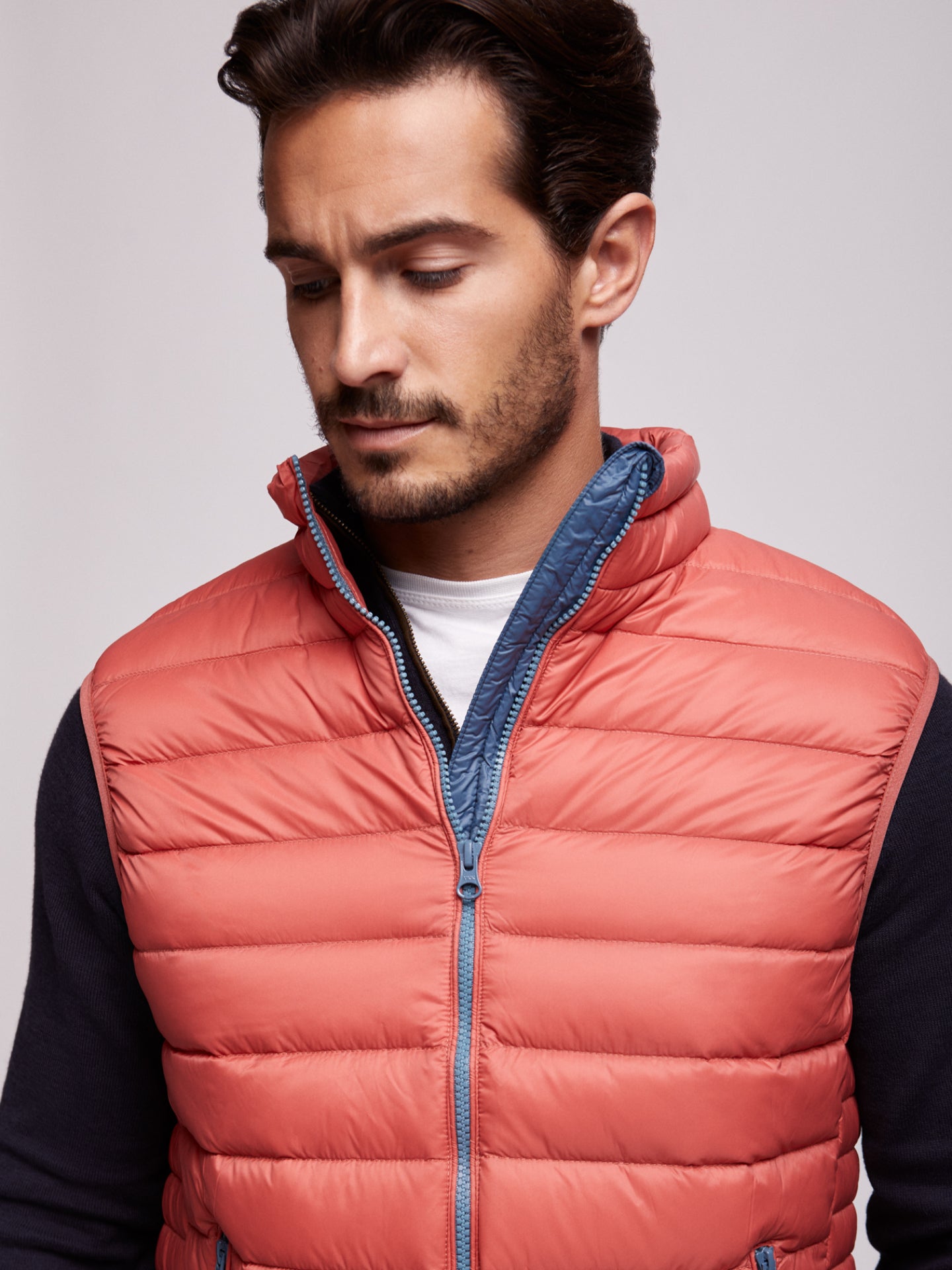 Colete de penas salmão