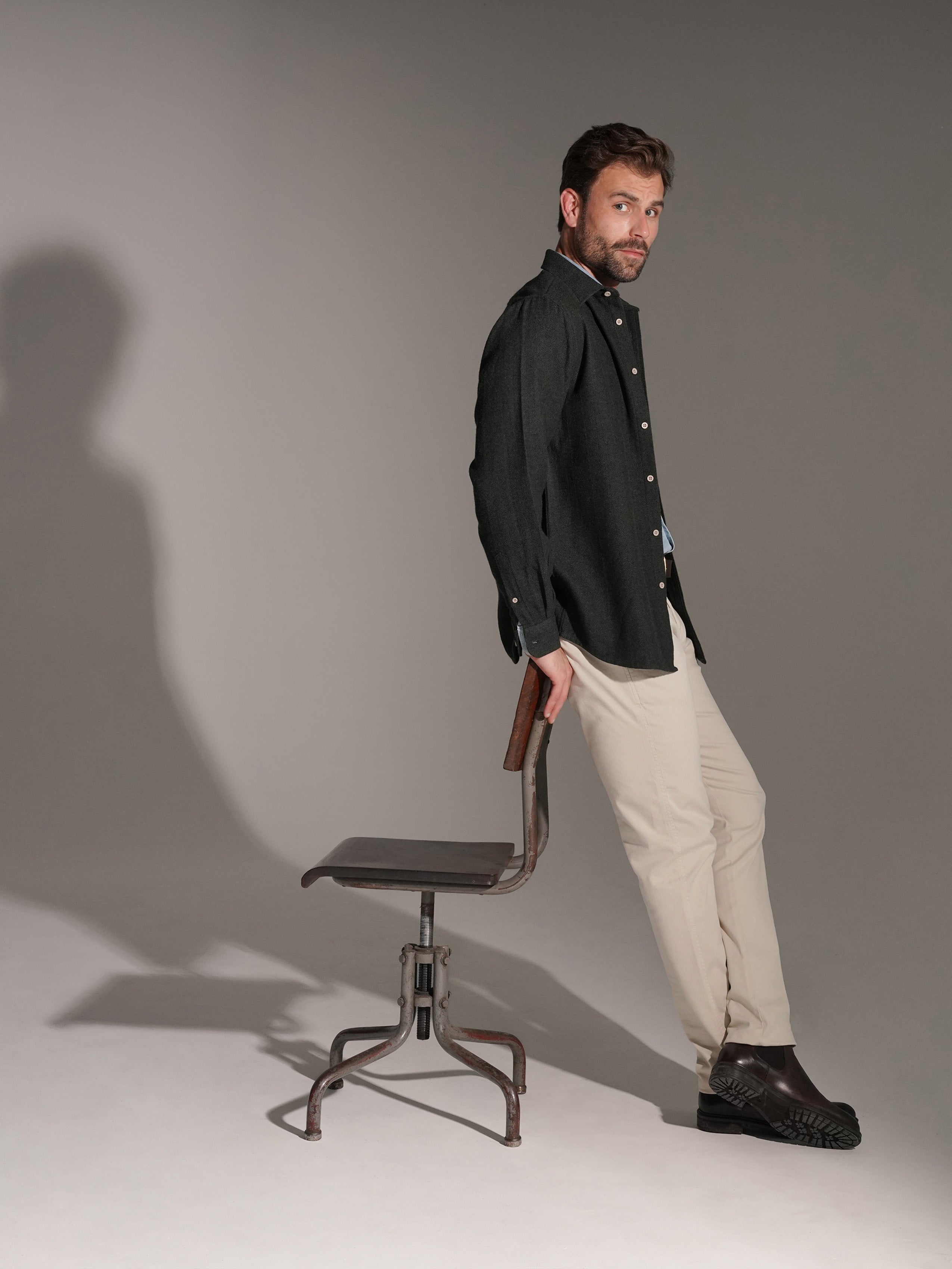 Camisa Algodão Cinzenta Manga Comprida Regular Fit