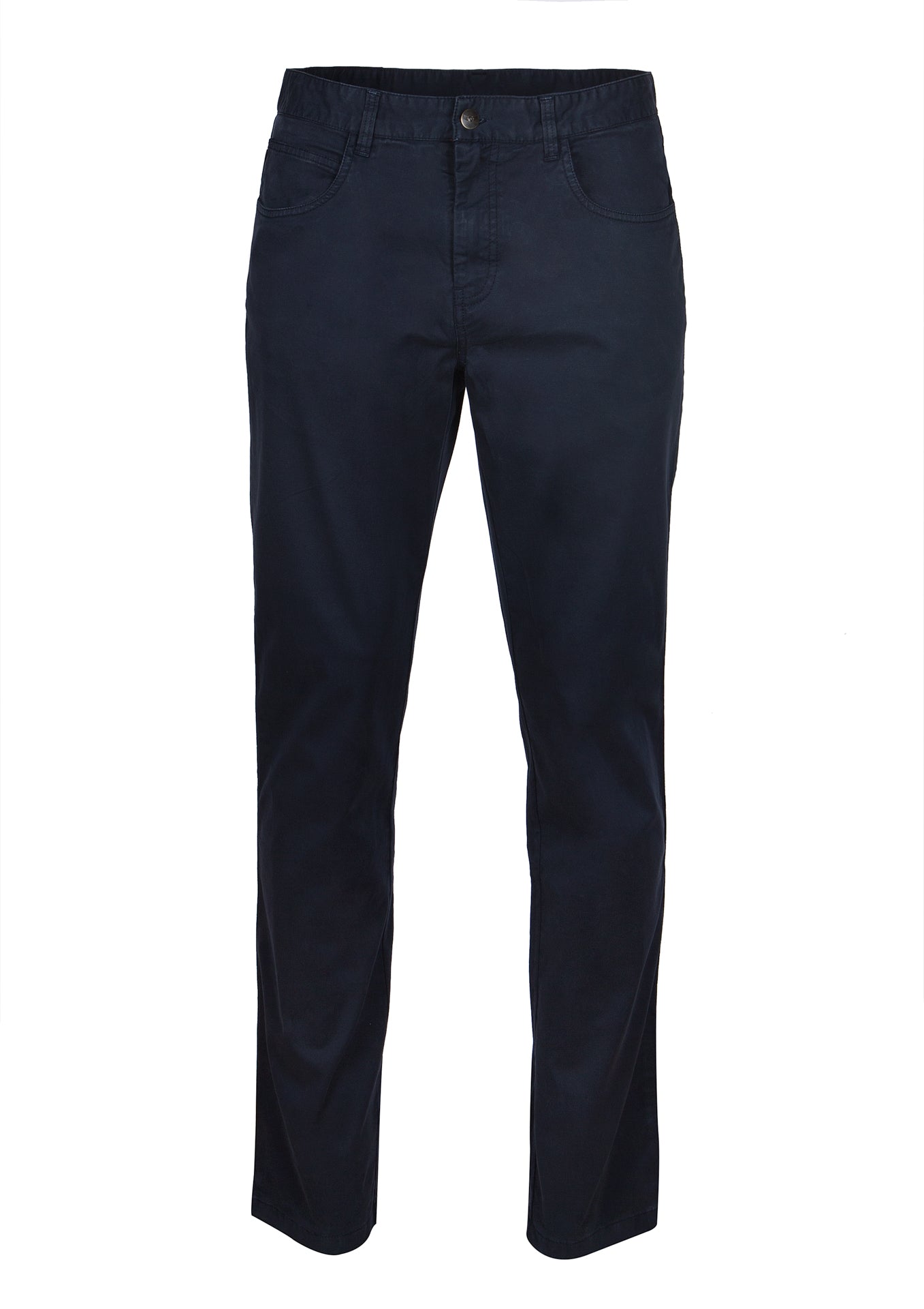 Calças chino azul escuro lisa. 5 bolsos.