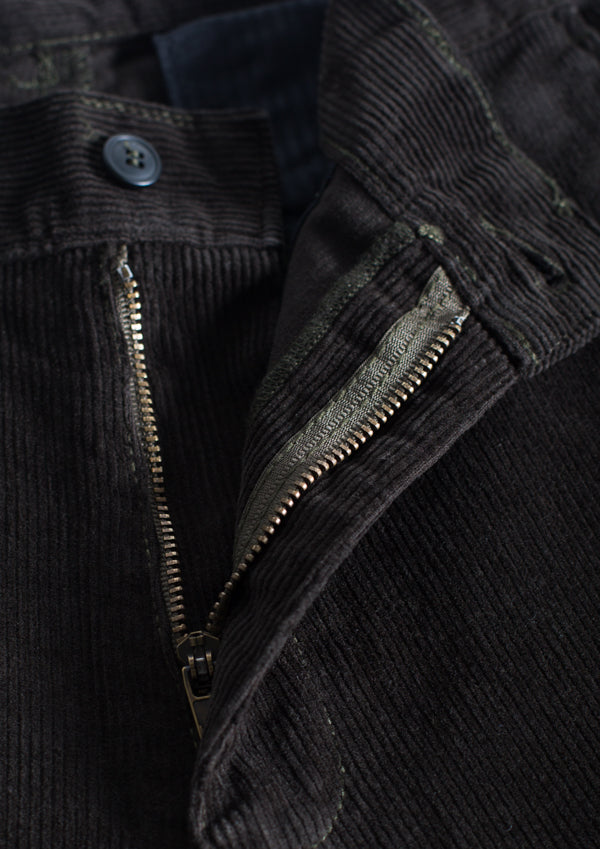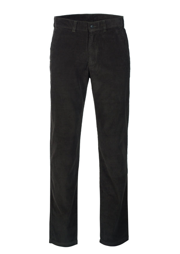 Calças 100% algodão bombazina riscas finas verde escuro. Corte regular. carcela com fecho de correr oculto, 2 bolsos laterais, 2 bolsos de ilhós abotoado na parte posterior e presilhas para o cinto. Quente e muito confortável, são a escolha certa para os