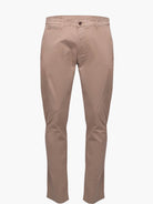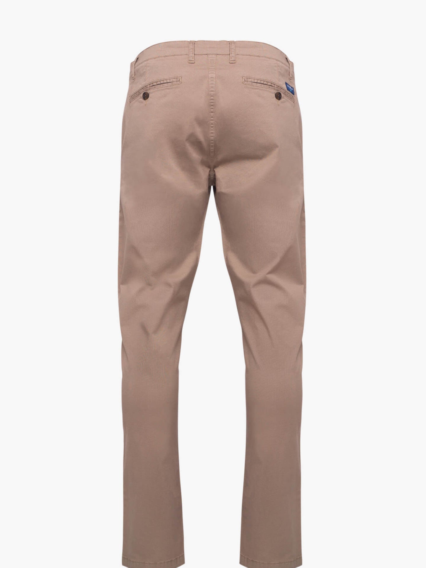Calças chino texturadas para homem camel, confecionadas em algodão. Corte slim, fecho de botão e fecho de correr oculto por carcela, dois bolsos laterais e um bolso pequeno. Dois bolsos com casa de botão abotoados atrás e presilhas para cinto. Muito confo