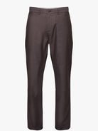 Calças Chinos Homem 100% Algodão Oxford castanho médio com interior do cós mil raias e riscas castanho claro. Detalhe bolso traseiro em twill azul escuro. Corte Tailored Fit. Muito confortáveis, são a escolha certa para os dias mais