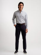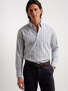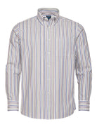 Camisa Regular Fit Oxford Azul Algodão Riscas Com bolso