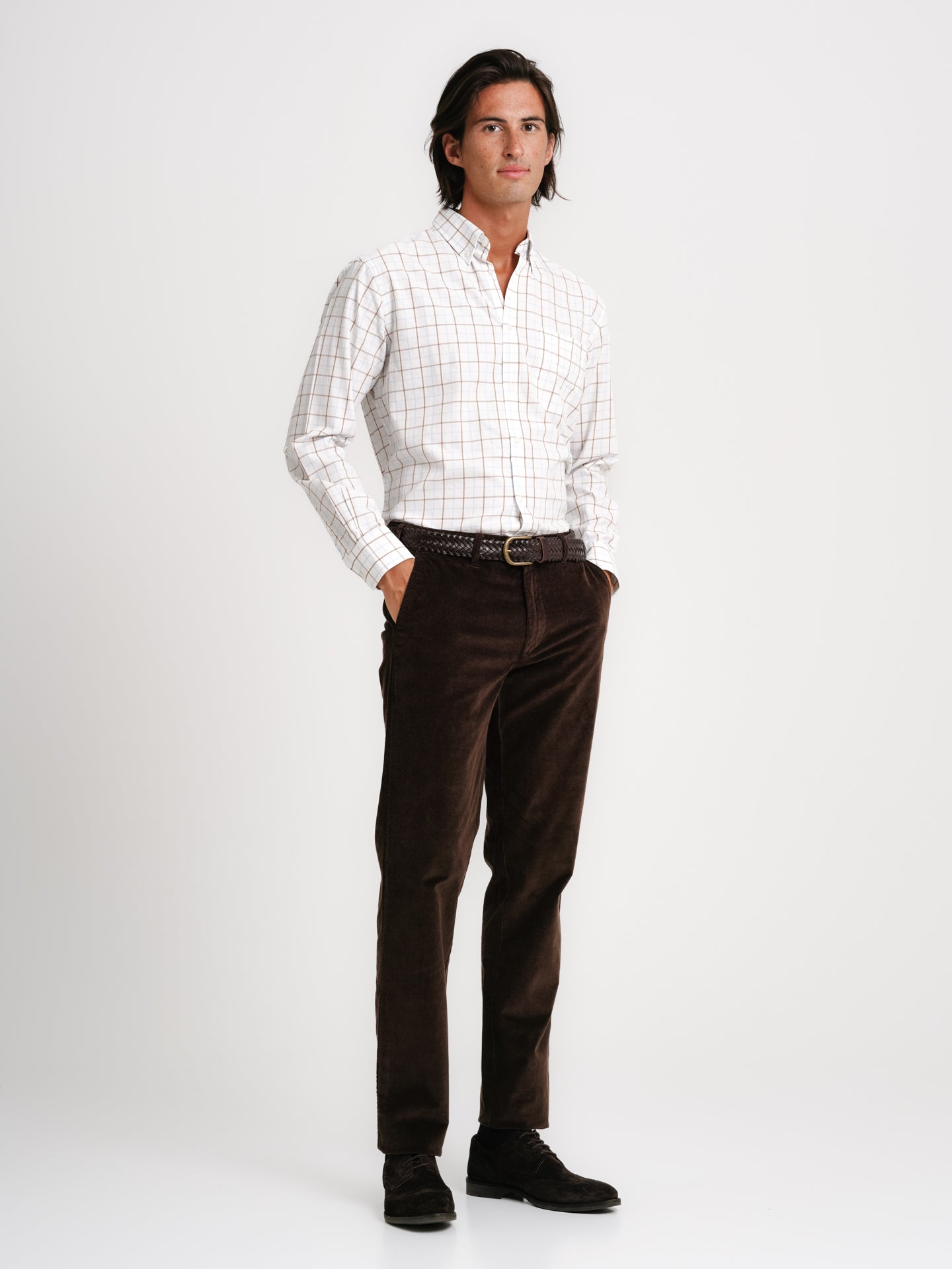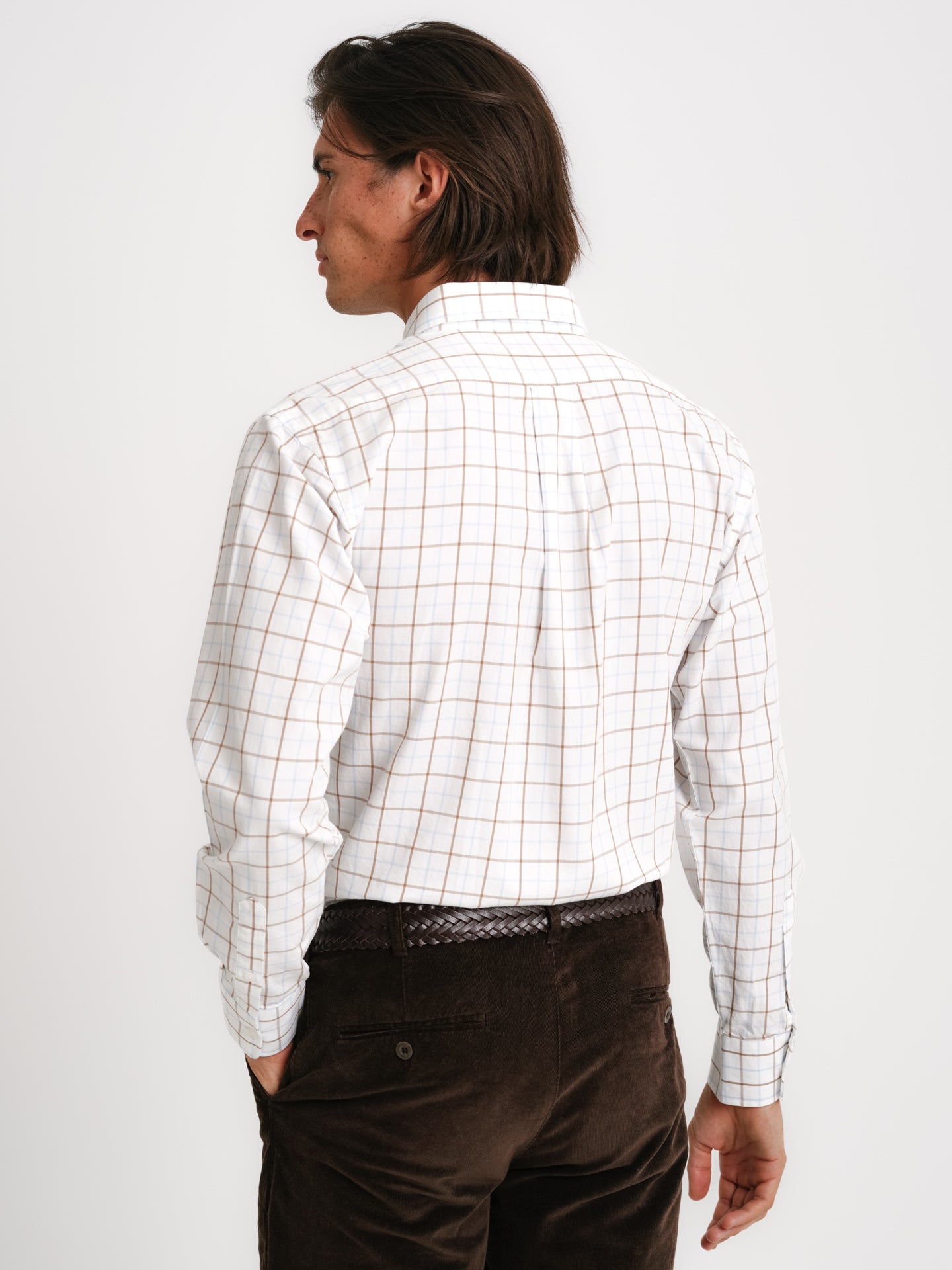 Camisa Regular Fit Vaiela Branca Algodão Quadrados Com bolso