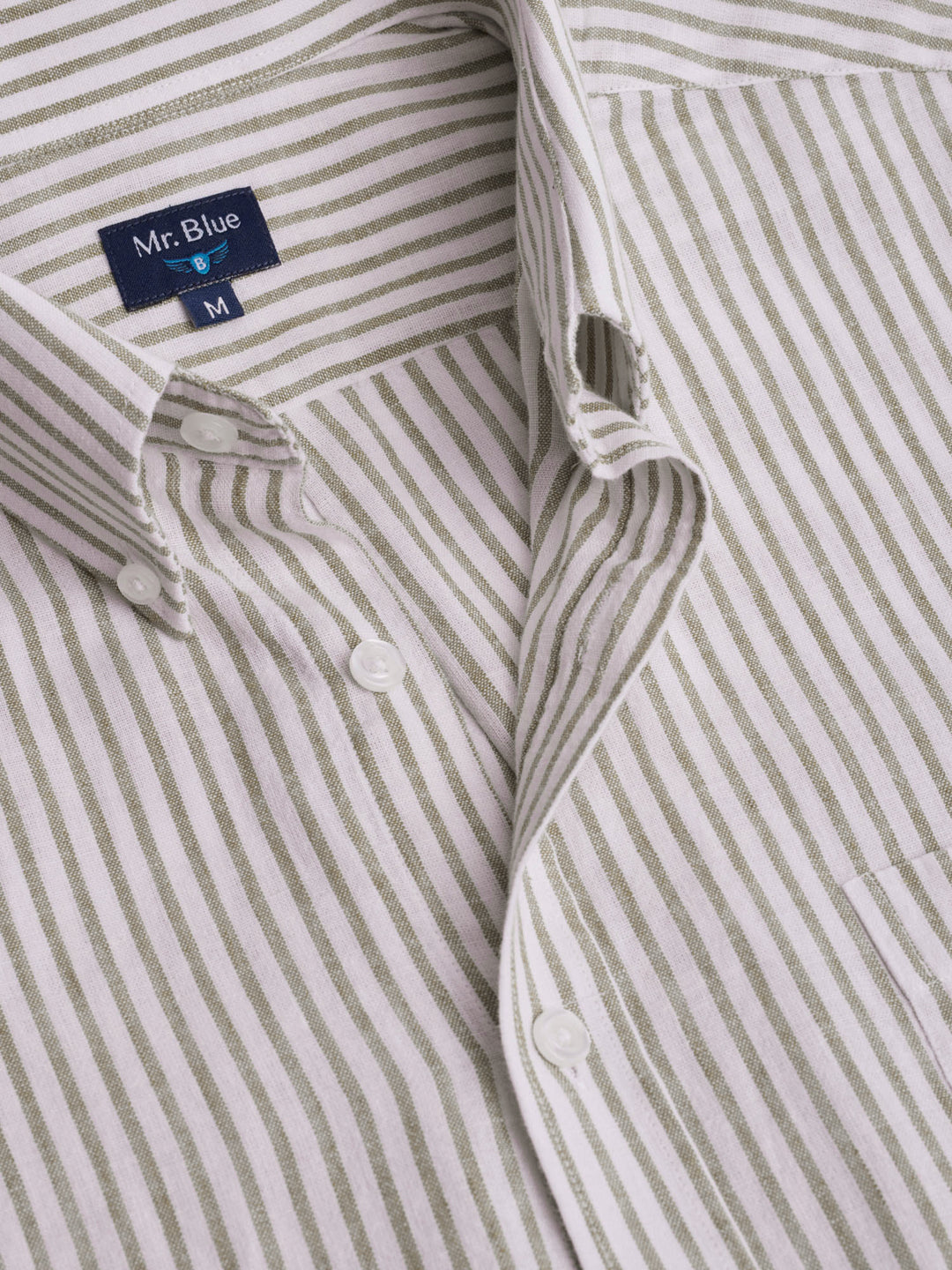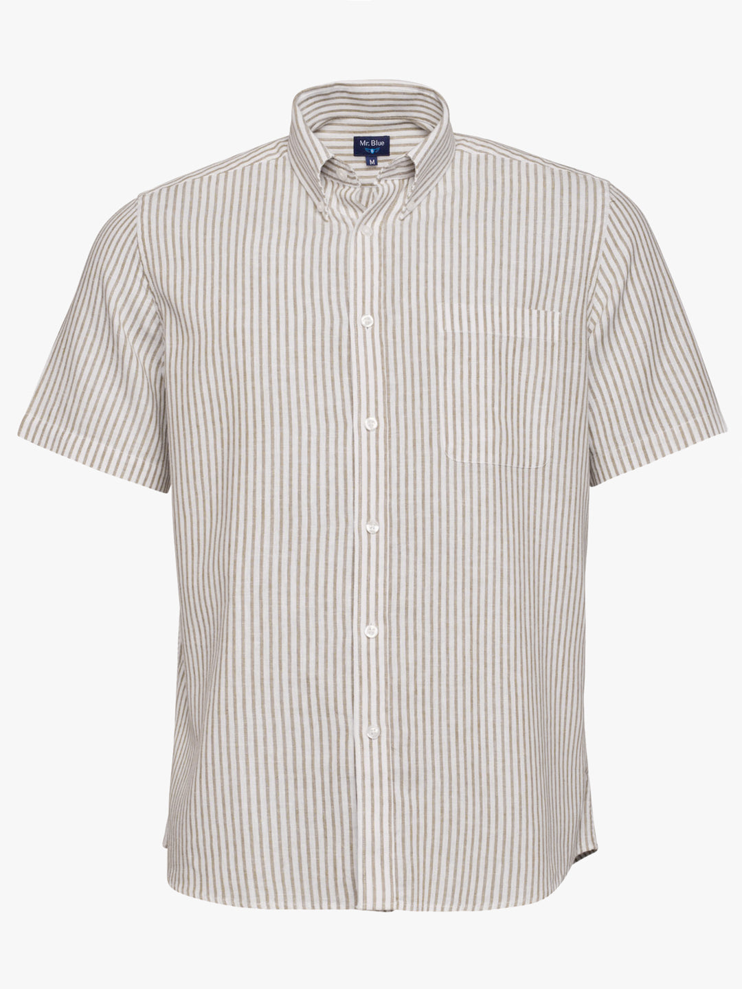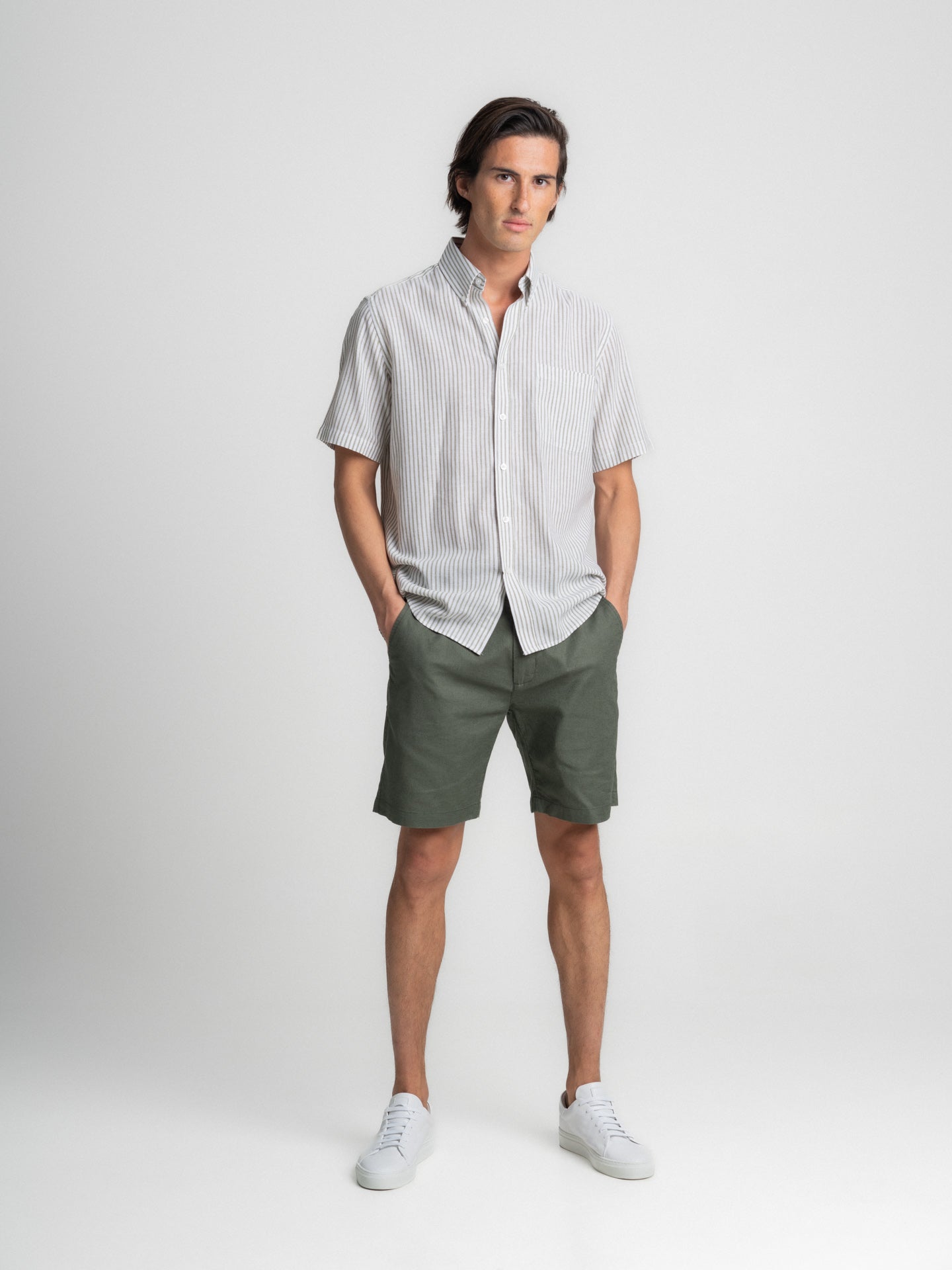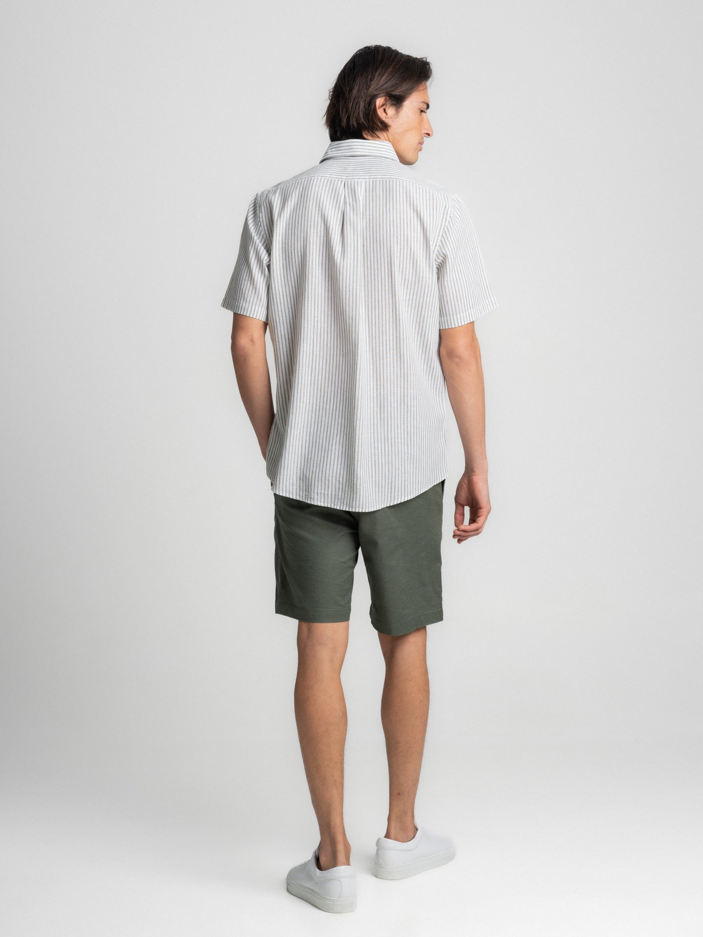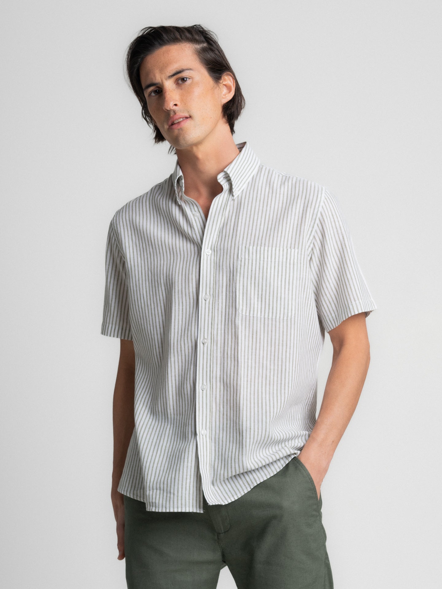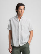 Camisa Regular Fit Linho Verde Manga Curta Com bolso às Riscas