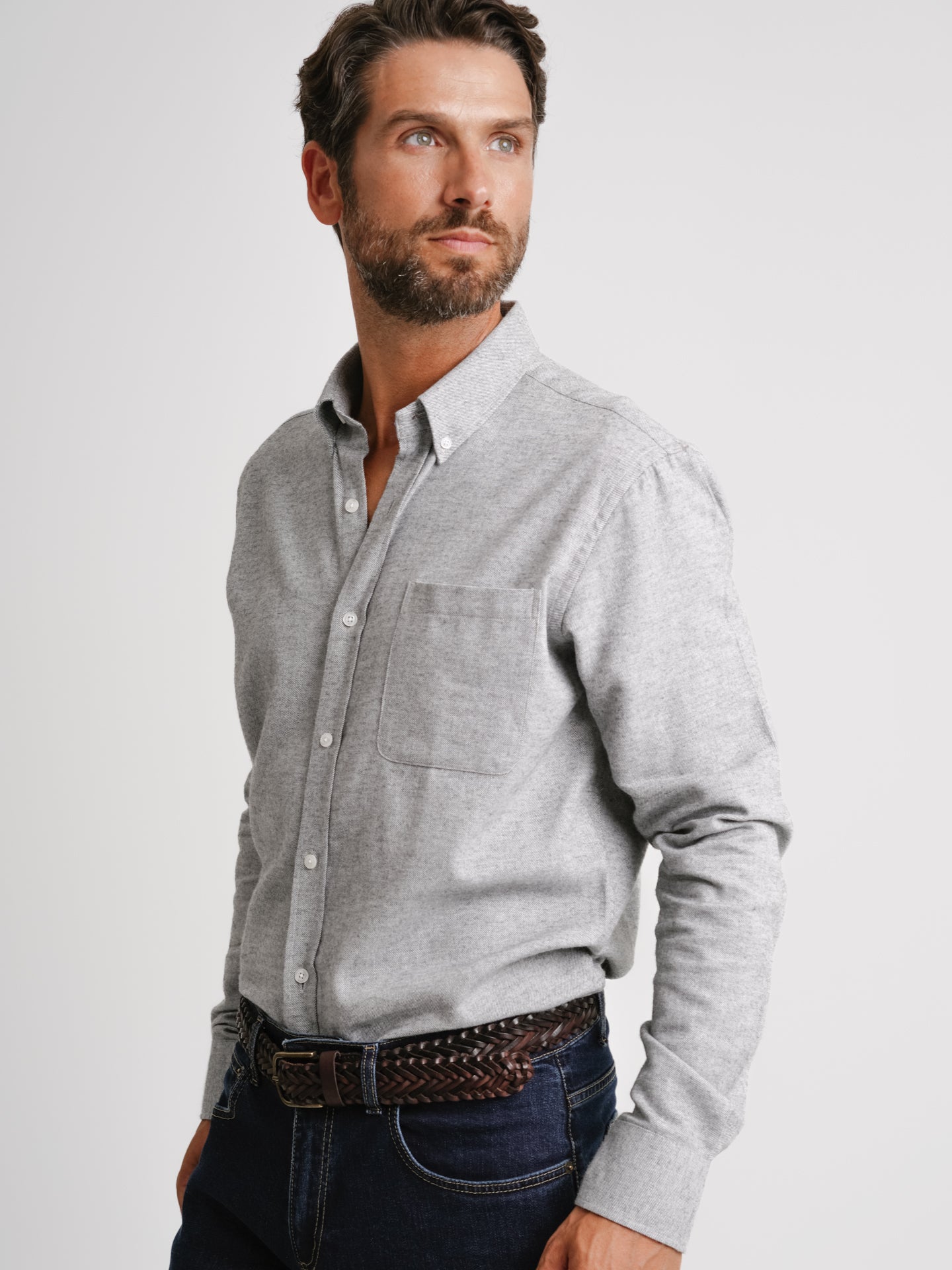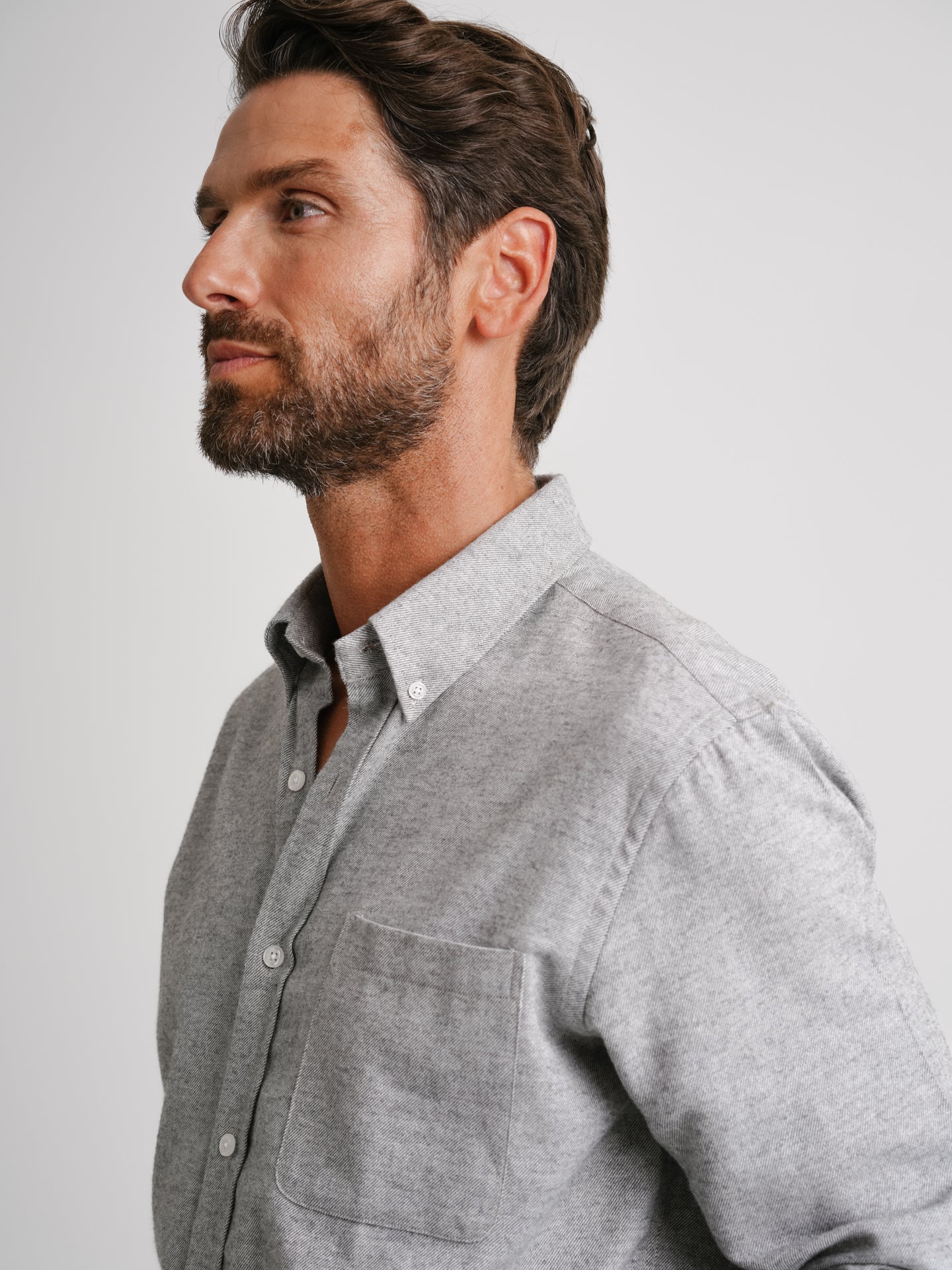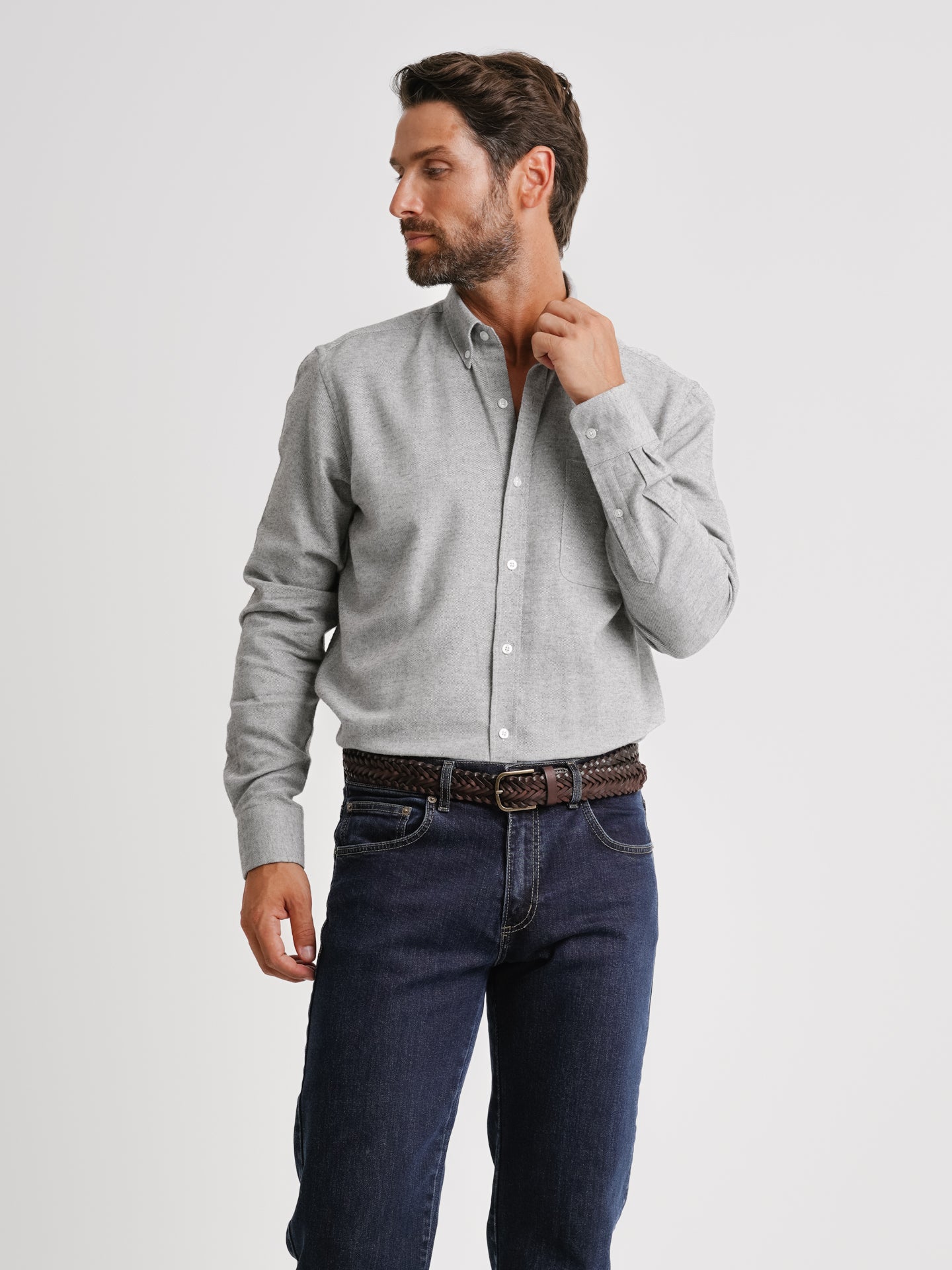 Camisa Regular Fit Flanela Cinzenta Algodão Liso