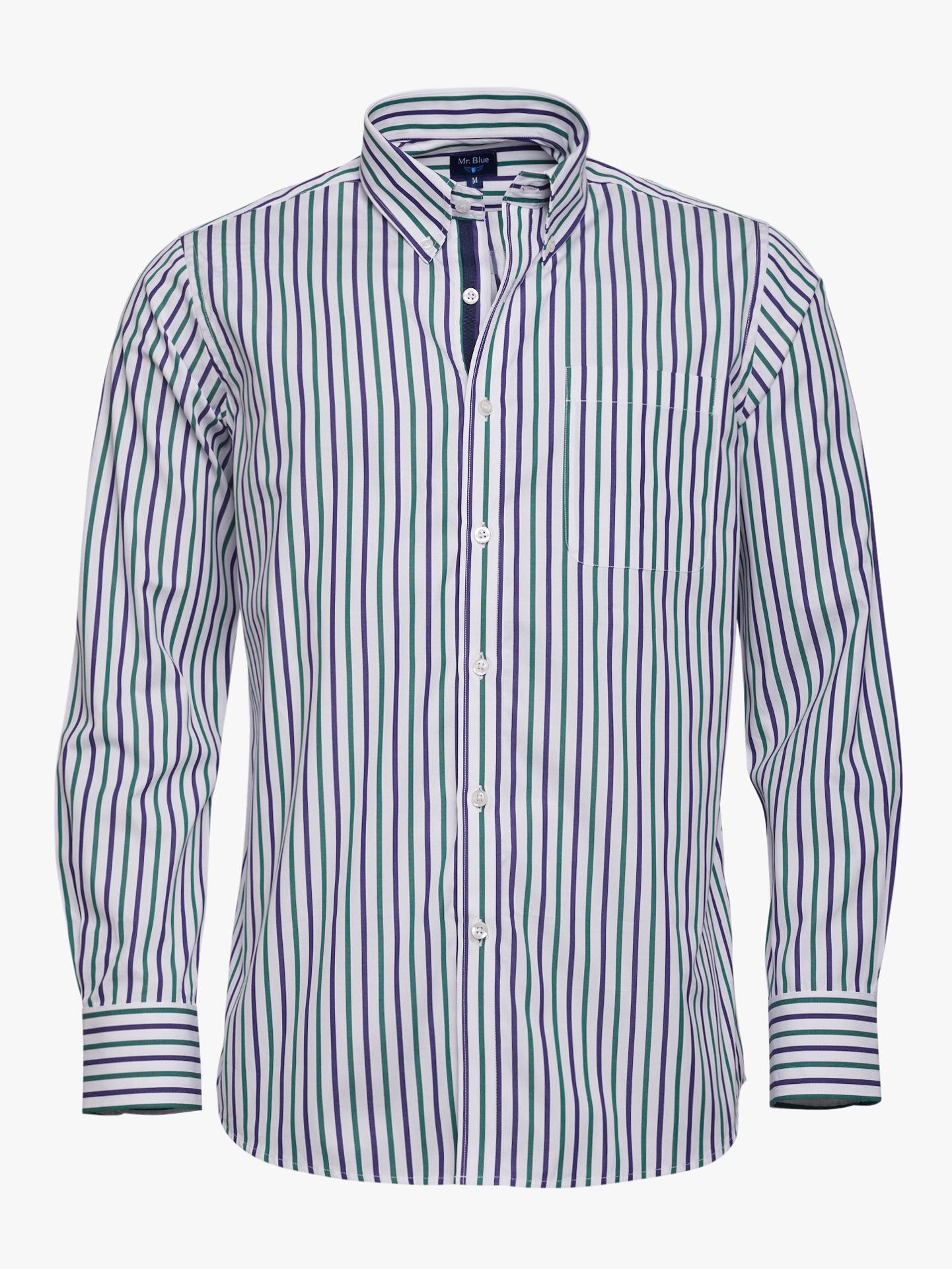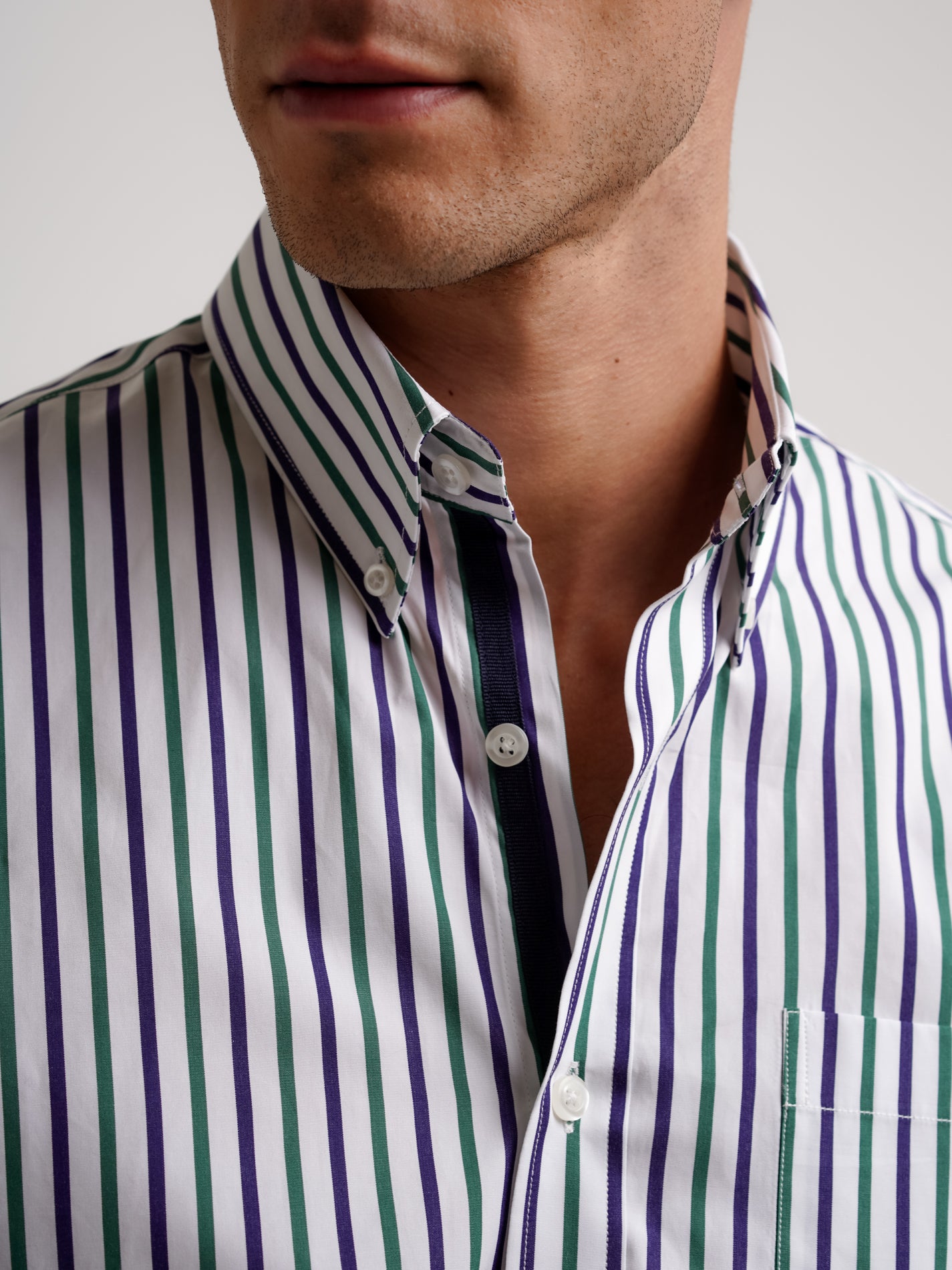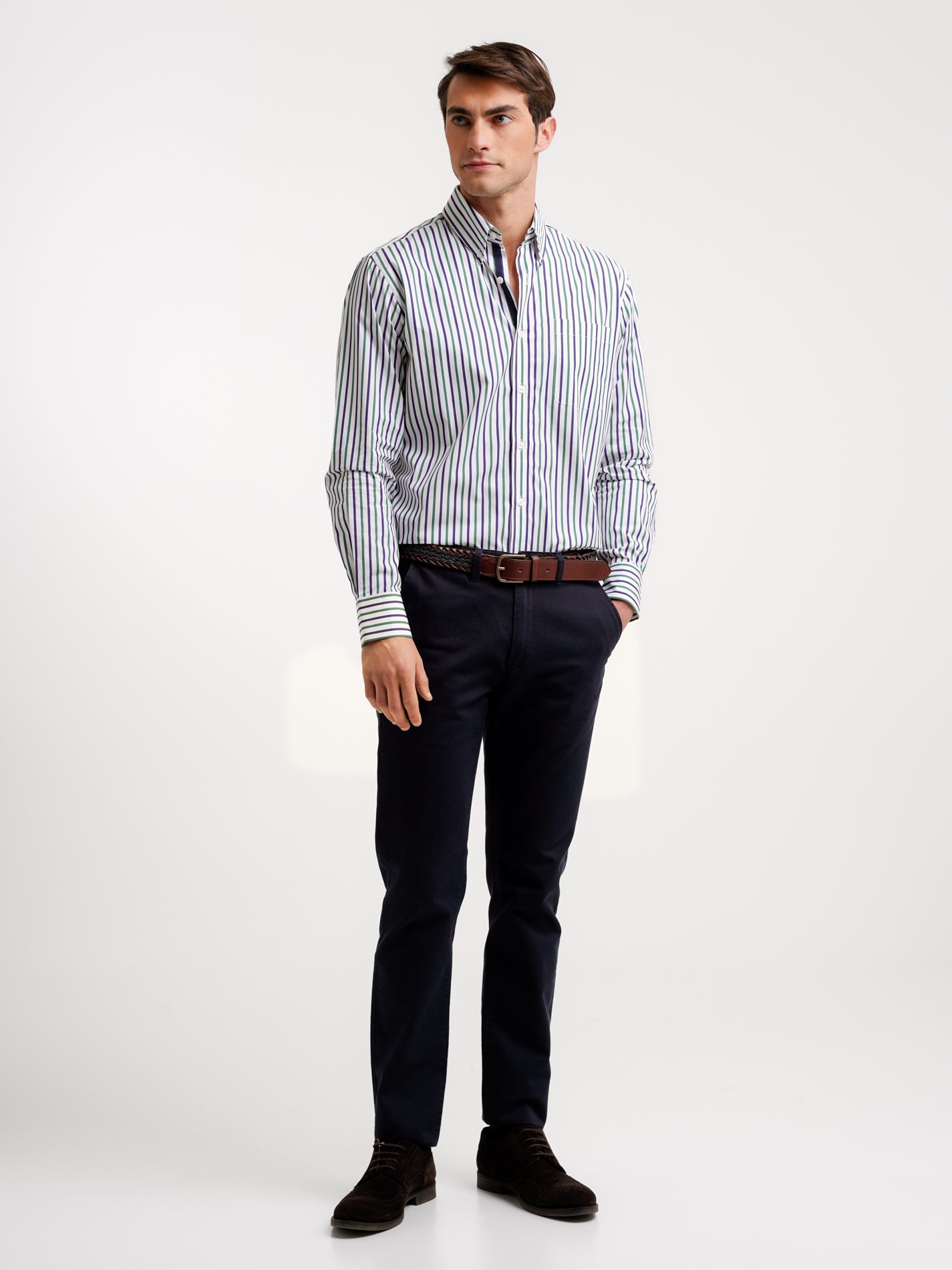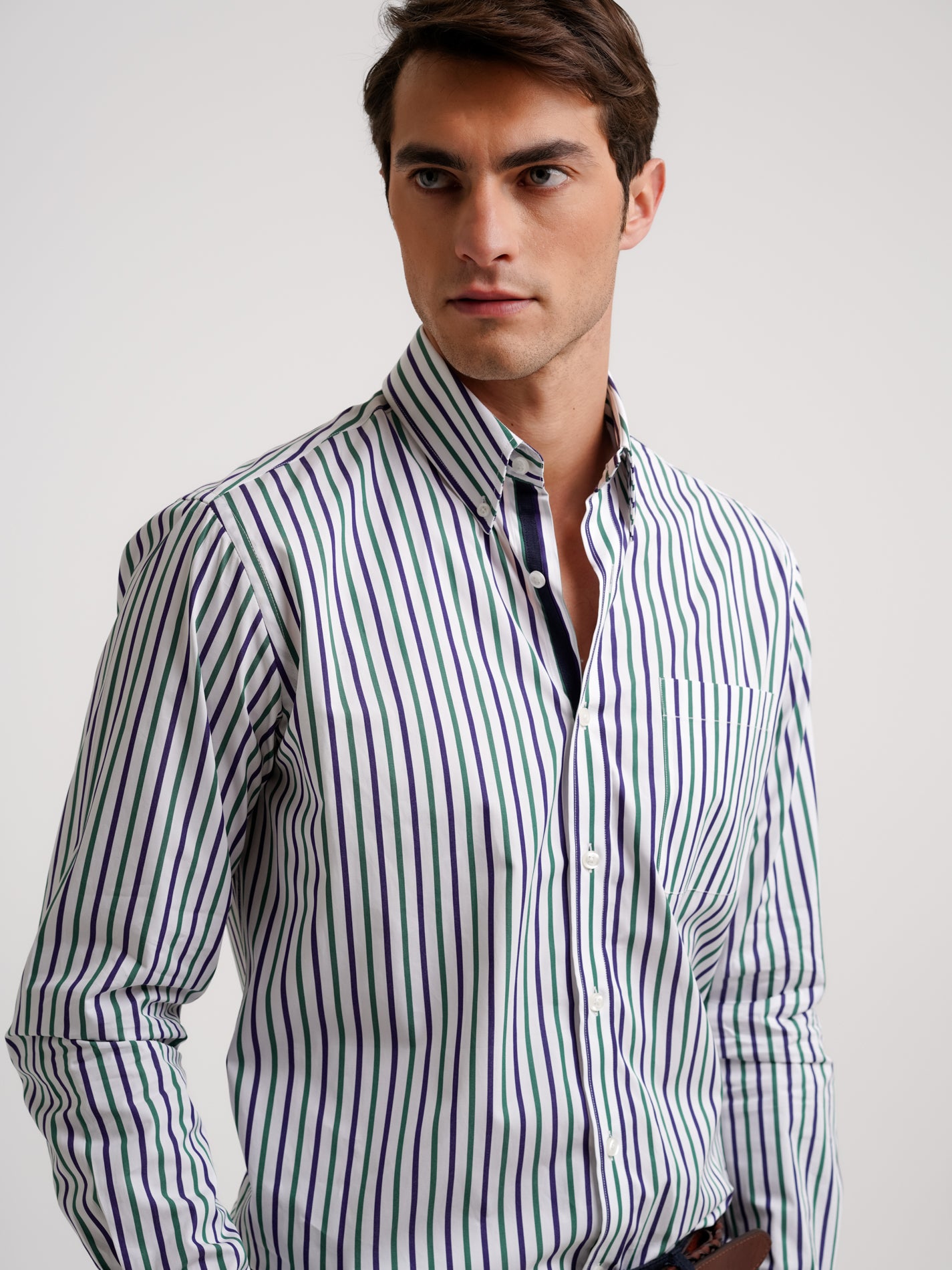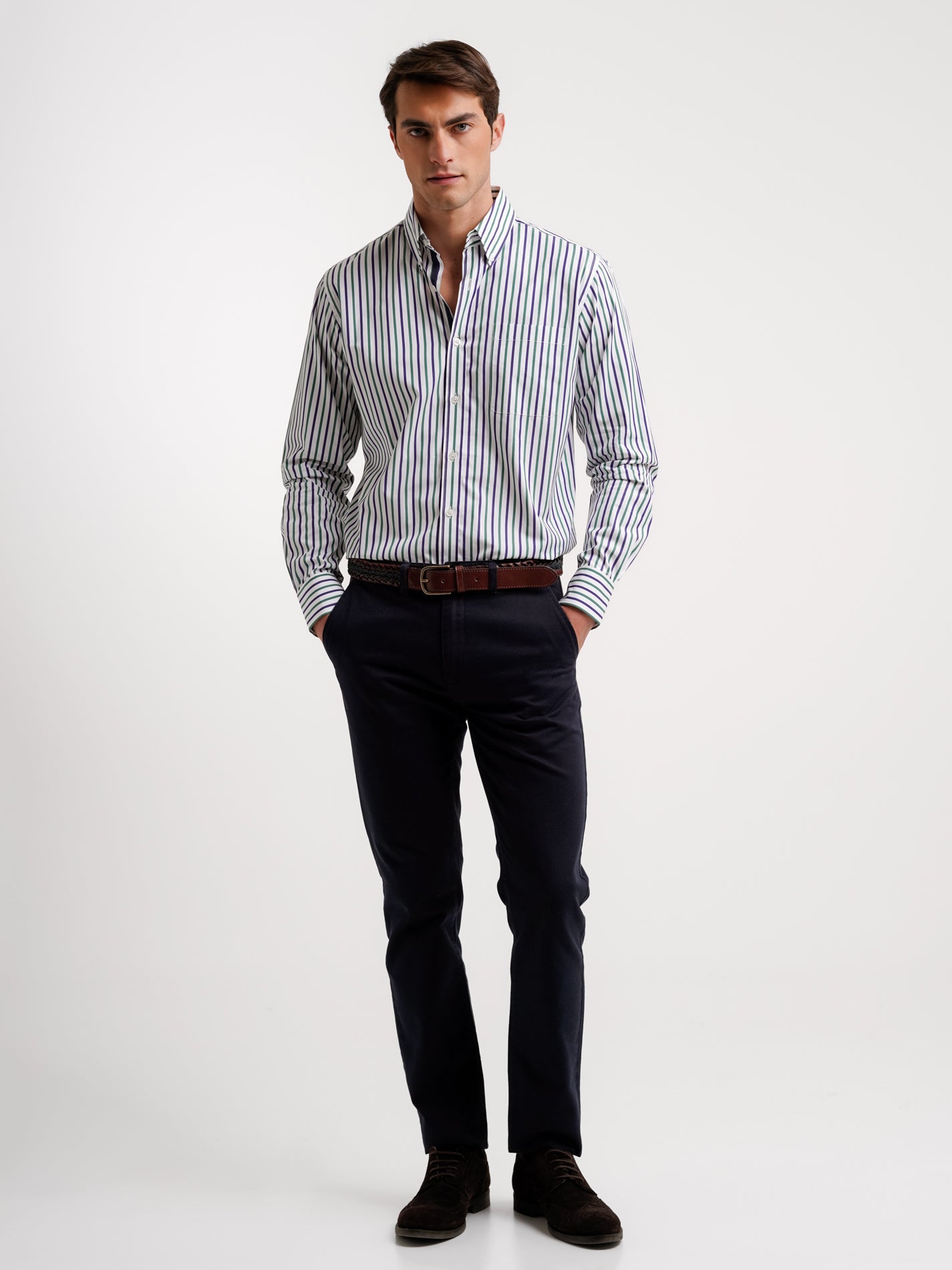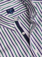 Camisa Regular Fit Popeline Verde Algodão Riscas Com bolso