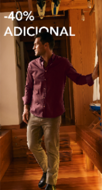 Camisa de homem 100% algodão quadrados grandes branco e vermelho com logo bordado em verde escuro. Corte regular, fecho mediante abotoadura frontal, tape na carcela e manga comprida com acabamento em punho abotoado.