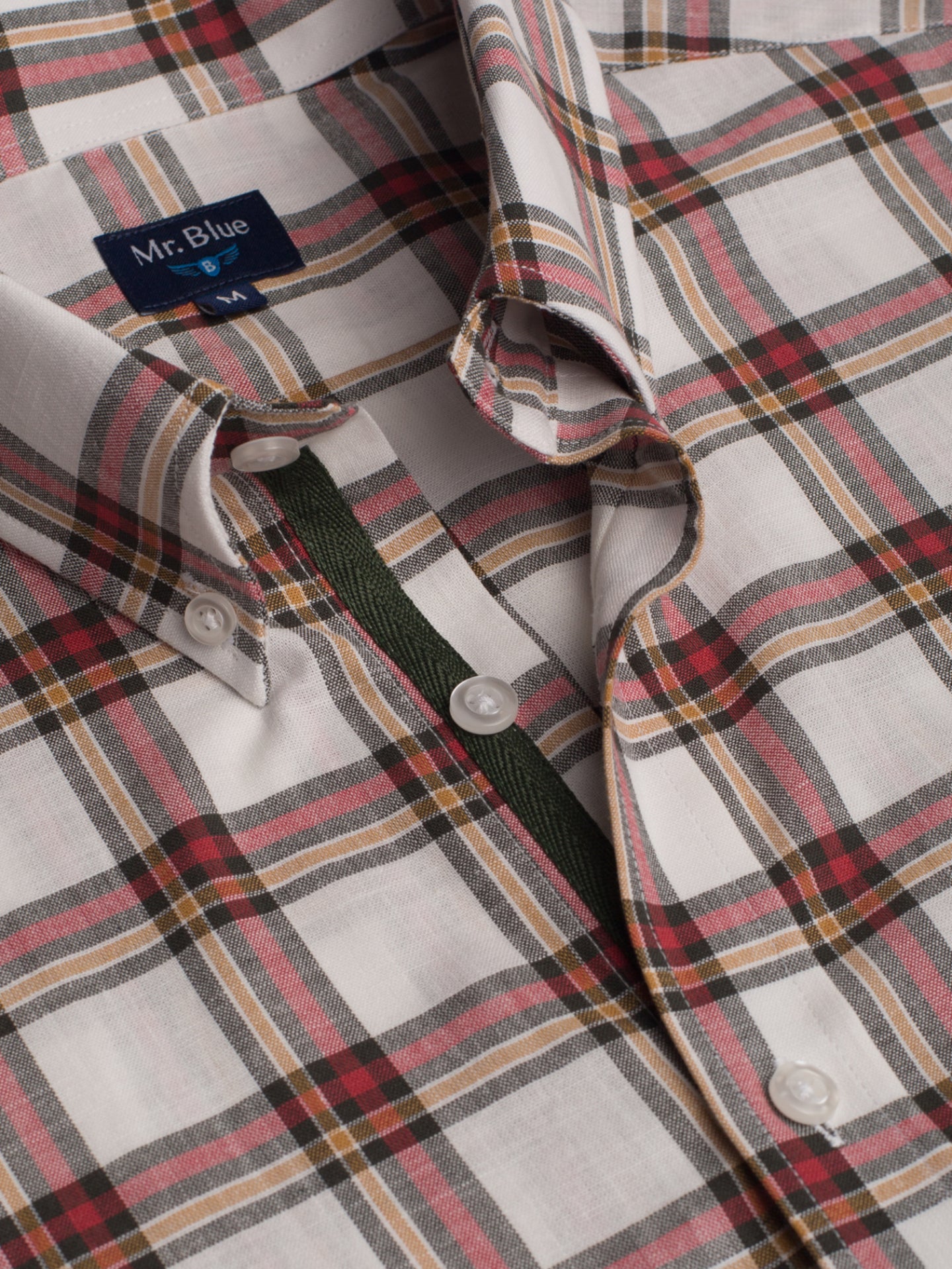 Camisa algodão aos quadrados branco e vermelho com logo bordado e detalhes