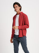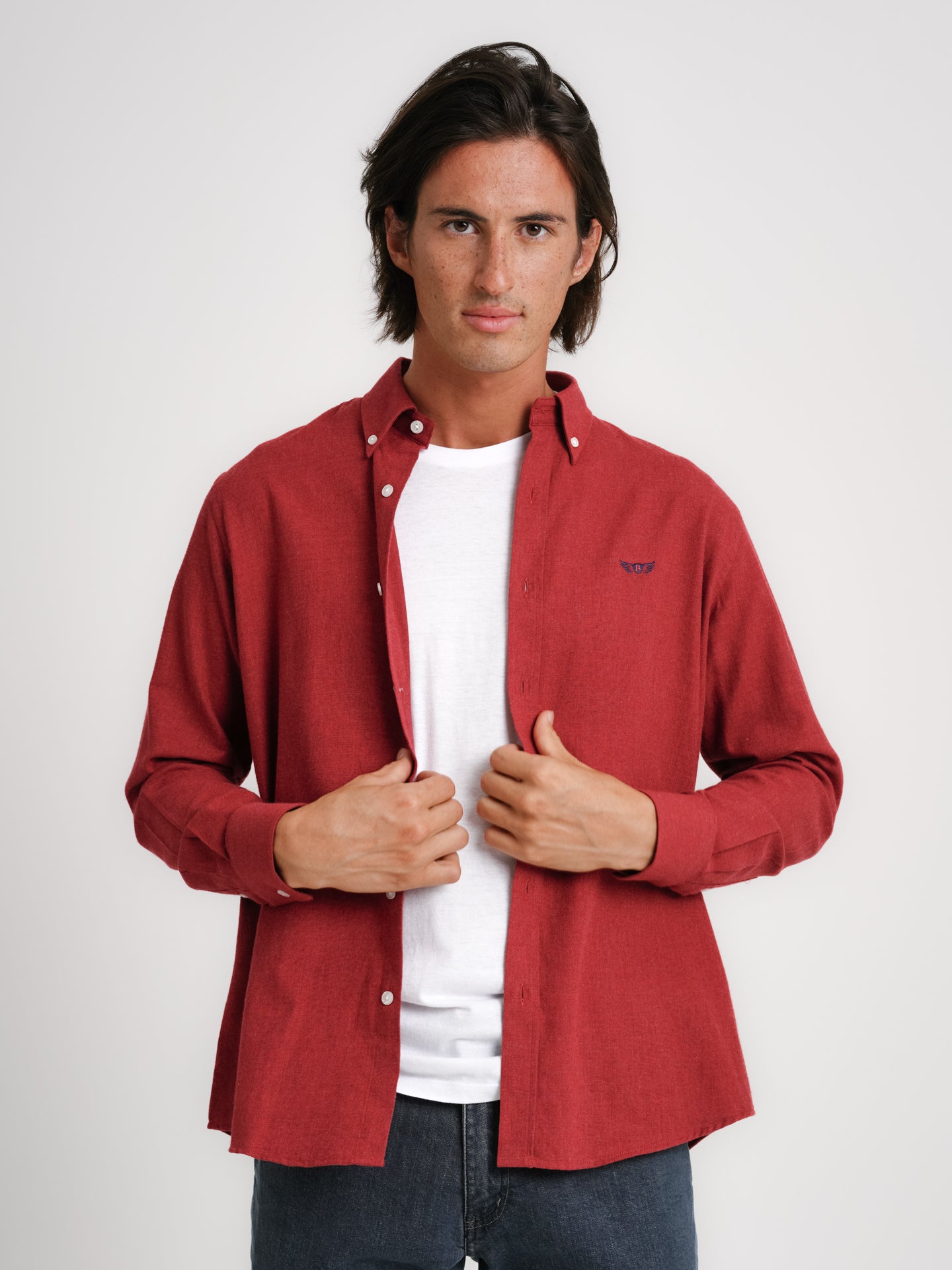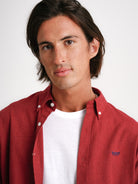 Camisa Regular Fit Twill Vermelha Algodão Liso Com logo