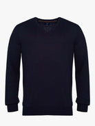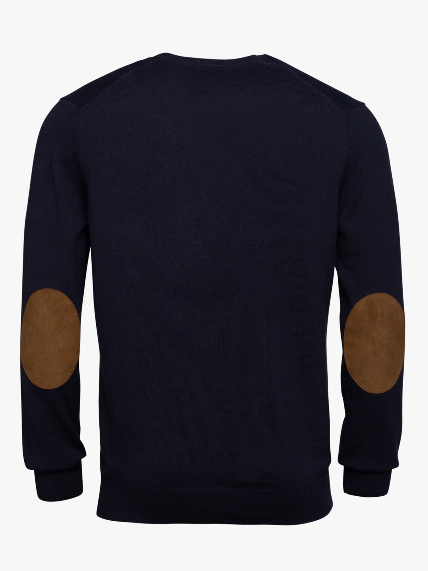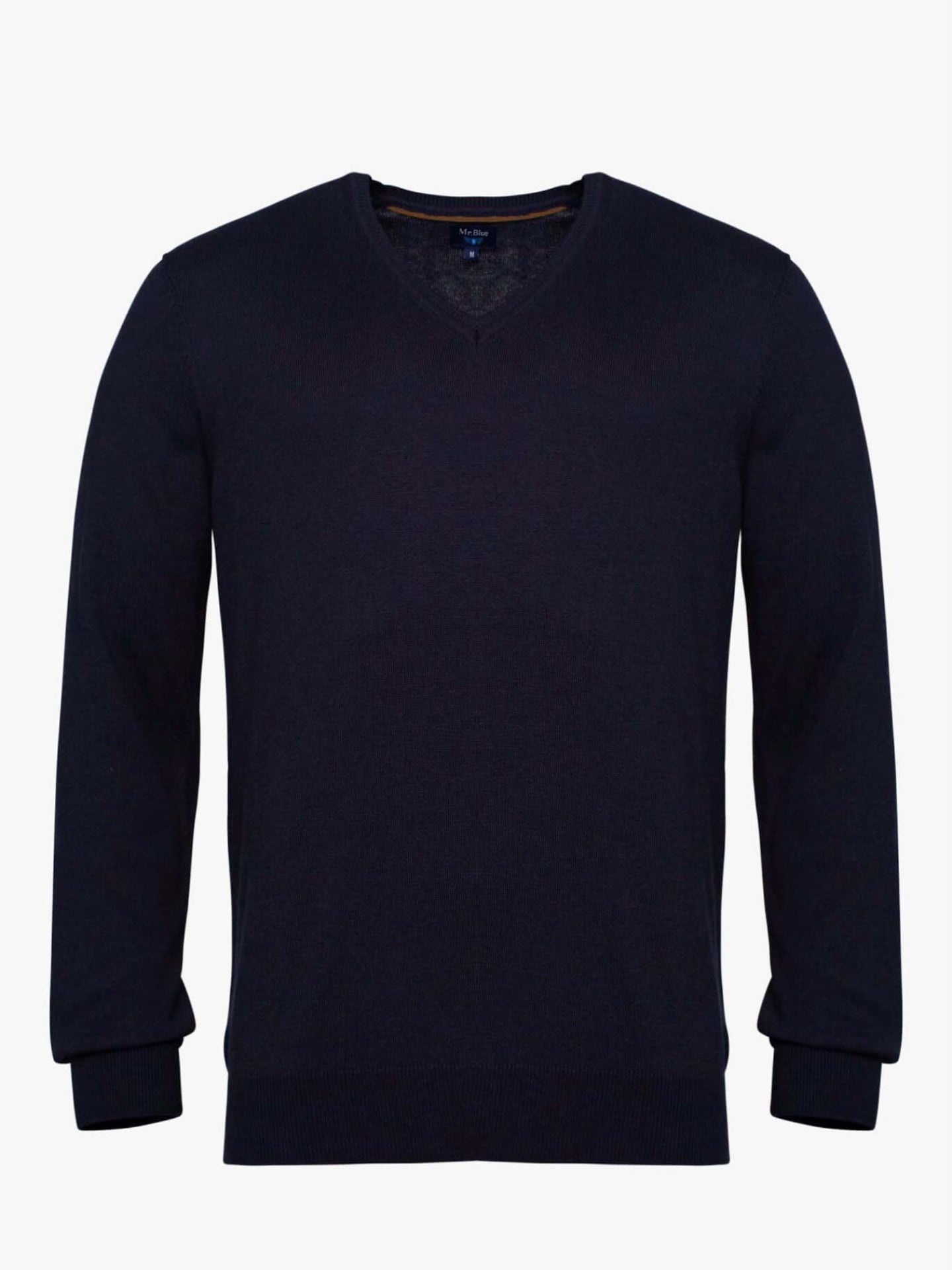 Camisola Homem Regular Fit Algodão e Cashemere Azul escuro Decote em V com cotoveleira.