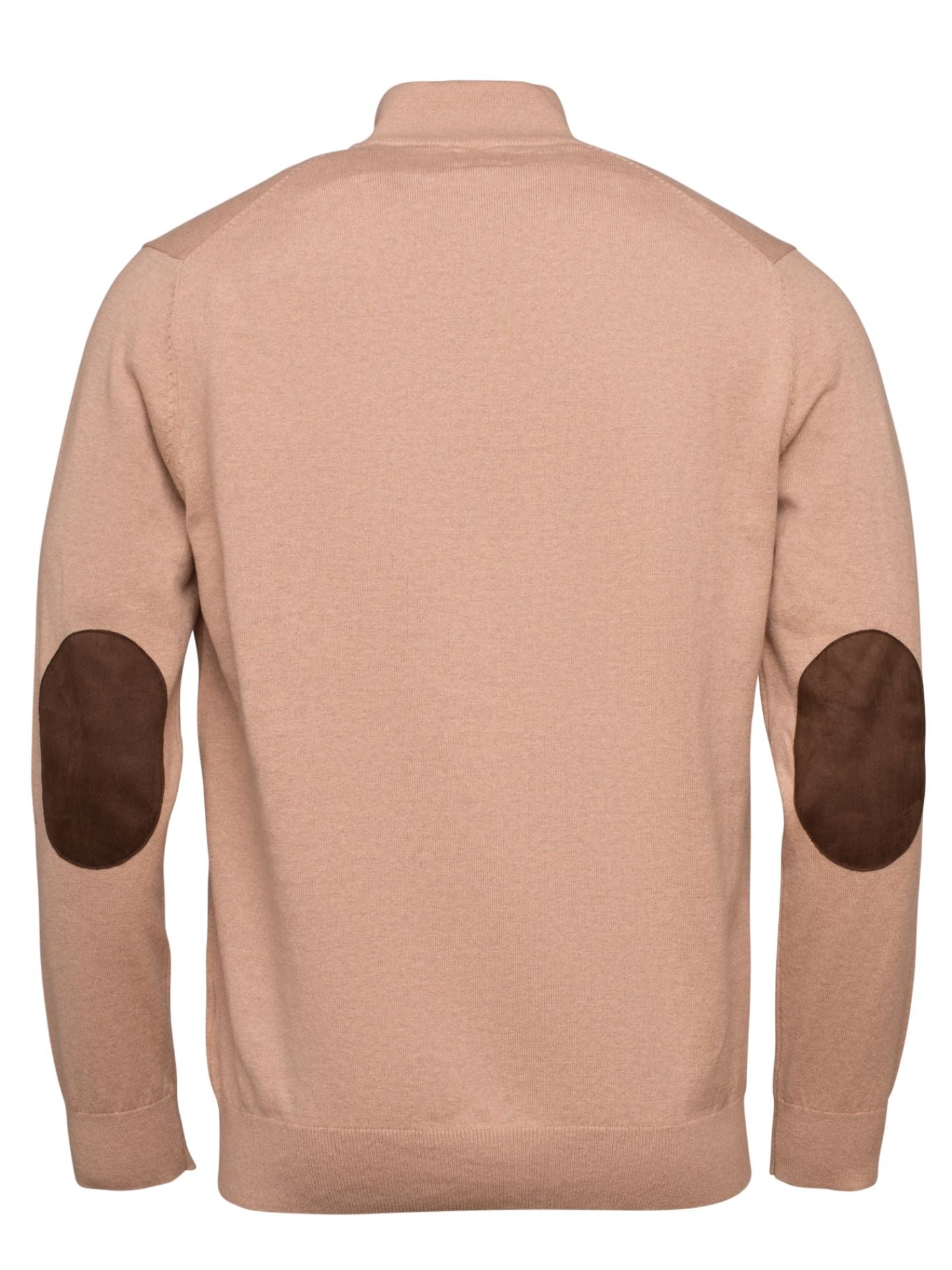 Pullover Algodão e Caxemira com detalhes cotoveleira, colarinho e carcela em camurça. Corte direito, gola alta com fecho de correr, manga comprida e acabamentos canelados. Muito confortável e descontraído.
