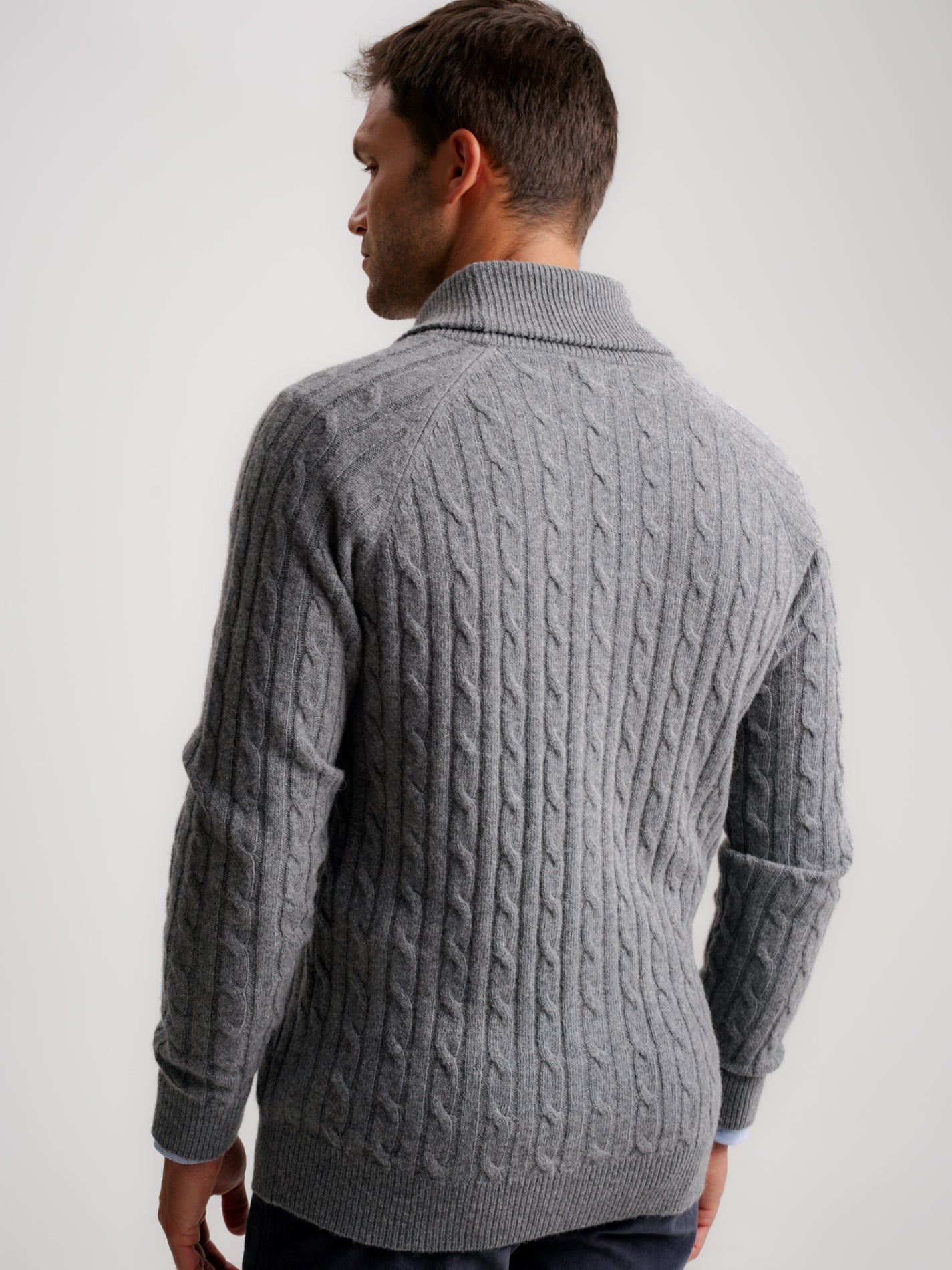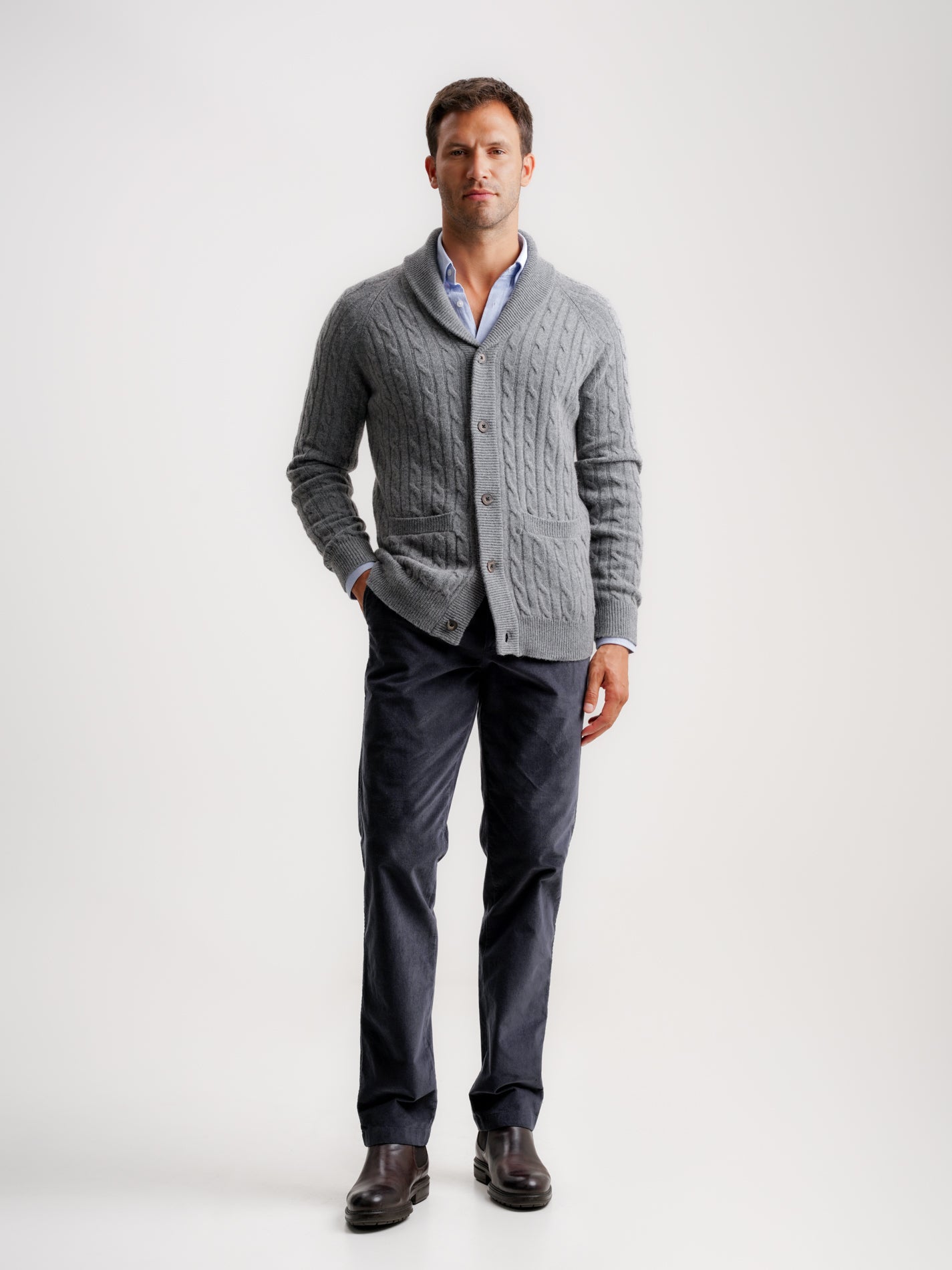 Cardigan Lã Grosso Cinzento Padrão Sem Logo e Sem Bolso