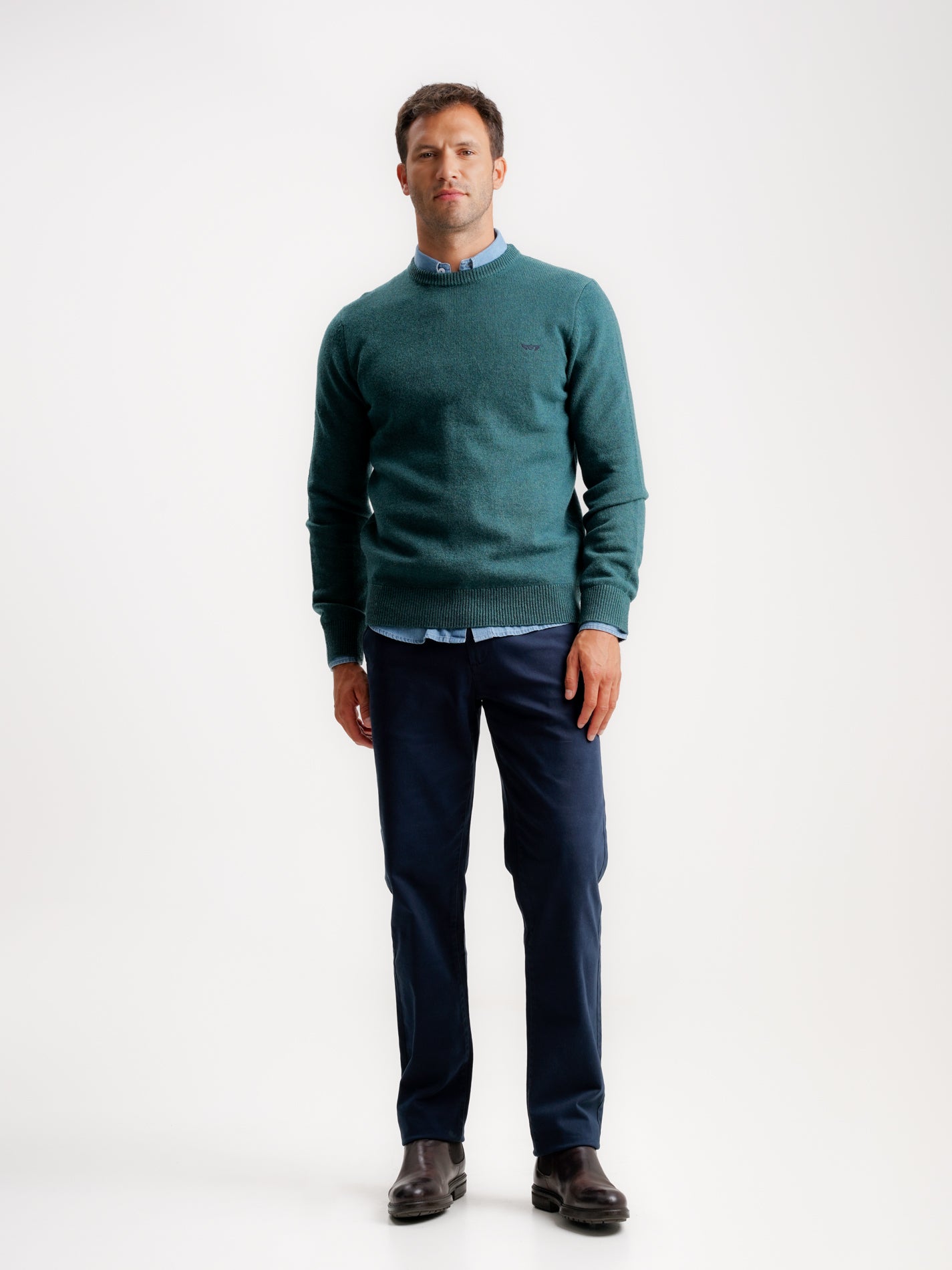 Pullover Lã Grosso Verde Liso Com Logo