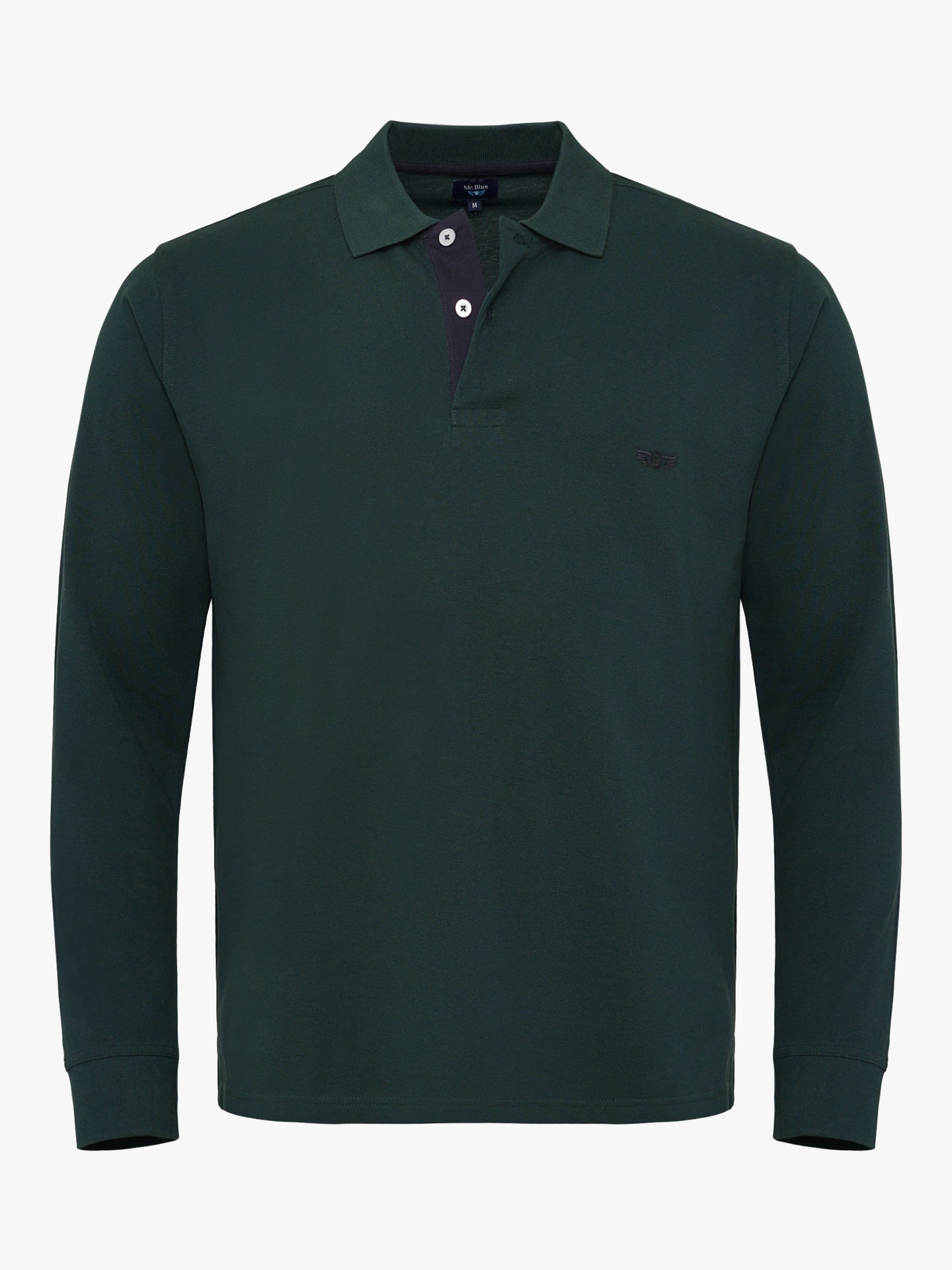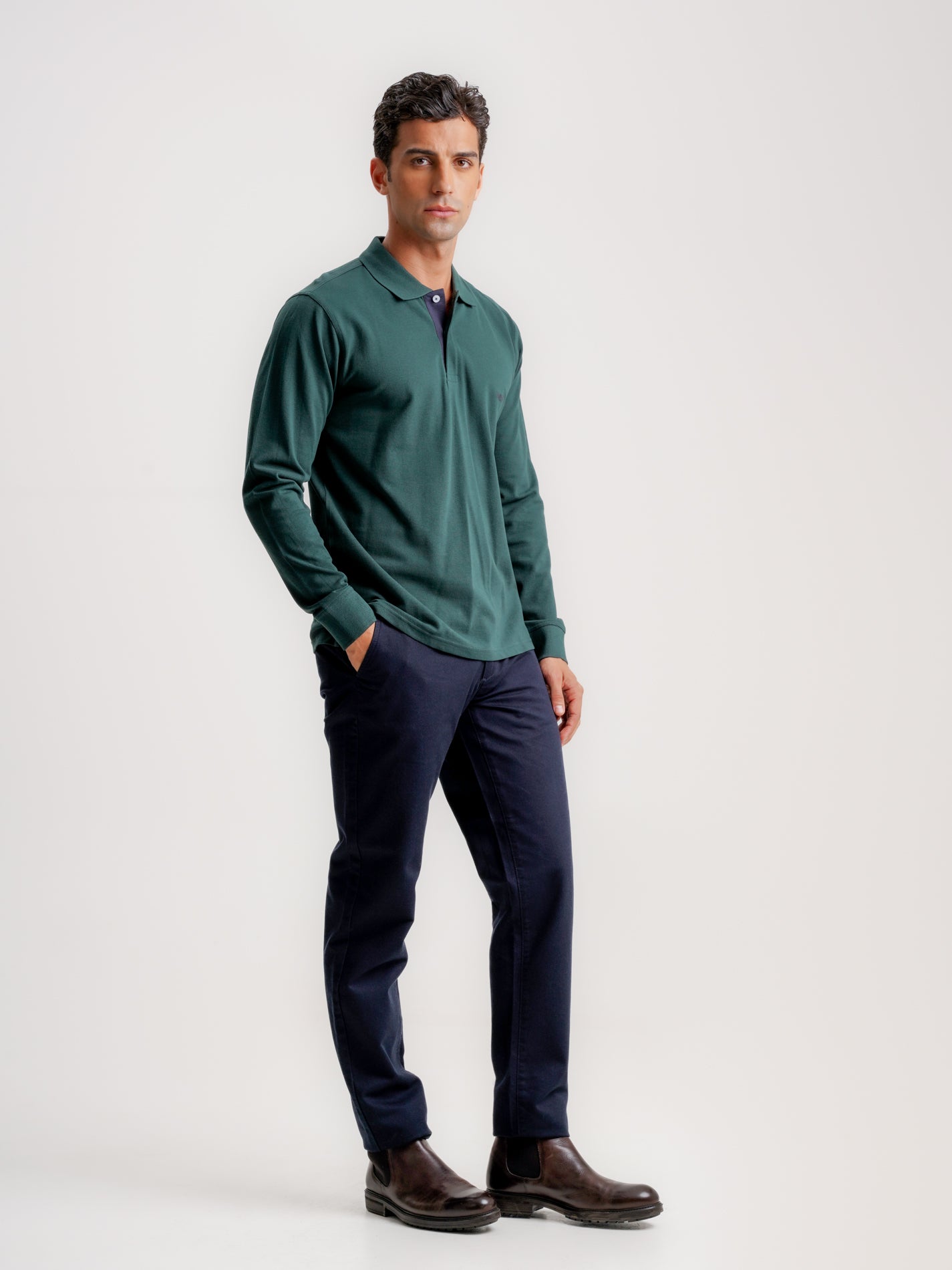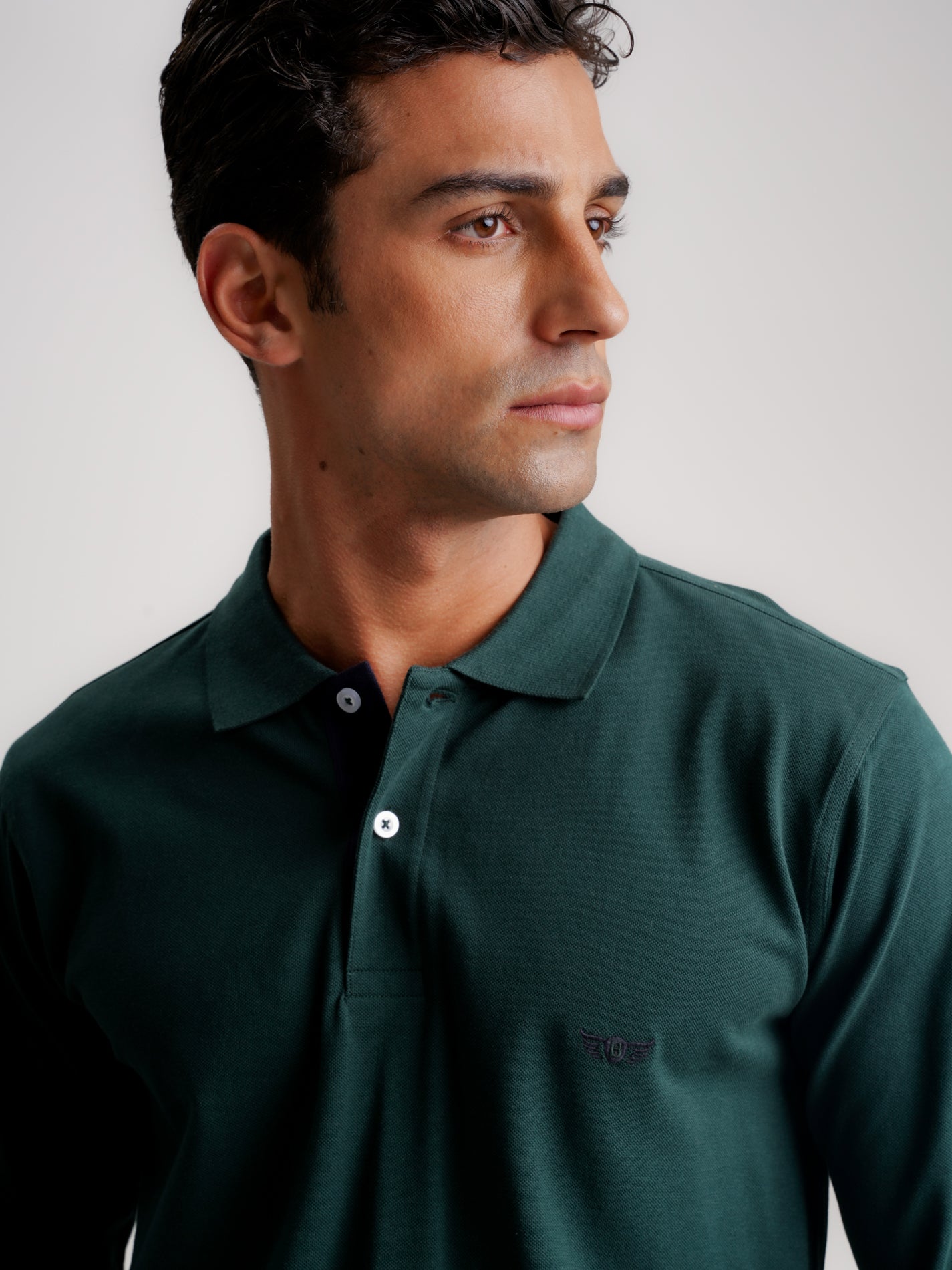 Polo Regular Fit Piquet Verde De Algodão Manga Comprida Liso e Com Logo