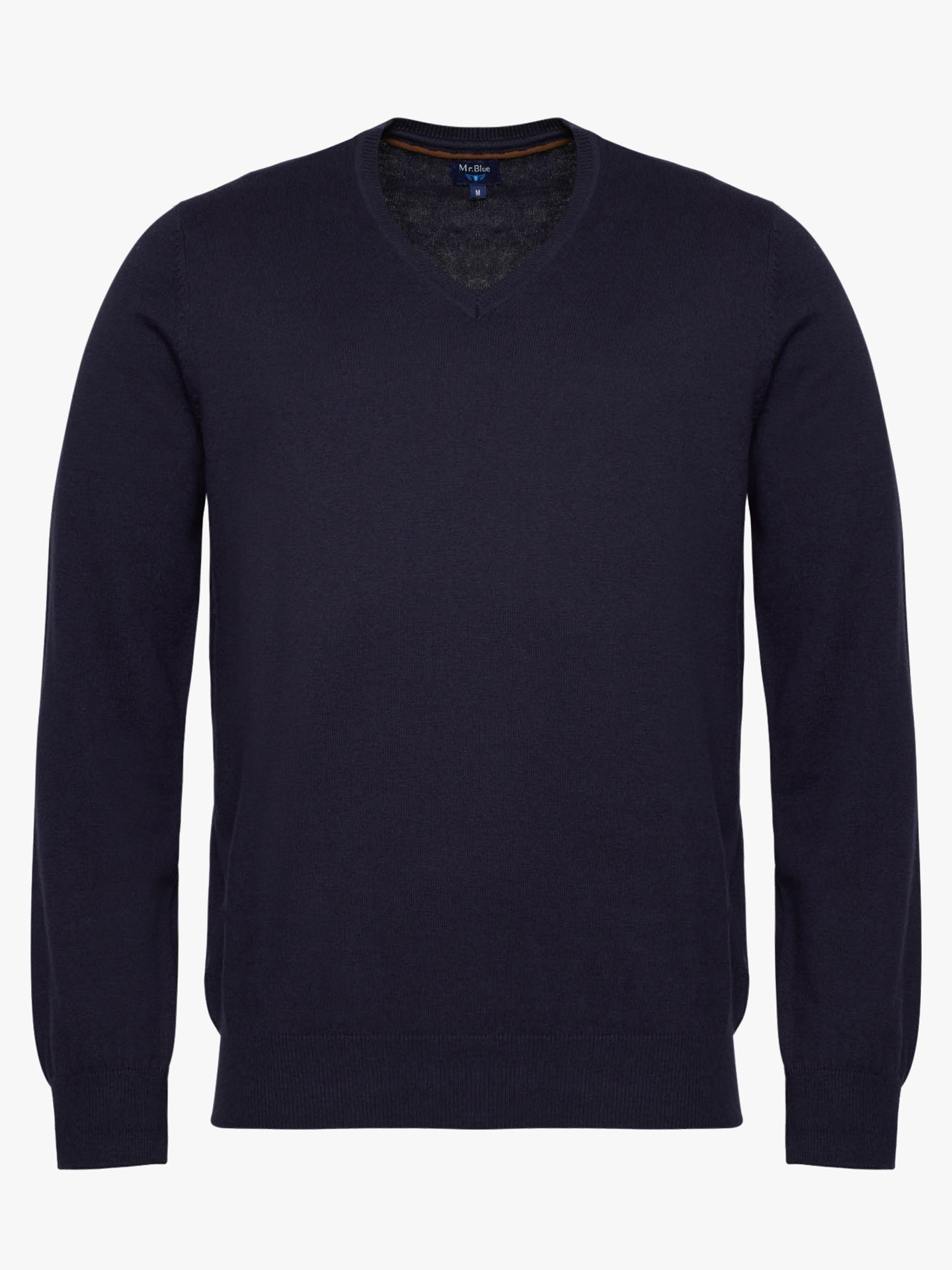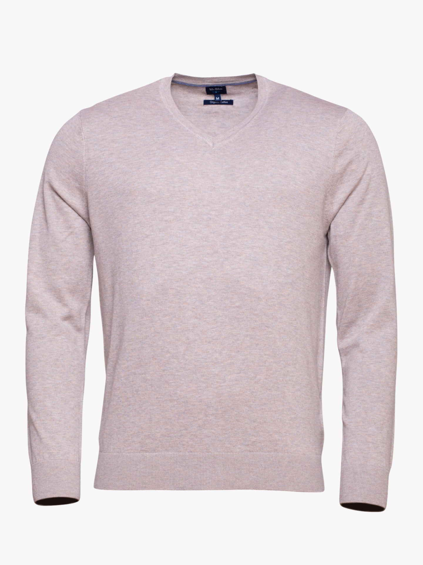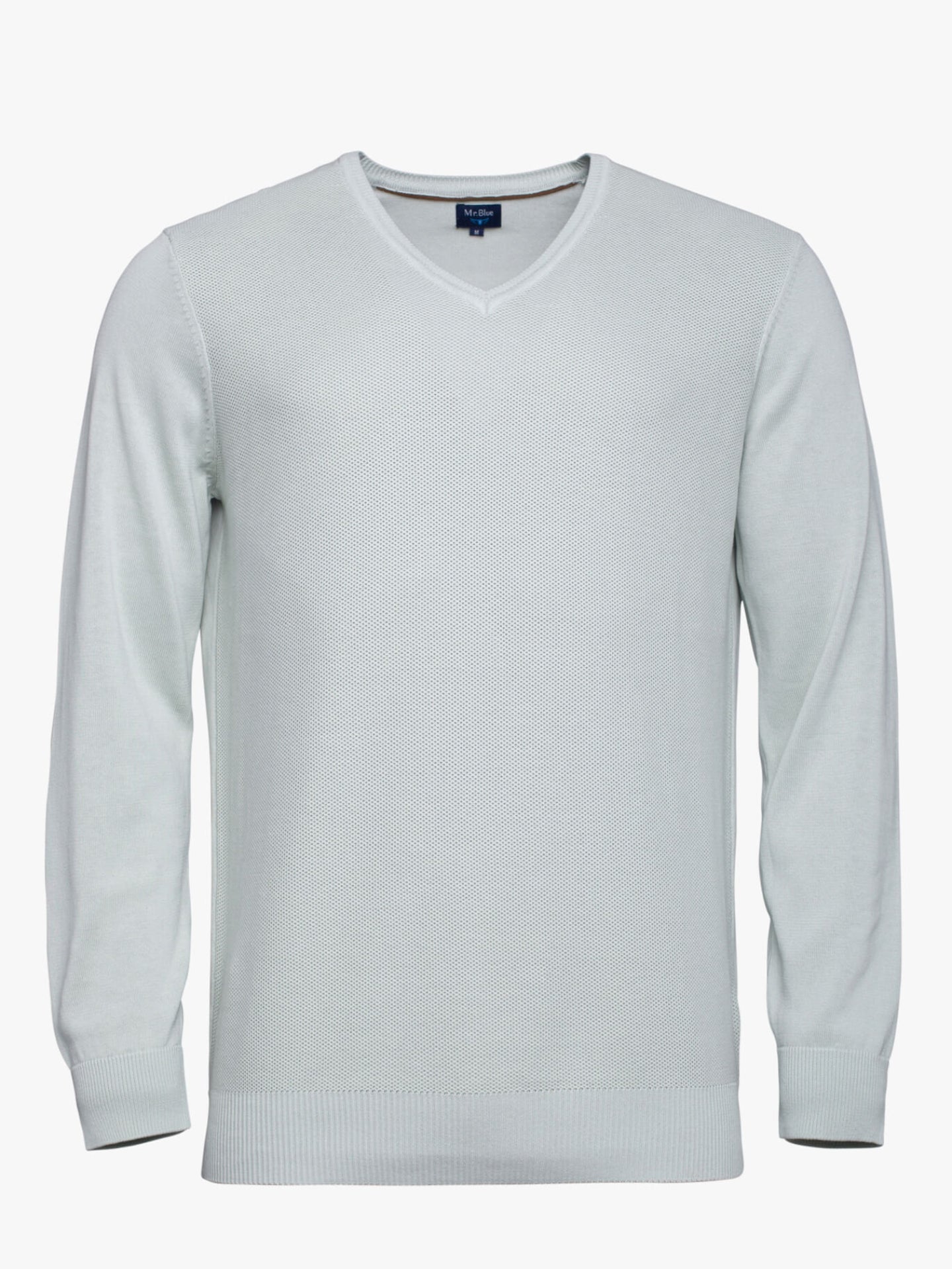 Pullover algodão e caxemira decote em V com detalhe colarinho