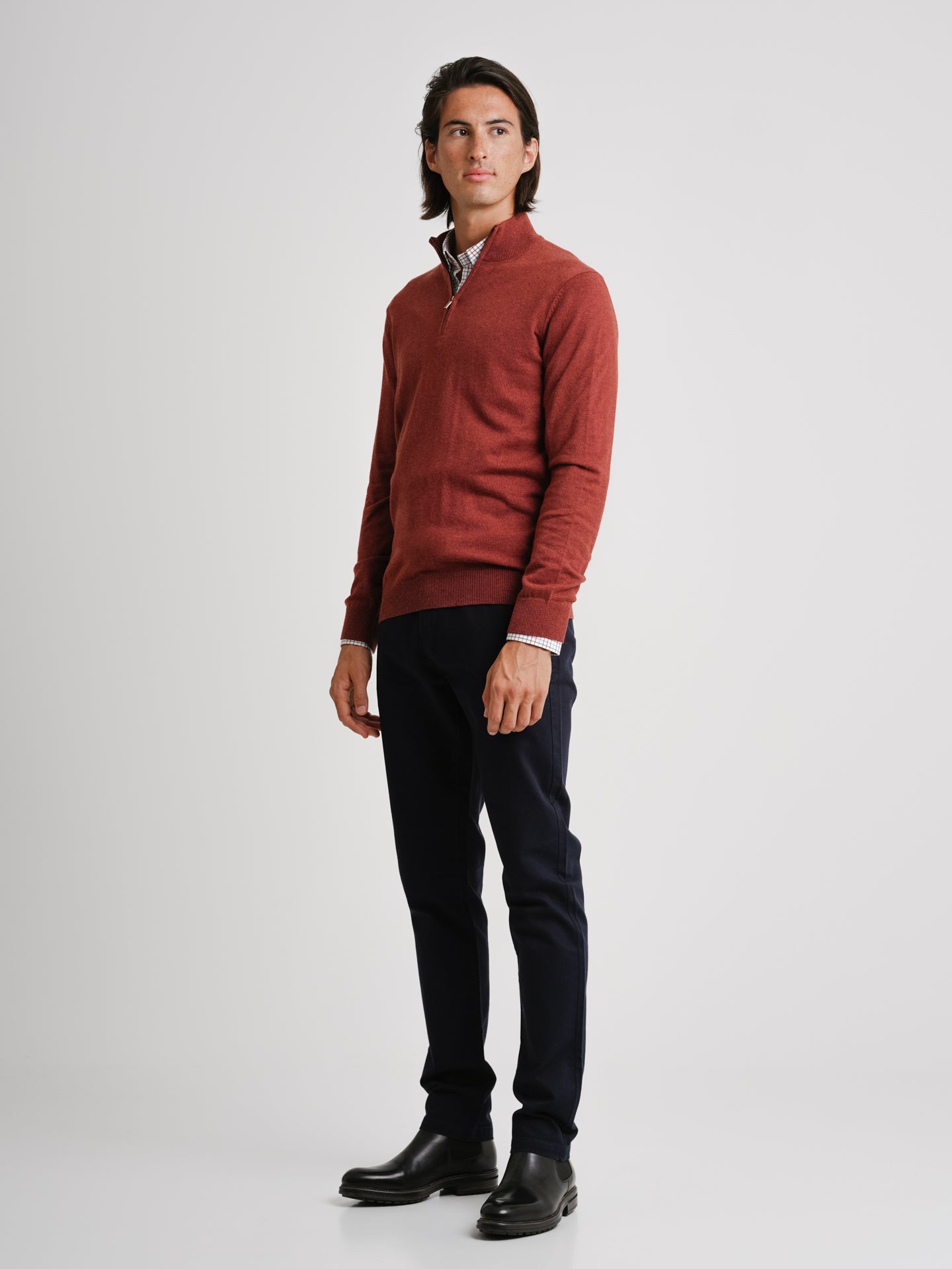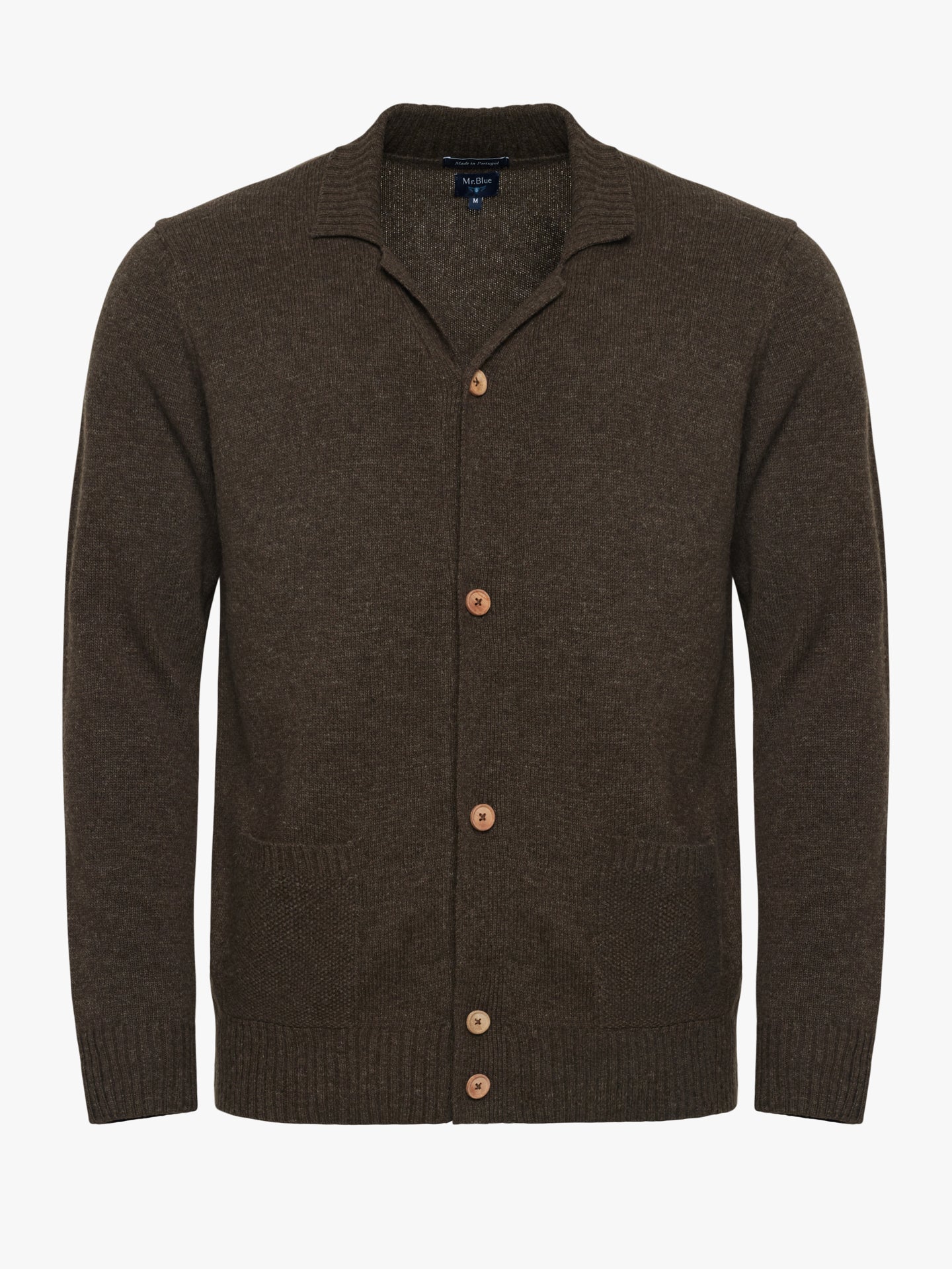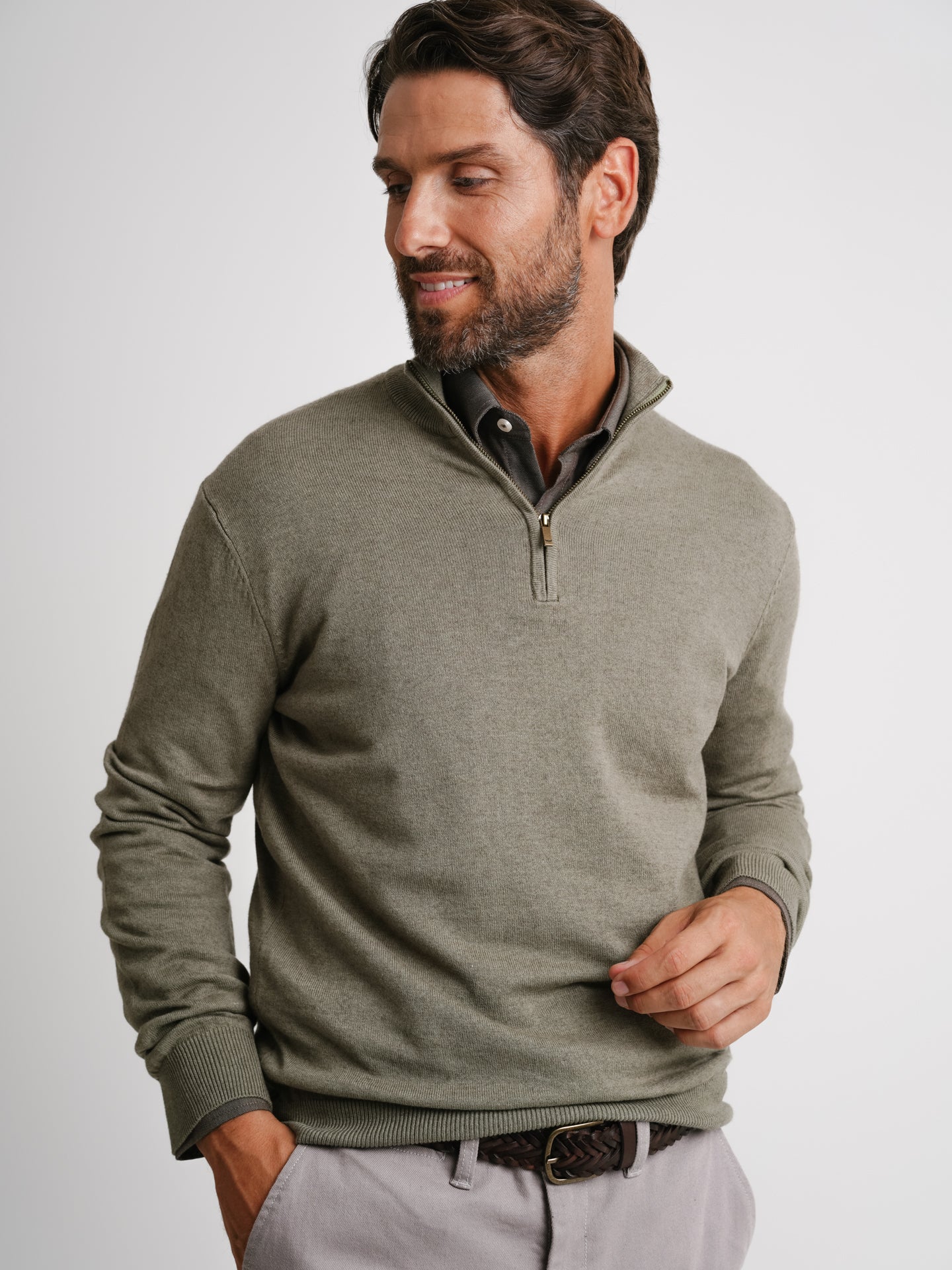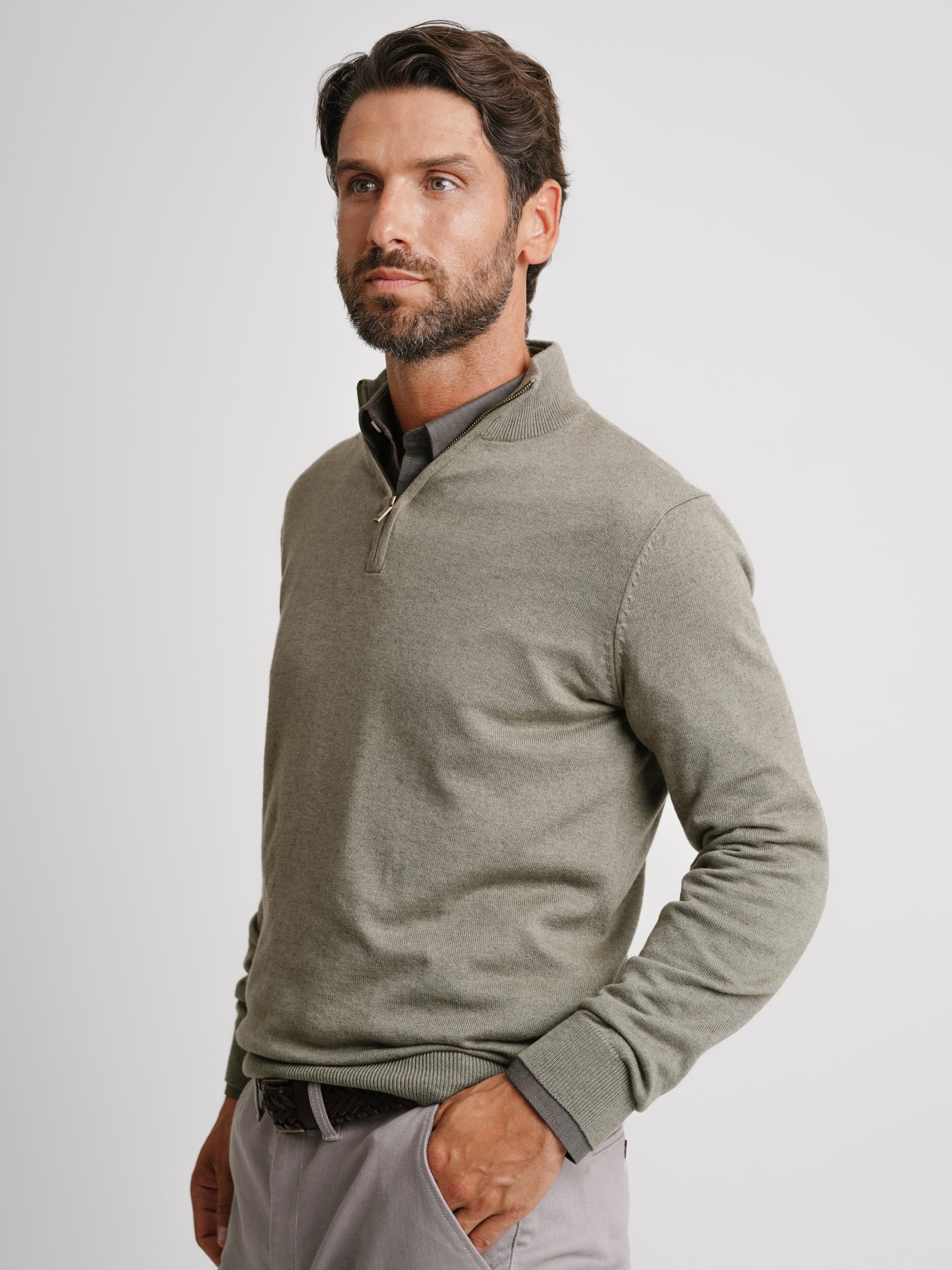Pullover algodão e caxemira decote em V com detalhe colarinho