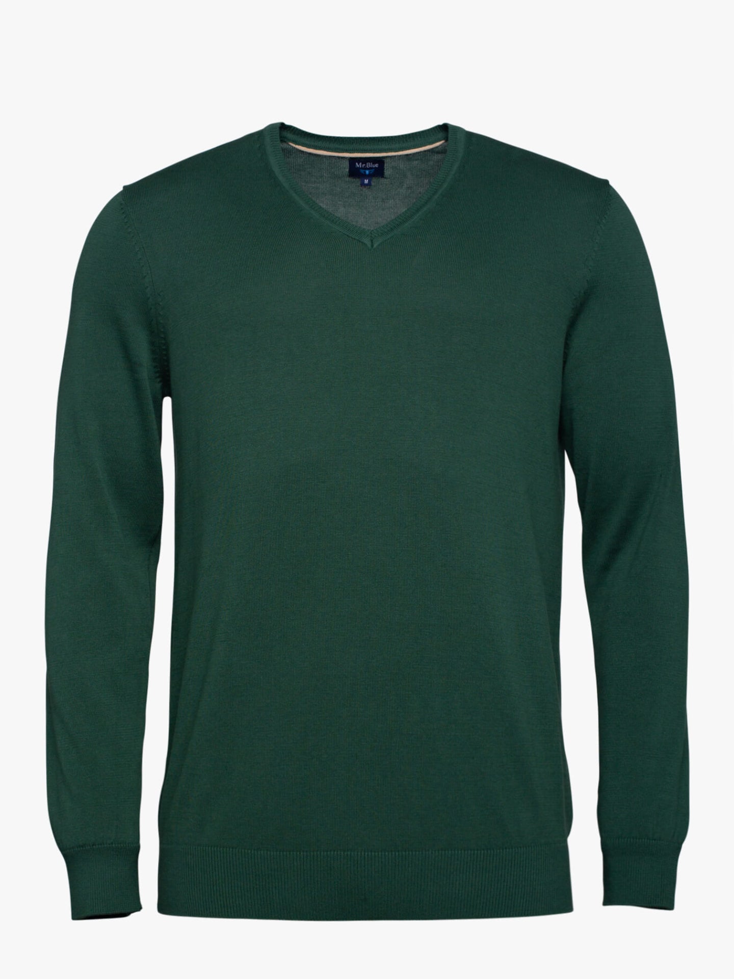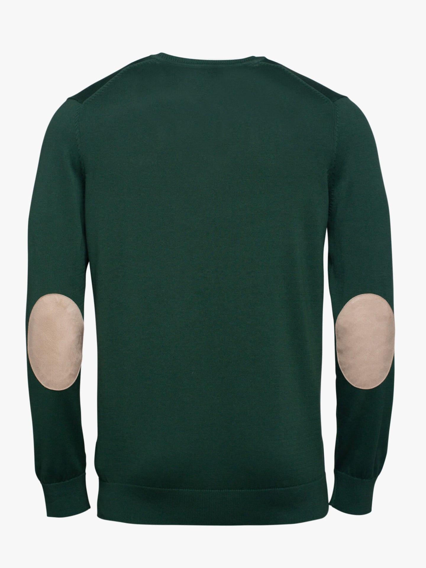 Camisola verde escuro em algodão decote em V com cotoveleiras