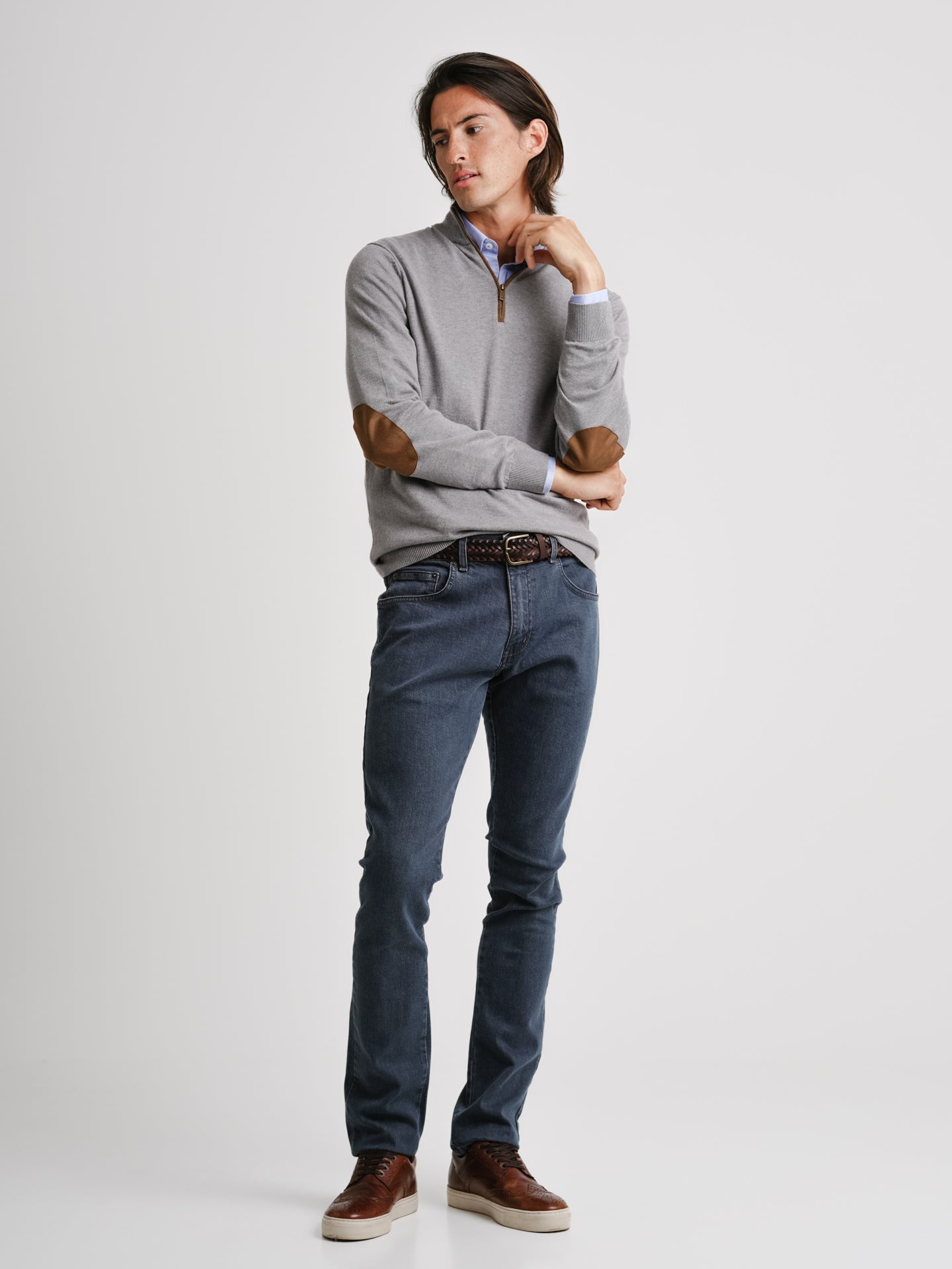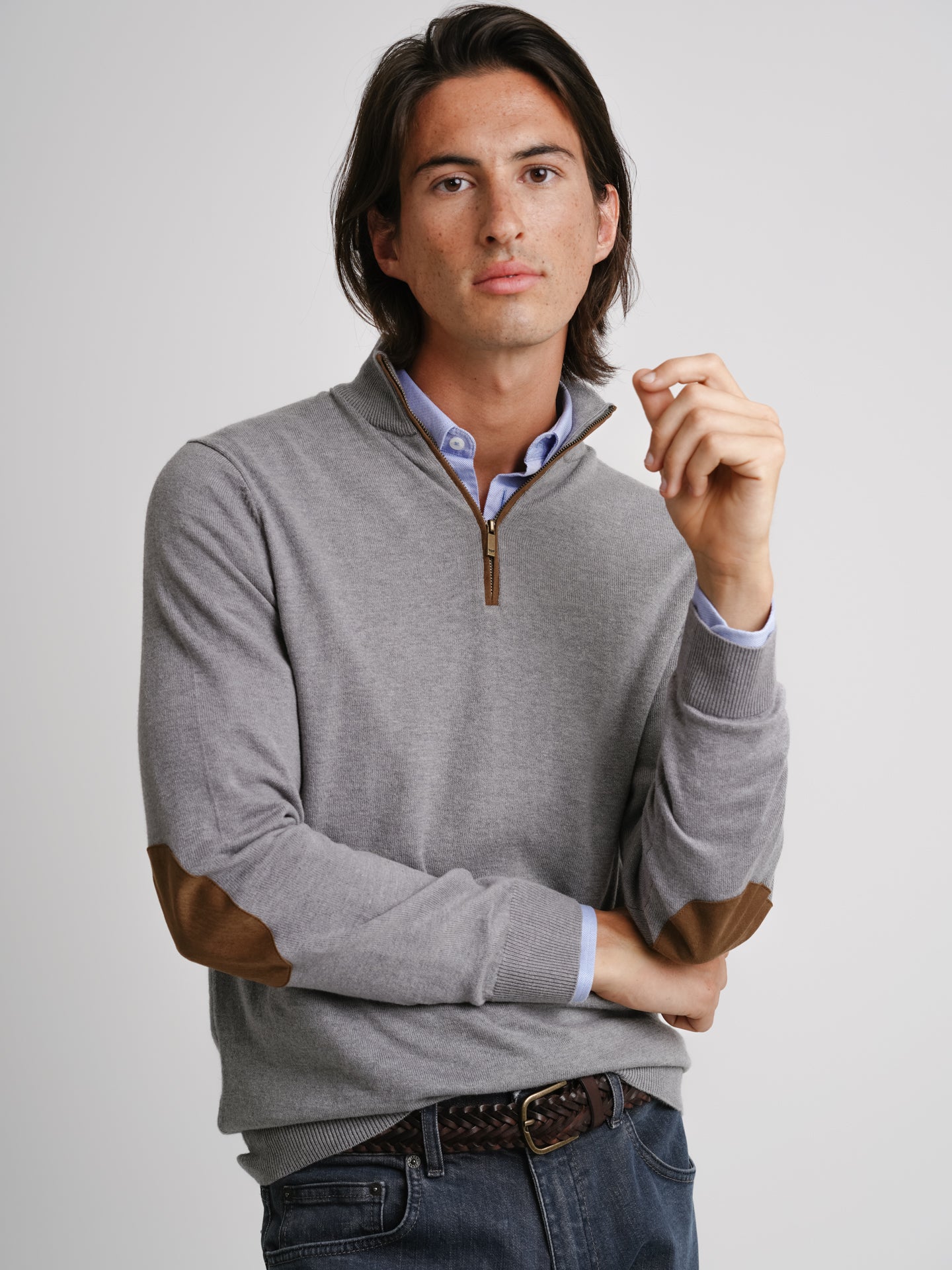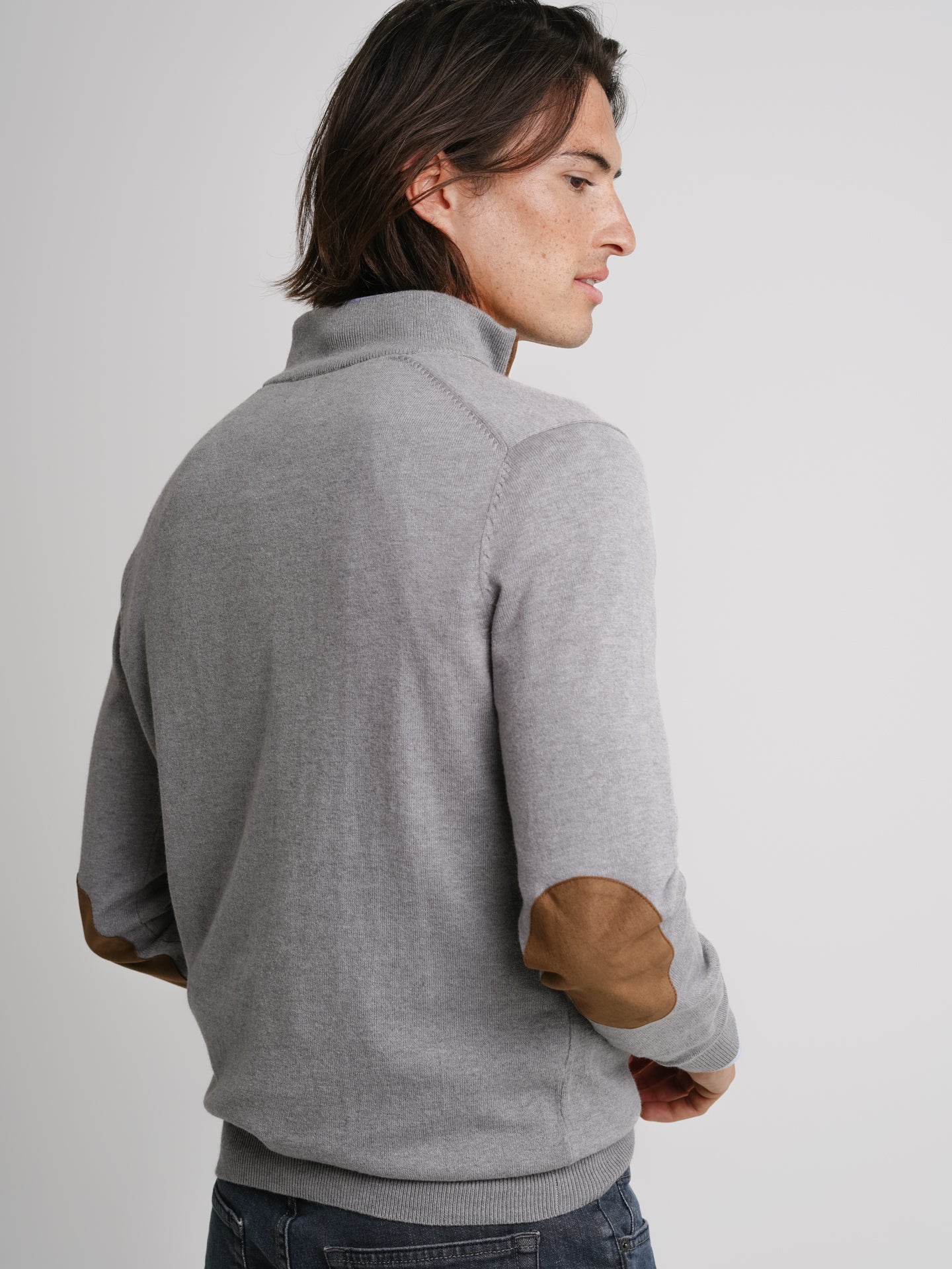Pullover Lã Merino Fino Cinzento Lã Merino Cotoveleira Liso
