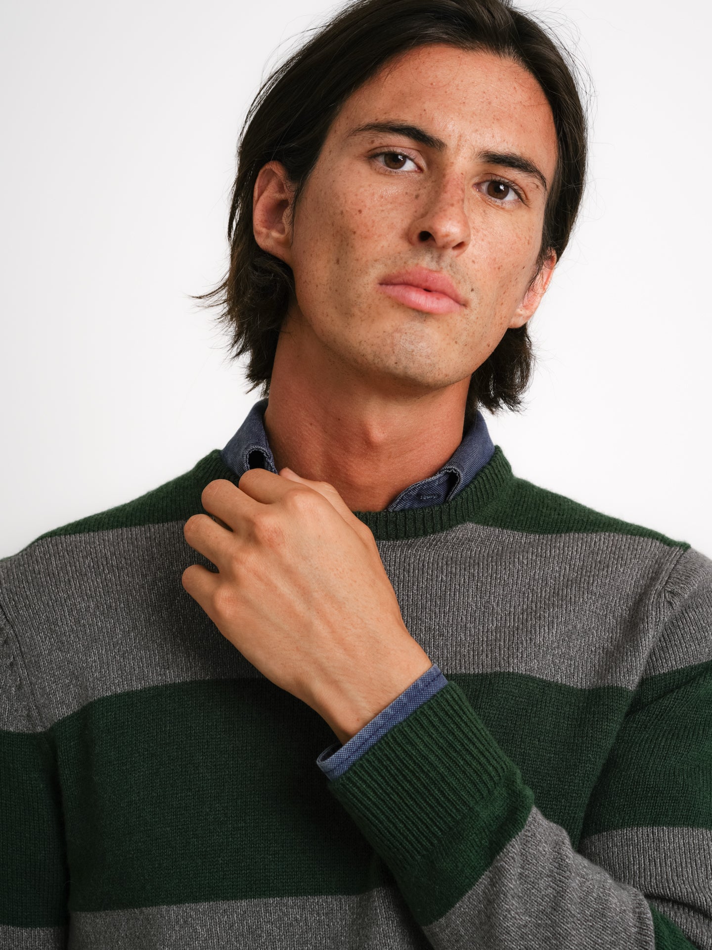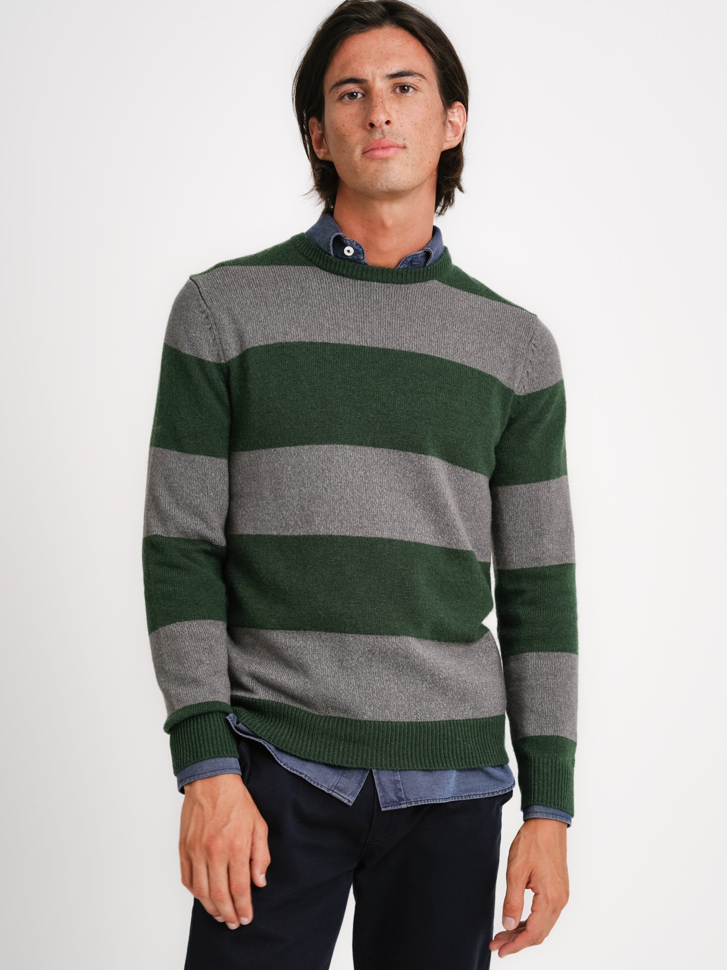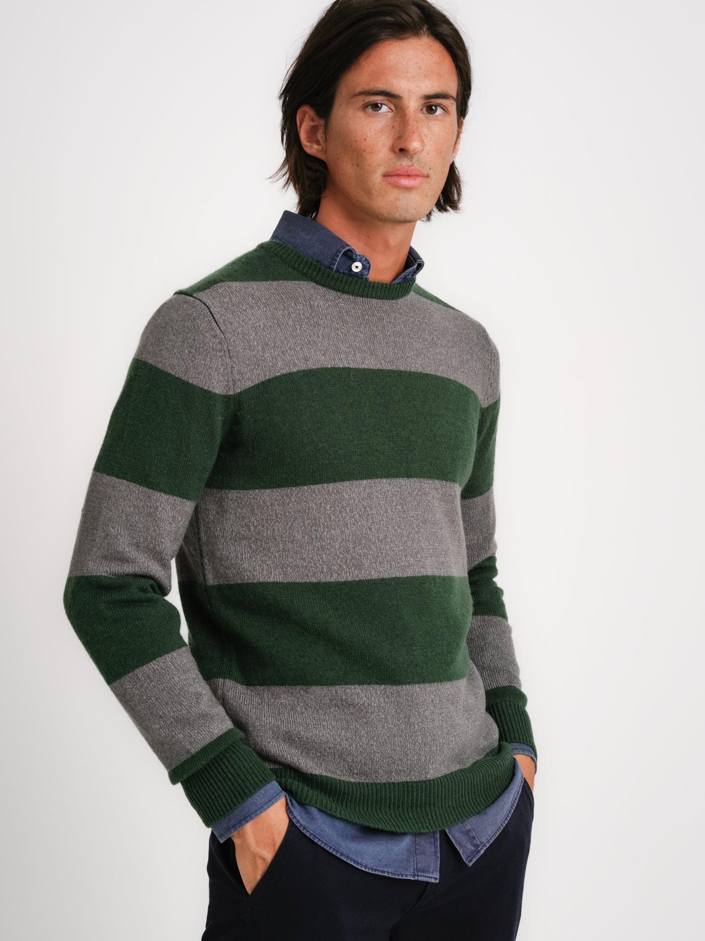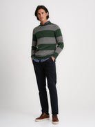 Pullover Lã Grosso Verde Lã Riscas