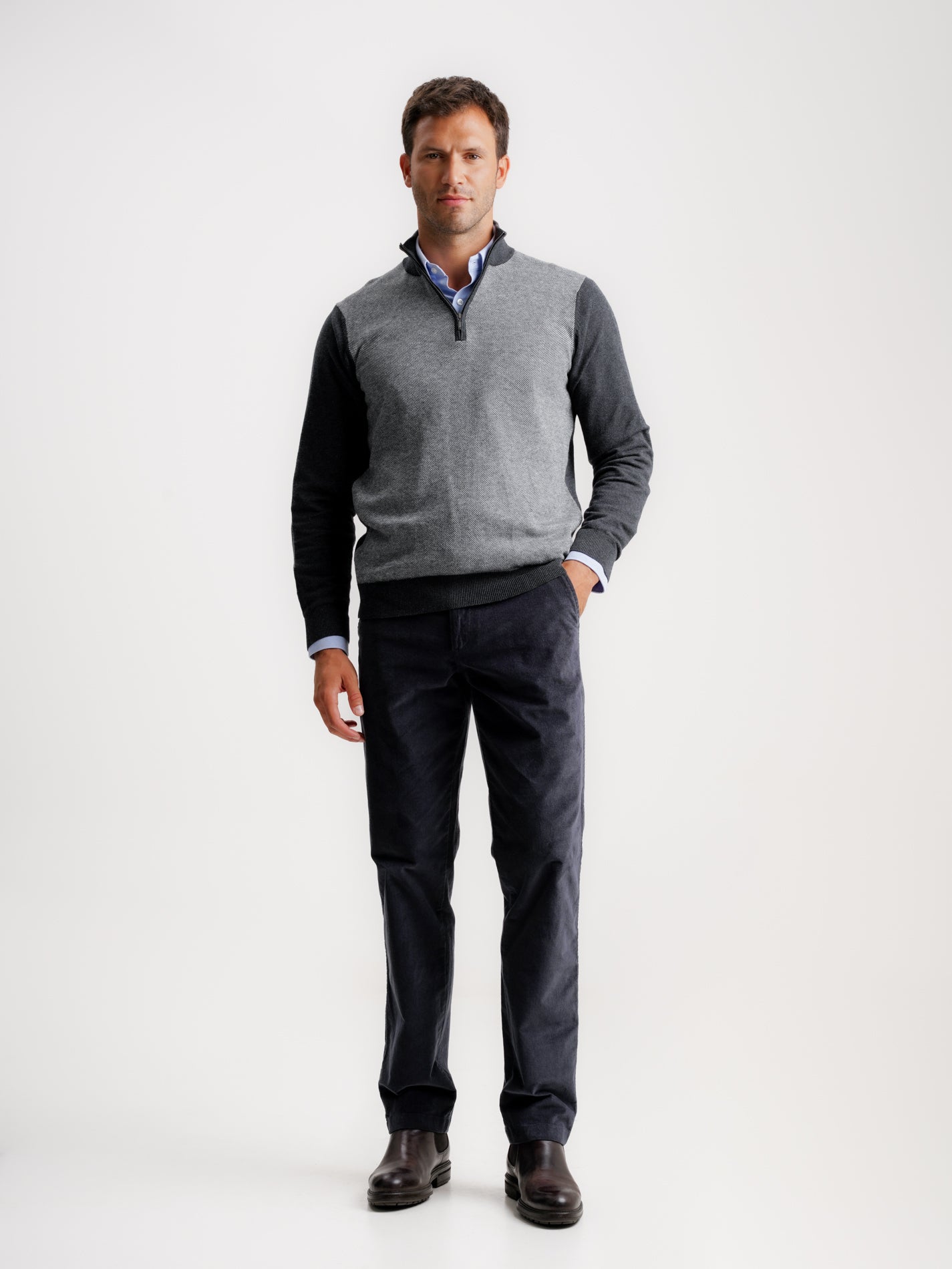 Pullover Caxemira Fino Cinzento