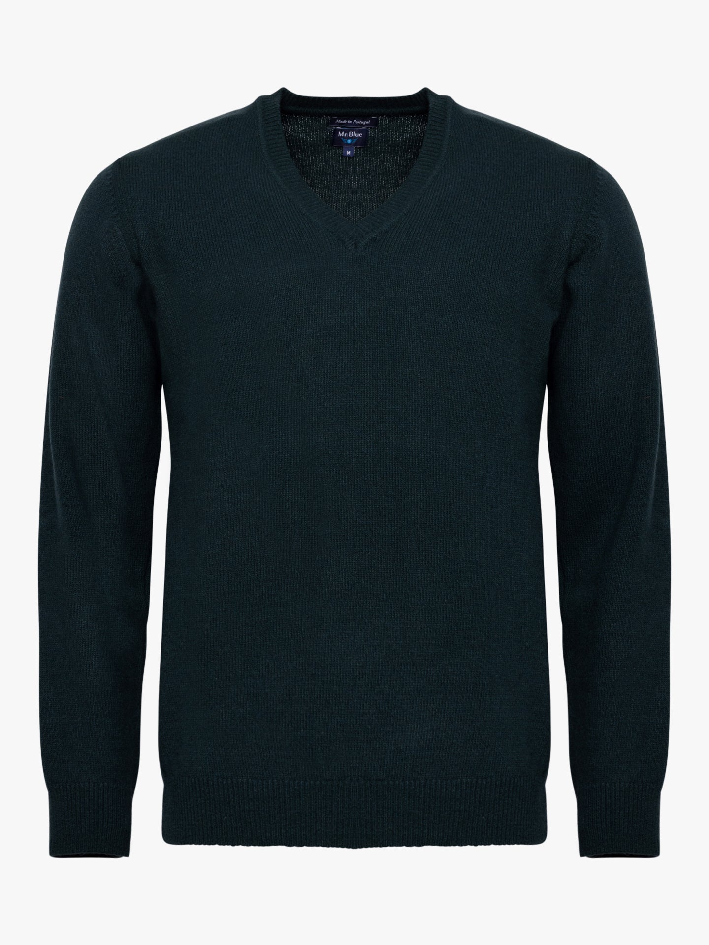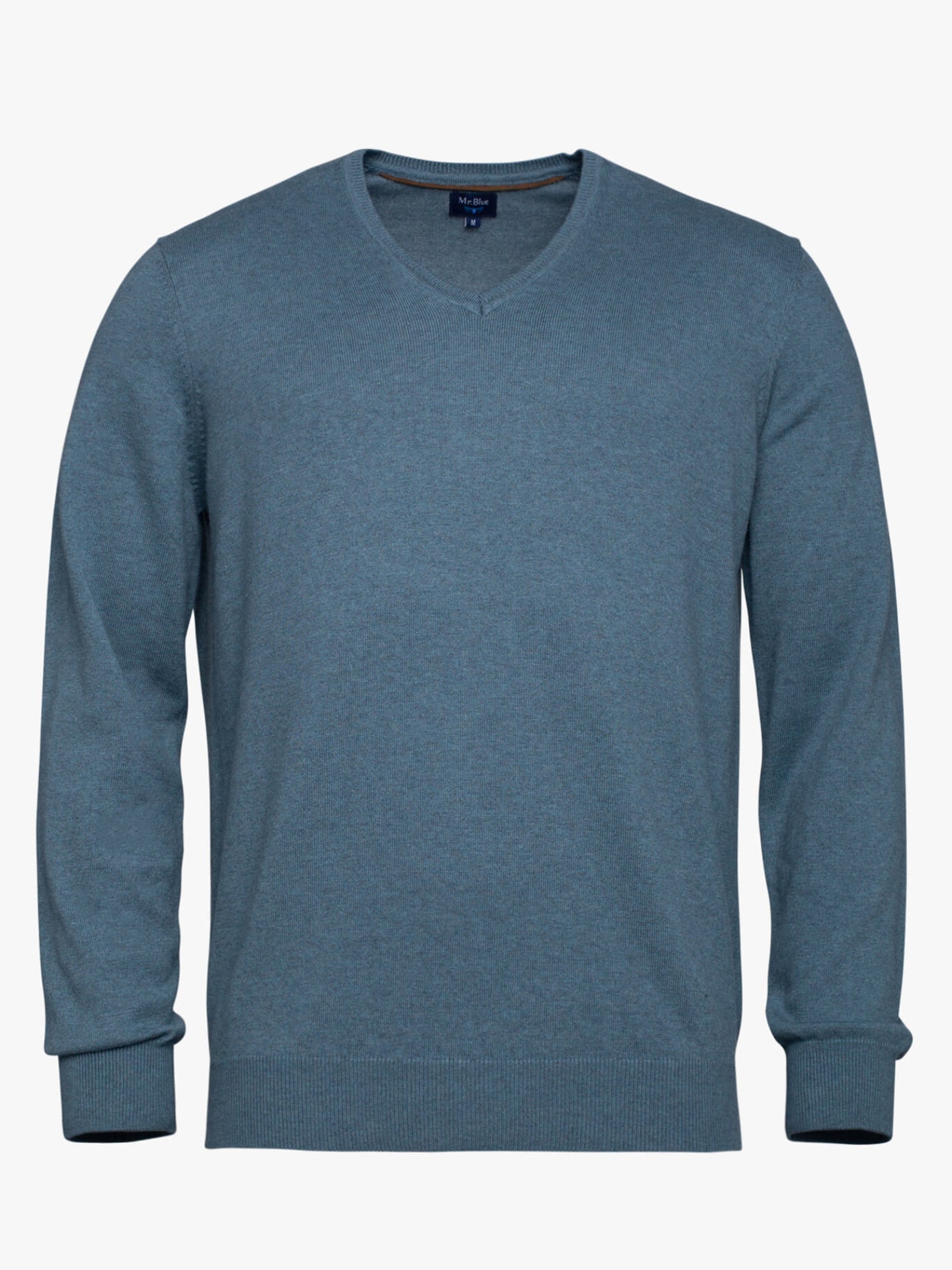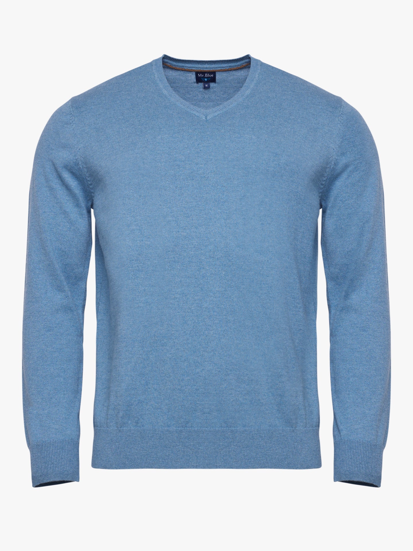 Camisola algodão e caxemira azul com decote em V