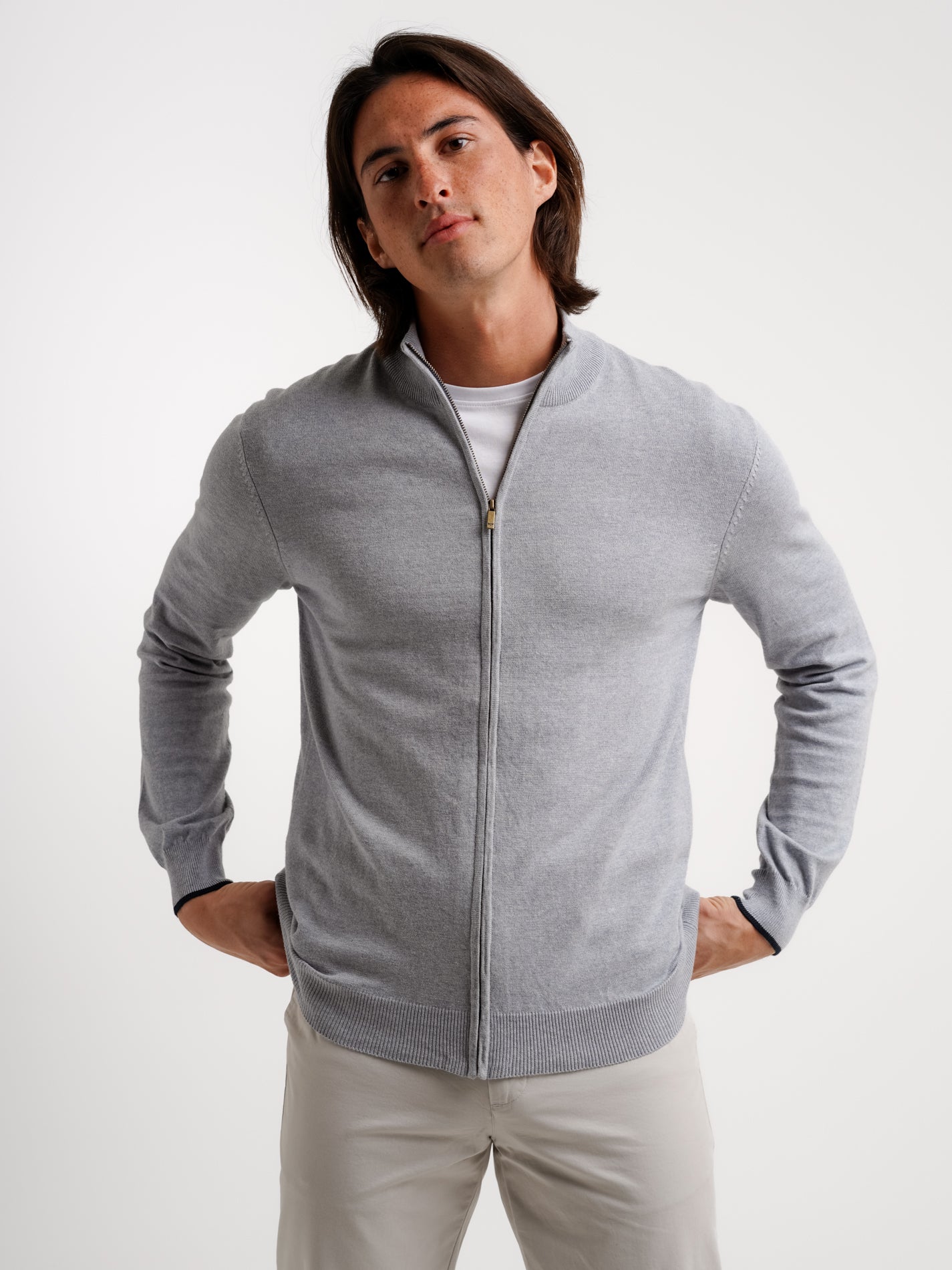 Cardigan Lã Merino Fino Cinzento