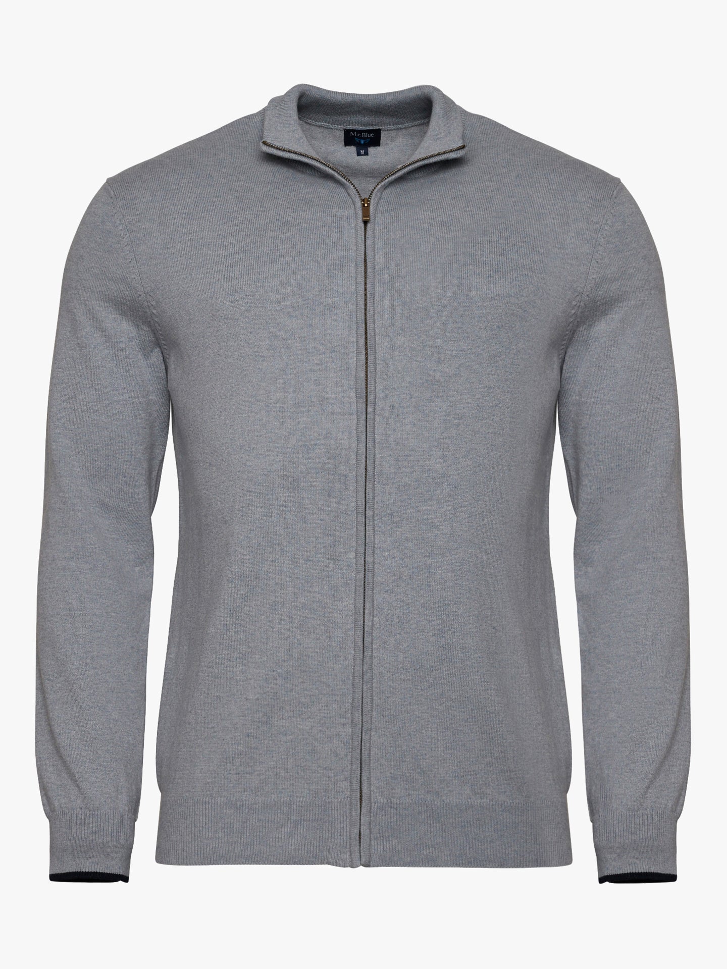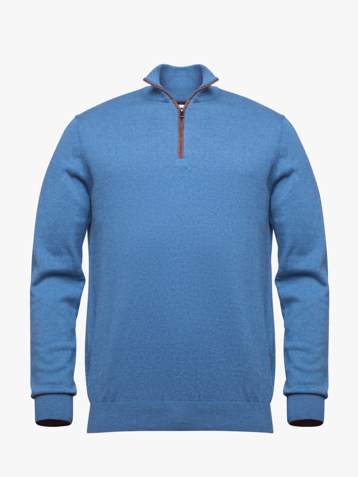 Camisola algodão e caxemira gola com fecho liso azul