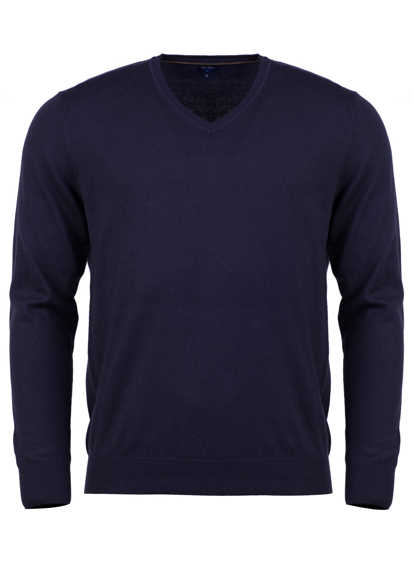 Camisola azul escuro em algodão e caxemira decote em V