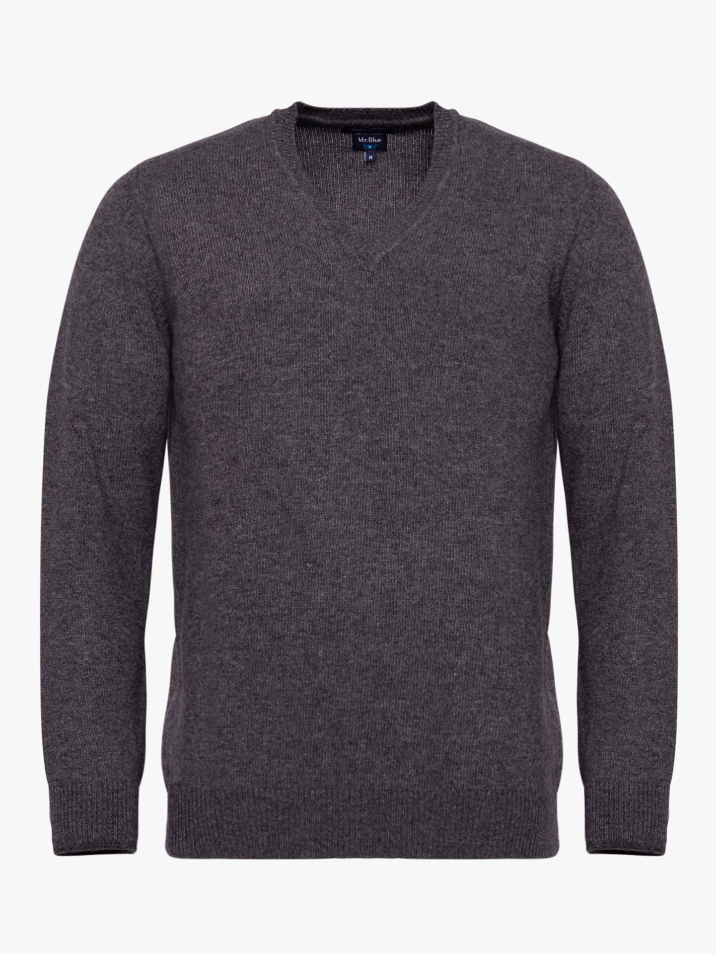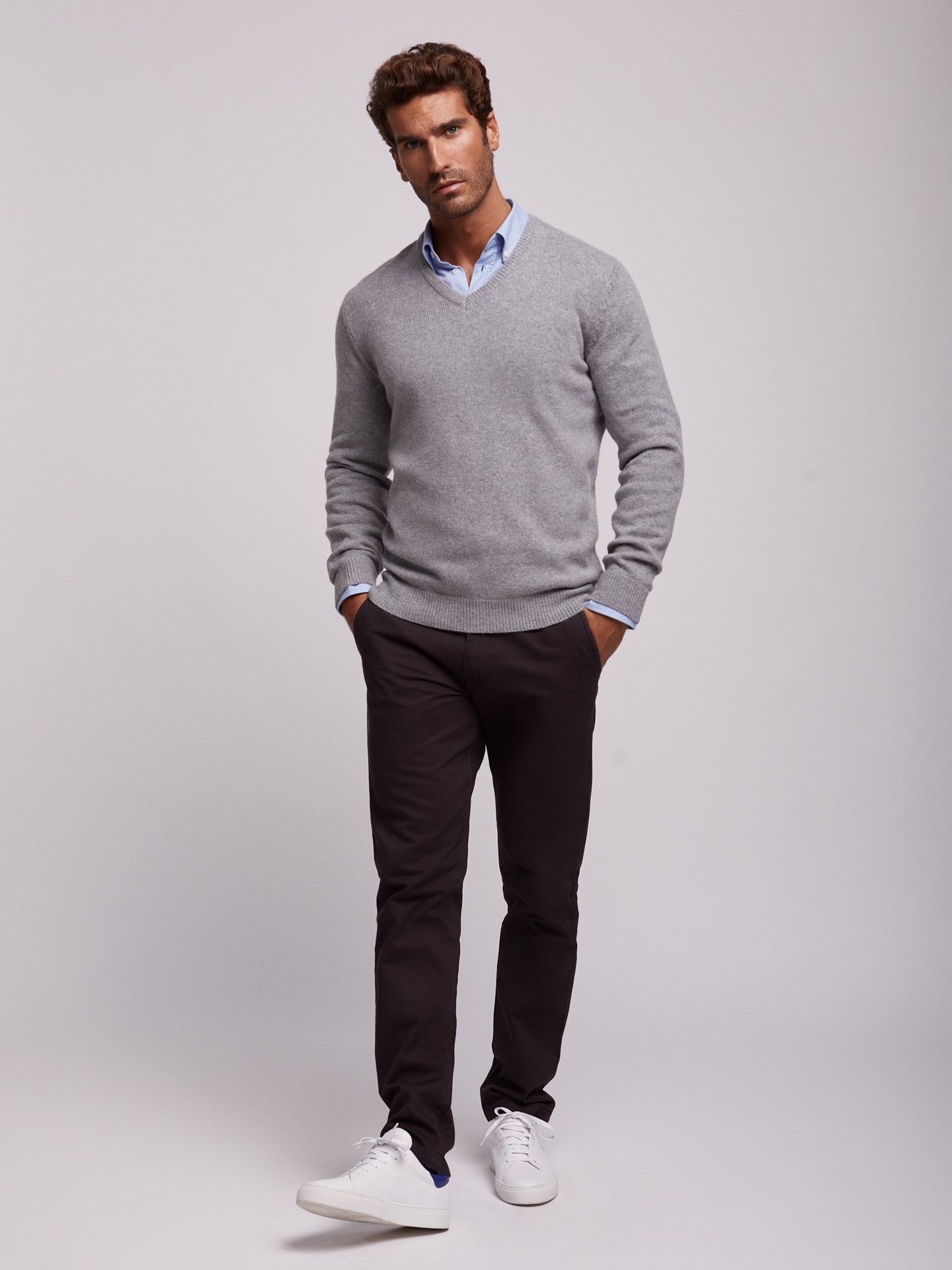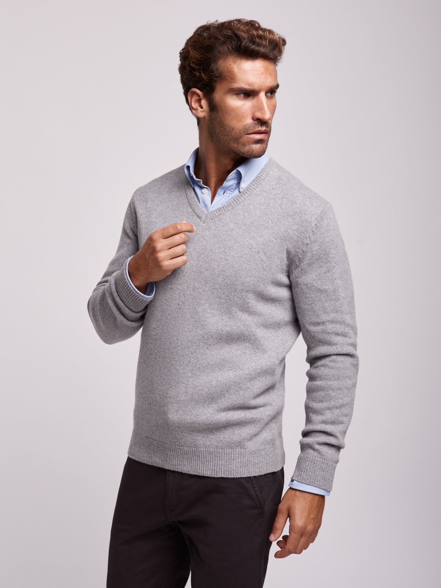 Camisola cinzento em algodão e caxemira decote em V