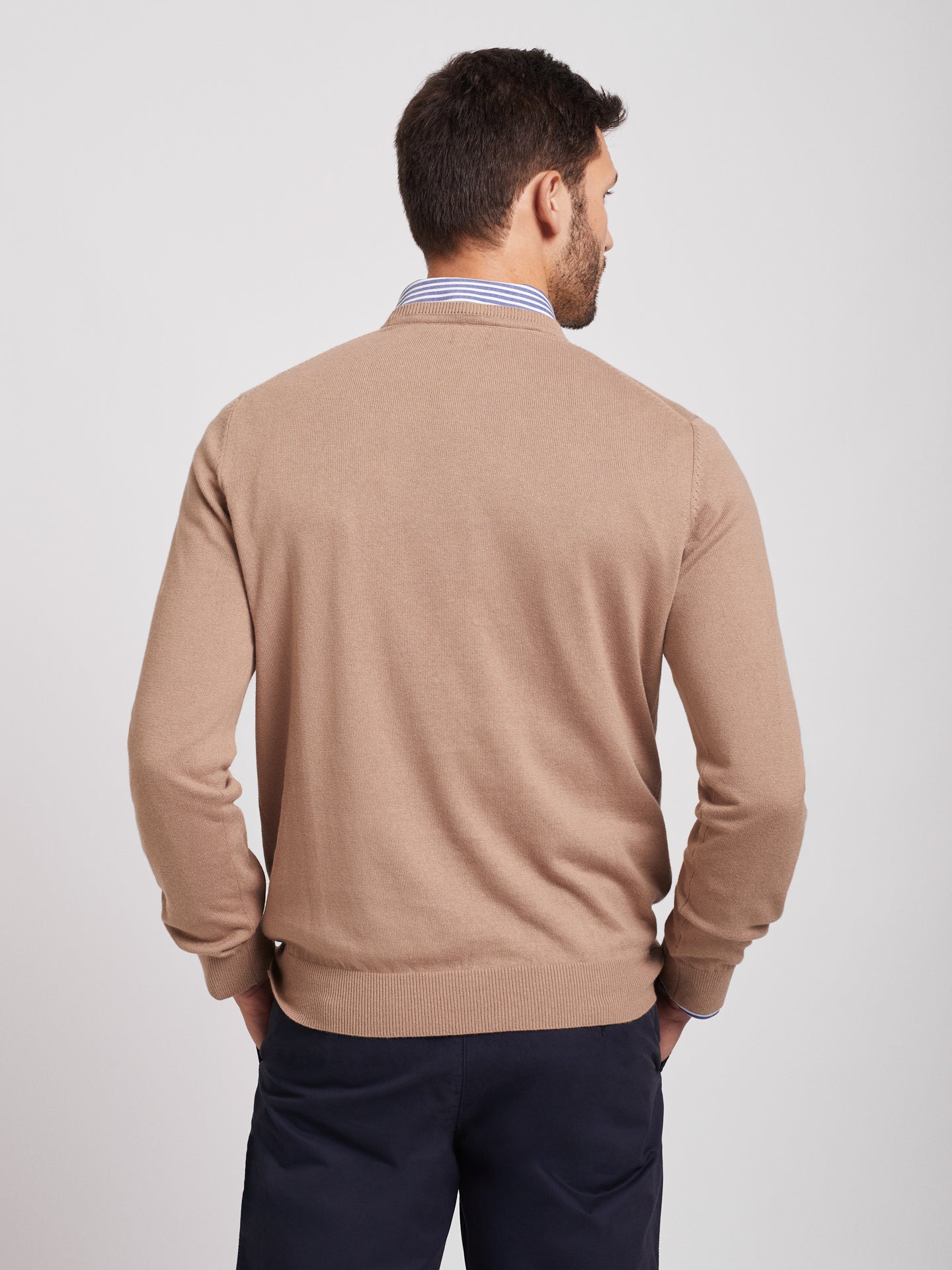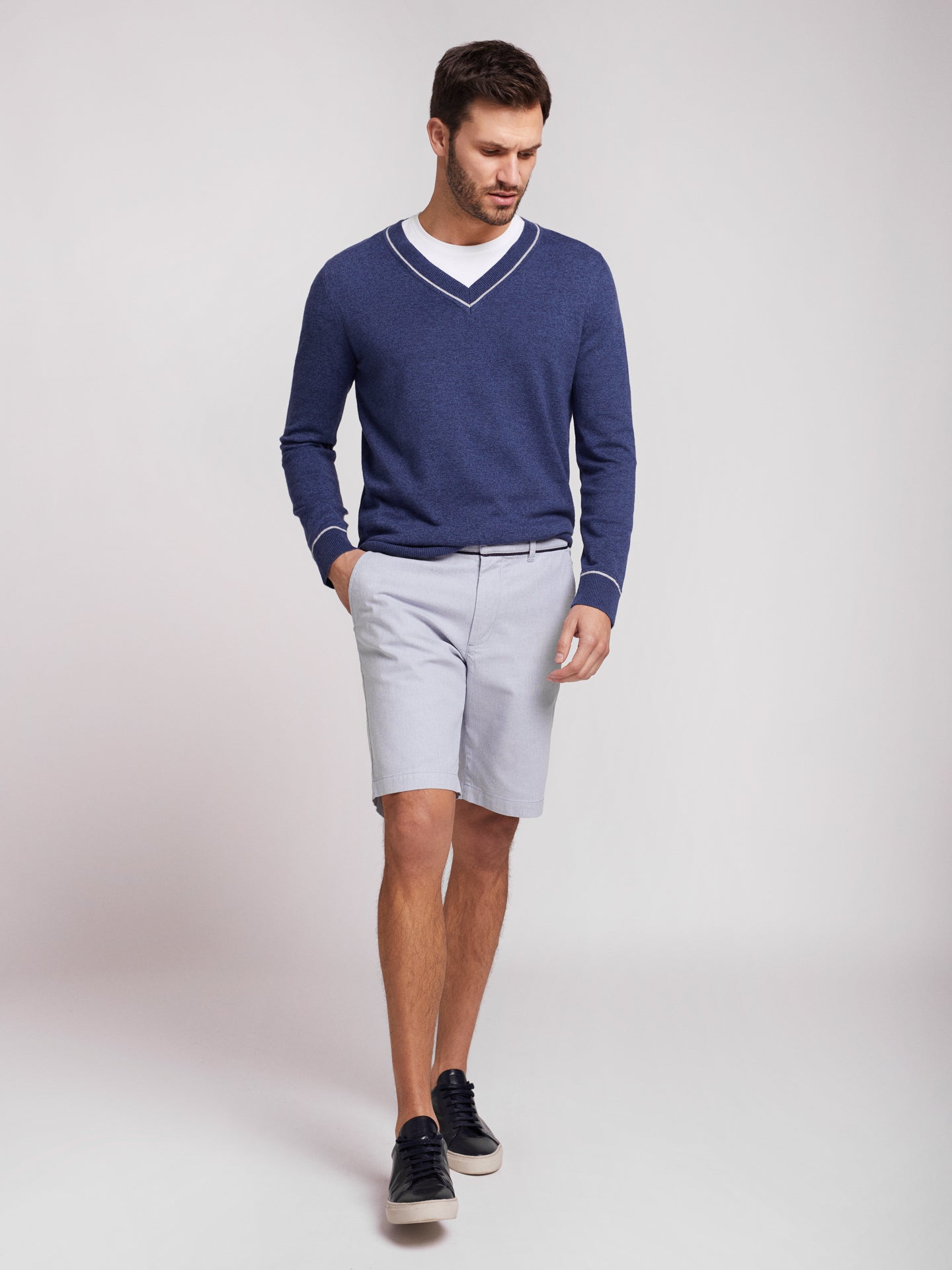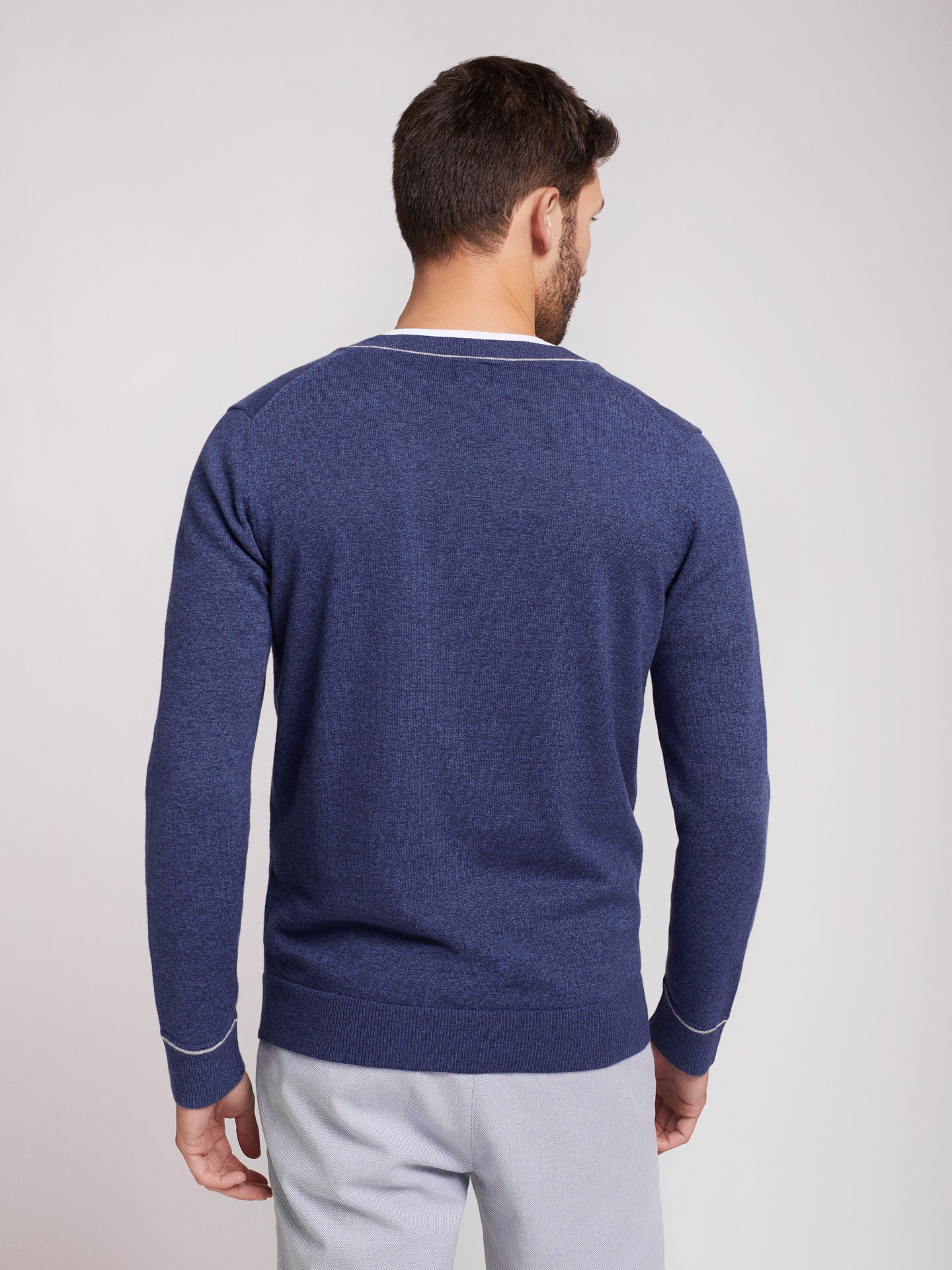 Pullover algodão decote em V com detalhe colarinho