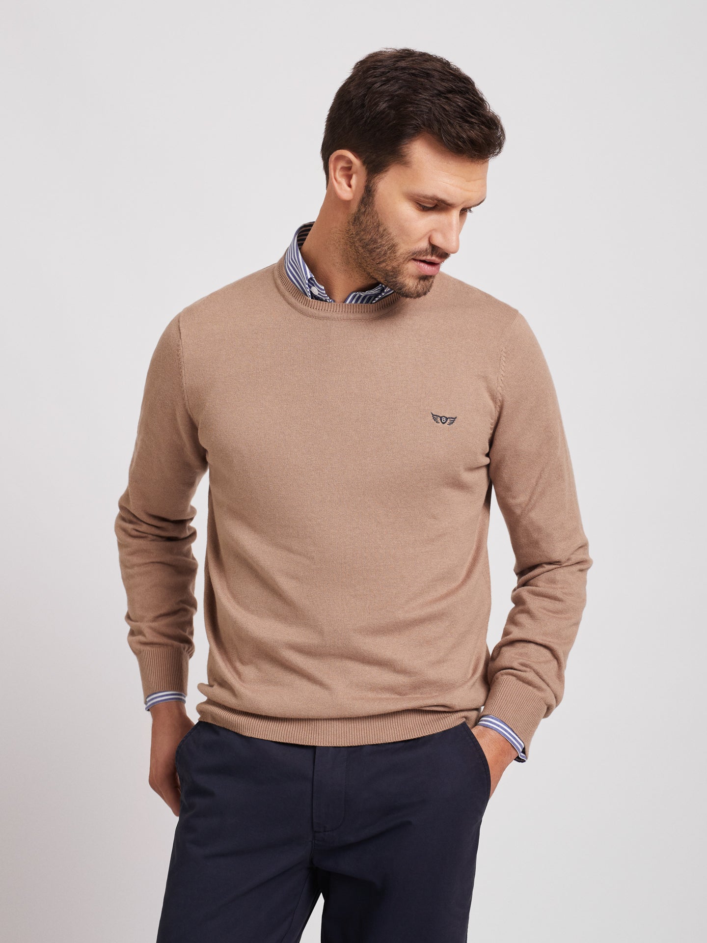Pullover Regular Fit Bege Manga Comprida