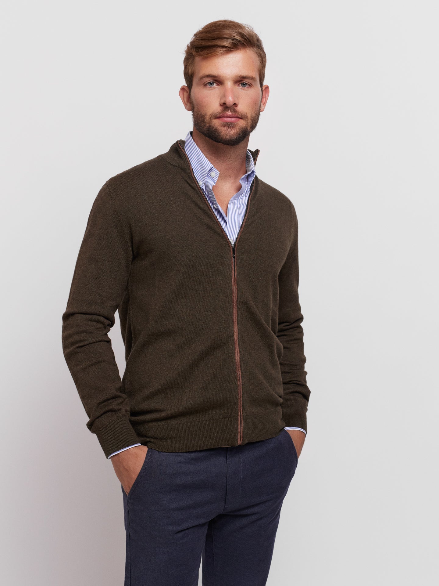 Pullover Regular Fit Castanho Manga Comprida