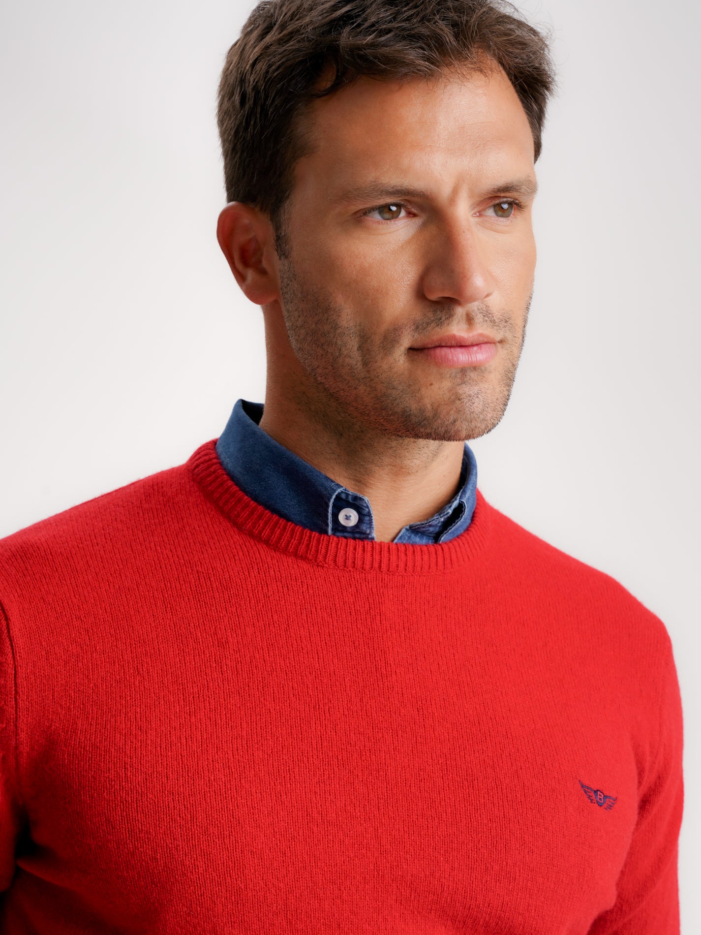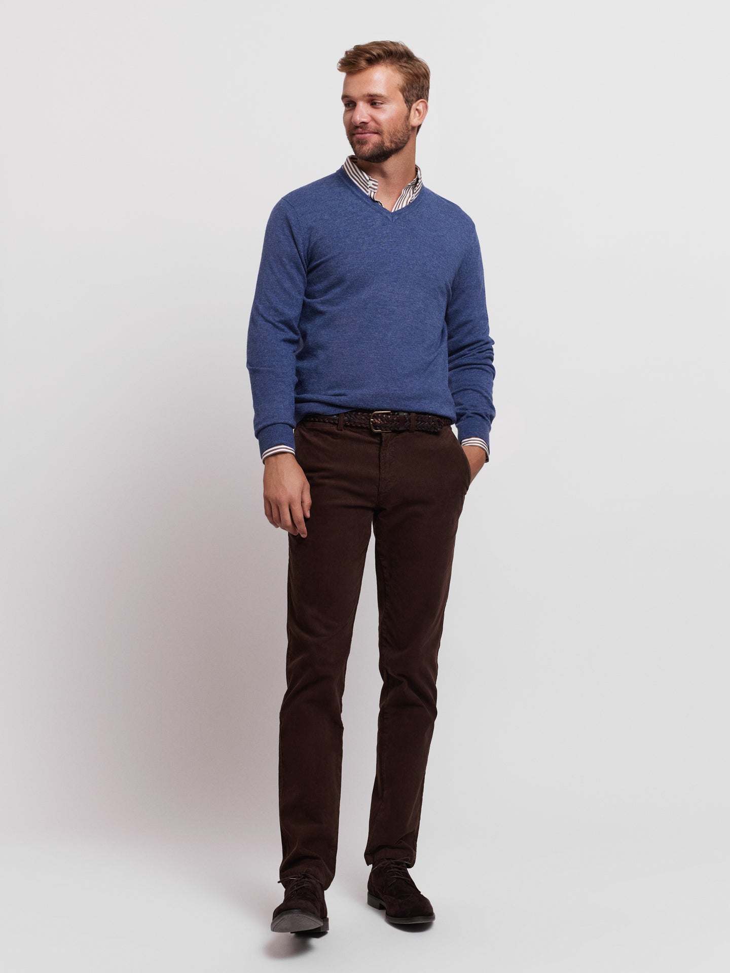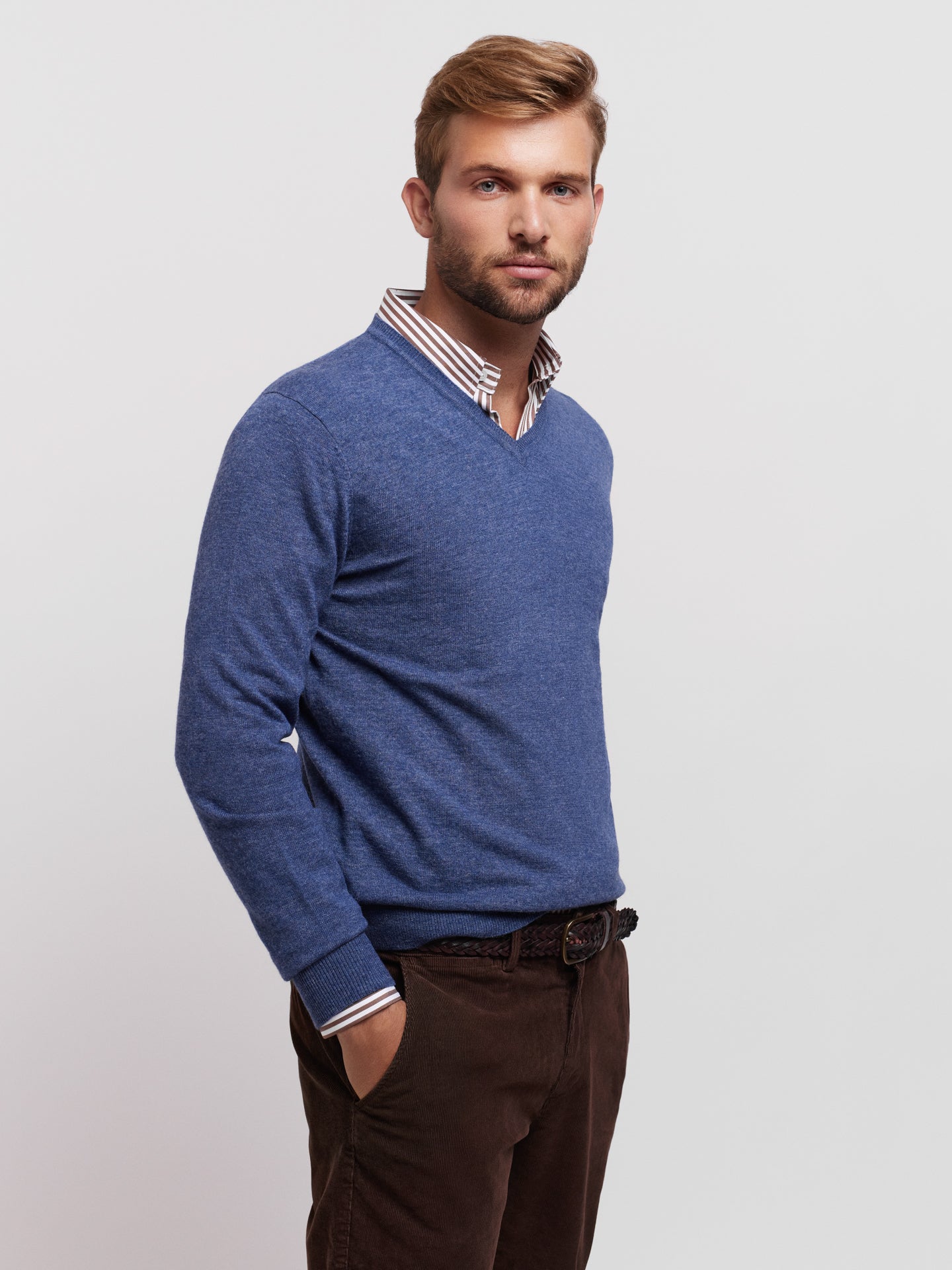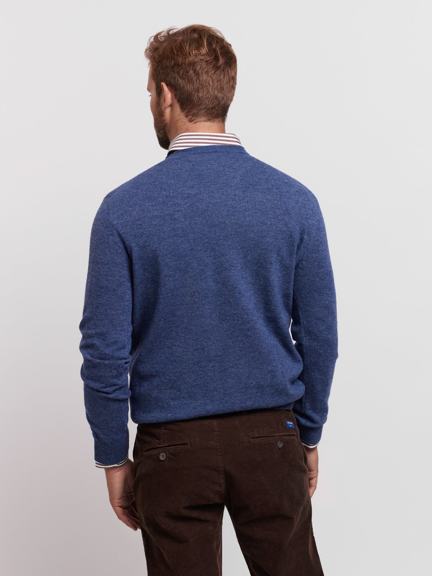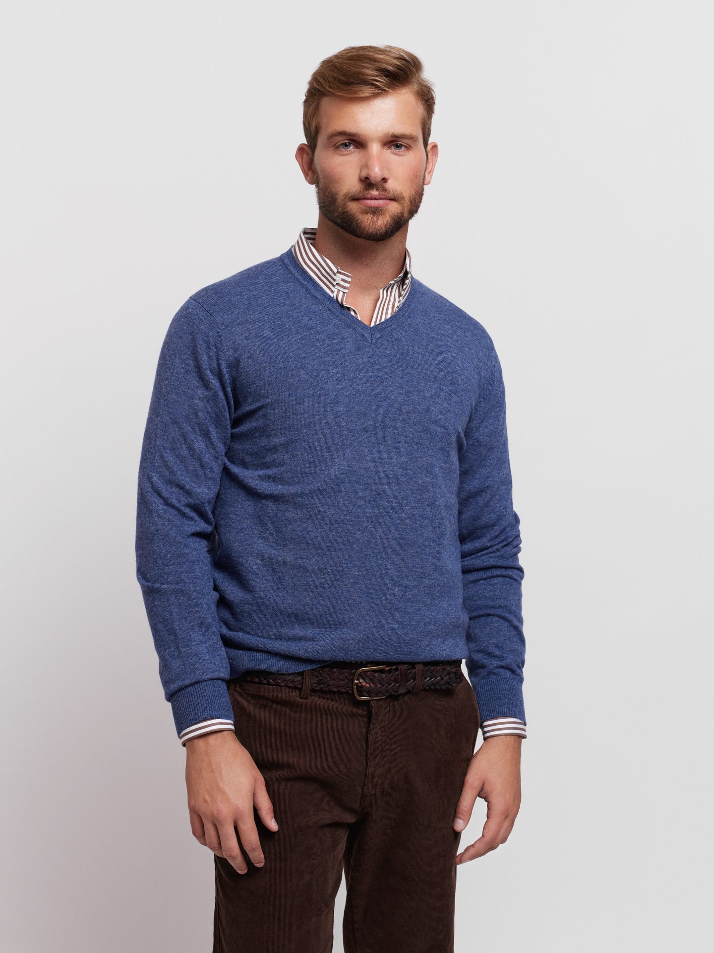 Pullover algodão e caxemira decote em V com detalhe colarinho