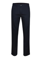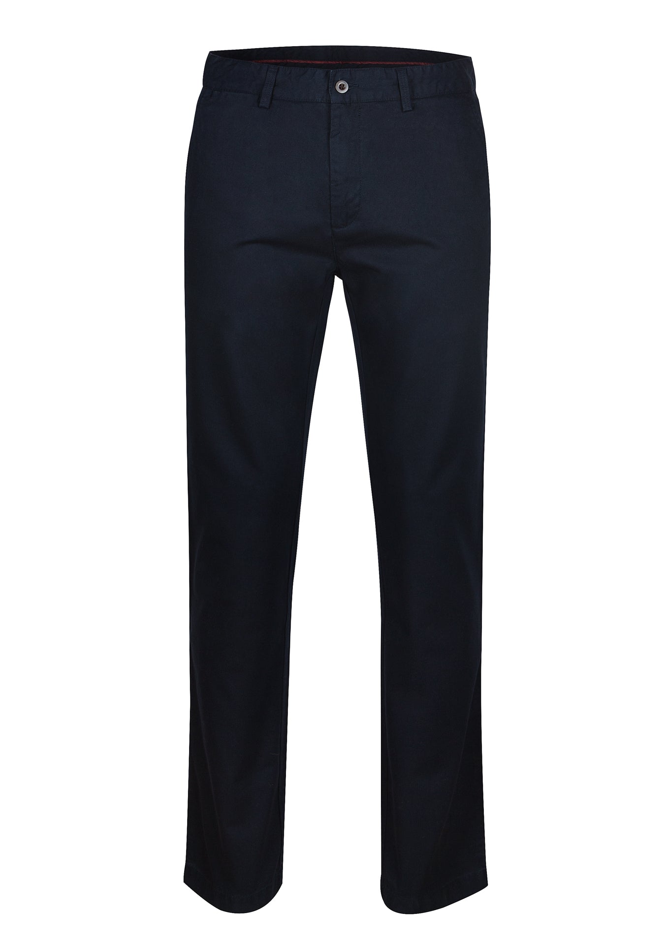 Calças Chinos Homem em algodão azul intermédio com tape interior cós em pesponto vermelho. Corte Tailored Fit. Muito confortáveis, são a escolha certa para os dias mais quentes.