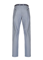 Calças Chinos Homem 100% Algodão Oxford azul médio com tape no cós em azul marinho. Corte Tailored Fit. Muito confortáveis, são a escolha certa para os dias mais quentes.