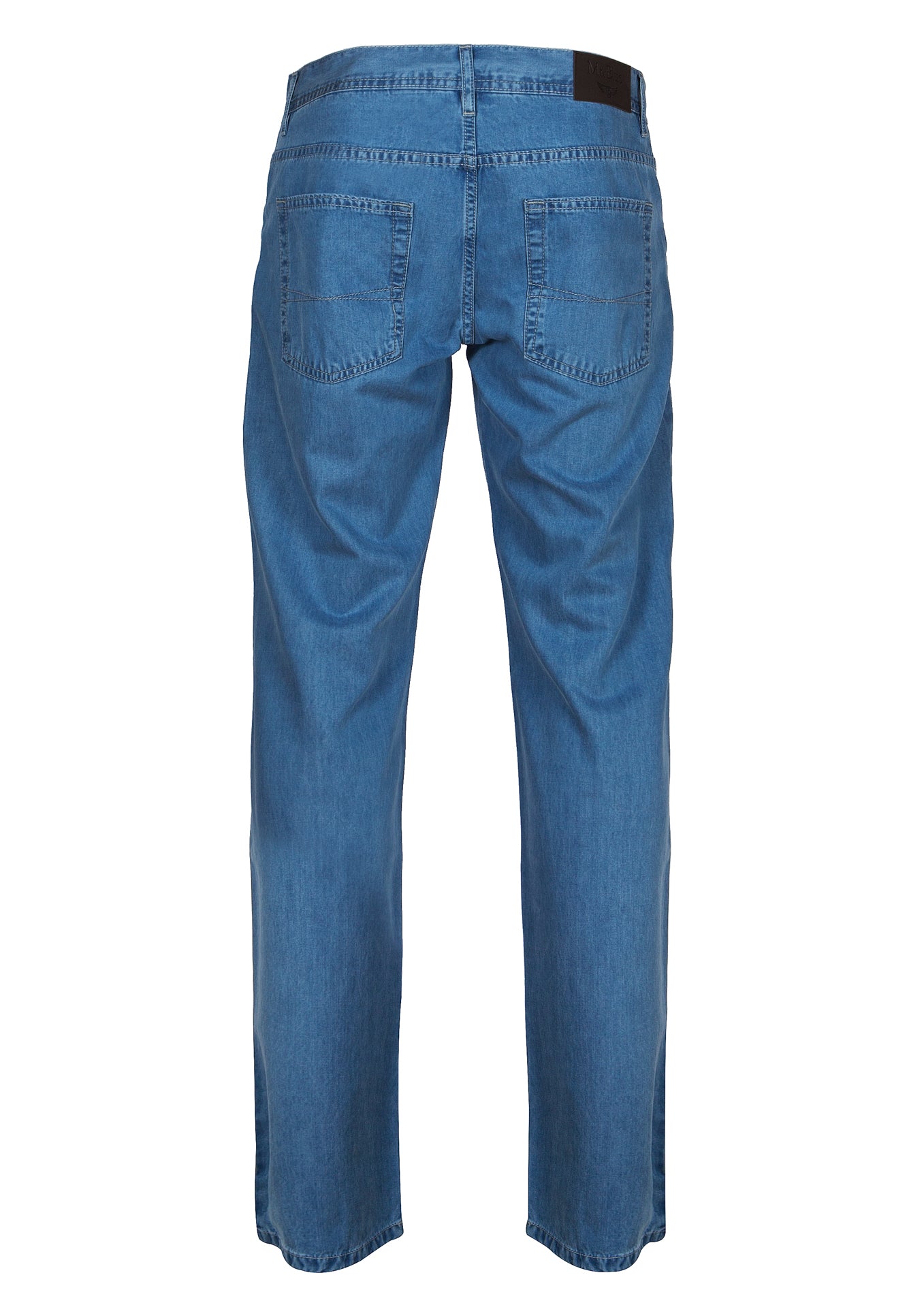 Calças de ganga Homem em algodão e tencel cintura subida azul claro. Corte Tailored Fit. Muito confortáveis, são a escolha certa para os dias mais quentes.